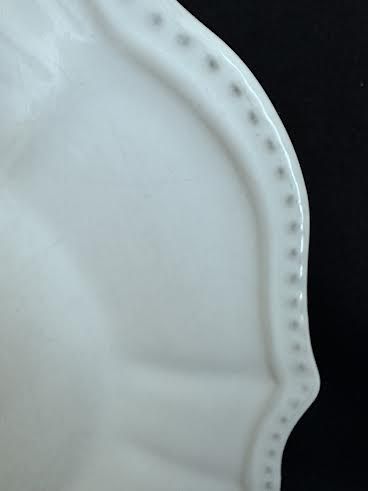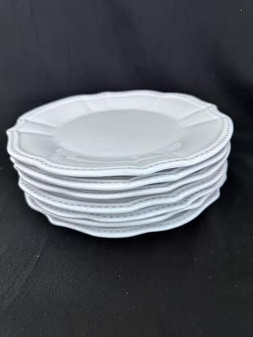 VenmoPottery Barn white stoneware dinner plates. Leila pattern. Set of 7. Hand crafted in Portugal. Gently scalloped edge with beaded border. Width 10.5”. Weight 1.13 lbs. each. Excellent like new condition. No chips or scratches. Microwave and dishwasher safe. Currently listed online for $89.95 each.