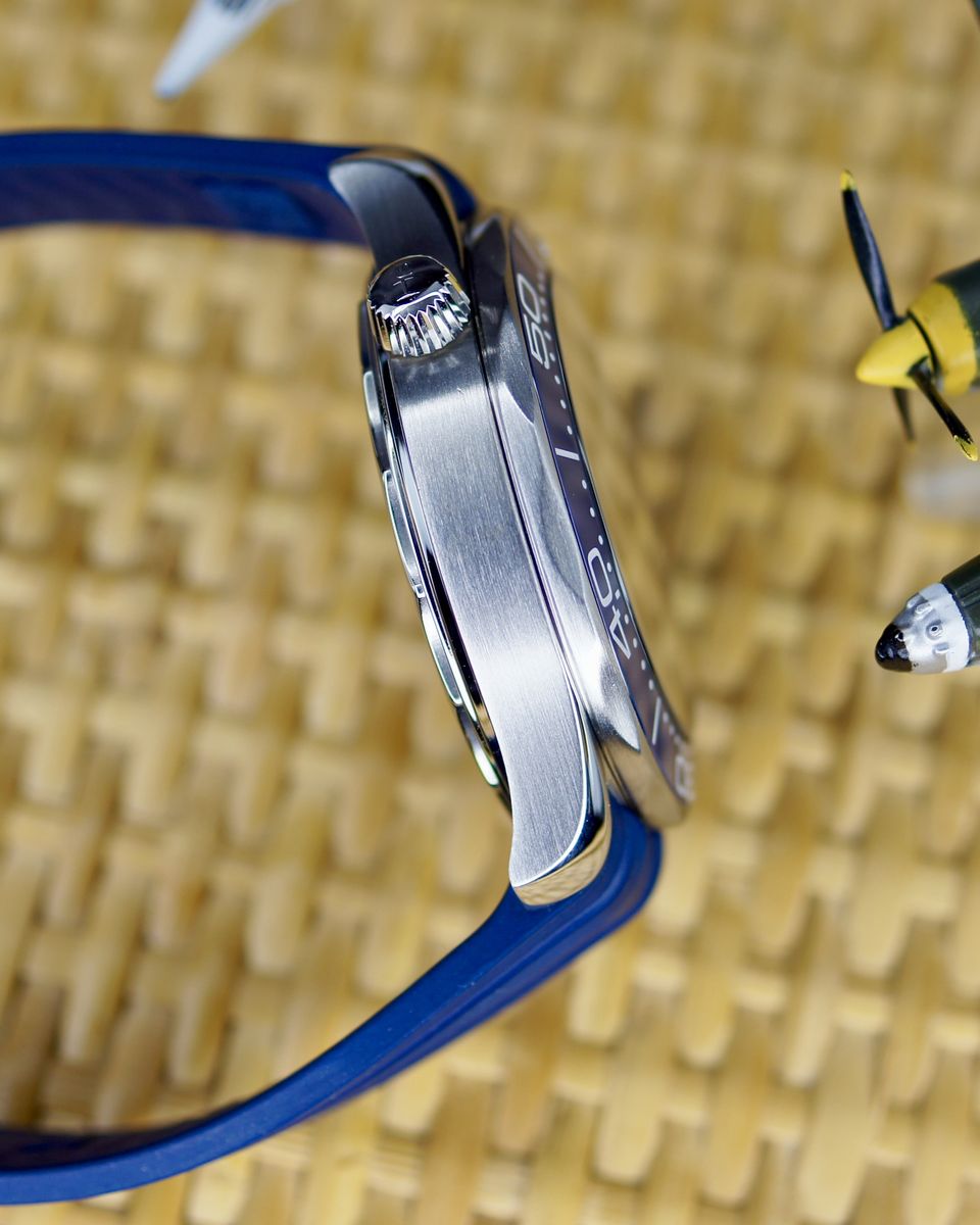 ZelleFull Set, 42mm, Automatic Mechanical, Swiss Made, Dive Watch, Gray Wave Dial, Blue Bezel.