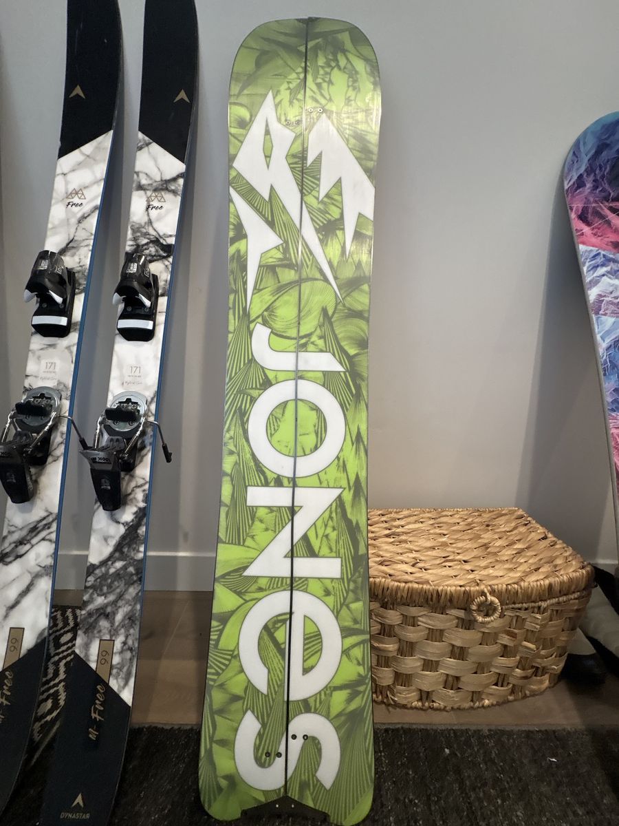ApplePayJones Hovercraft Splitboard 162, top sheet a little chewed up but base is great. Pretty sure this board is like $900 new.
