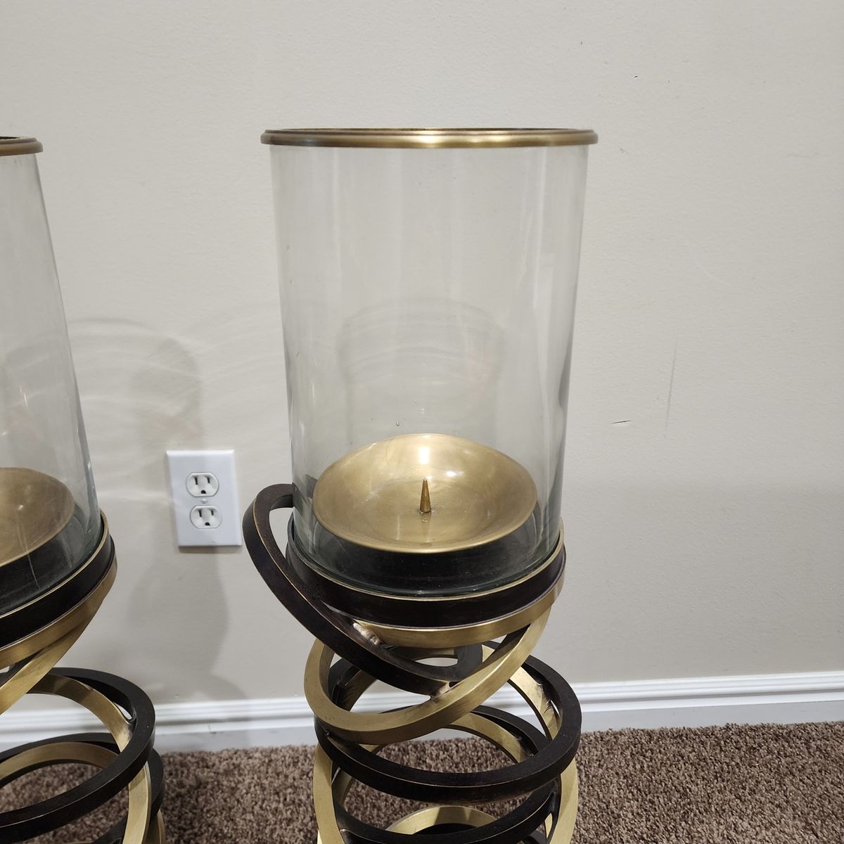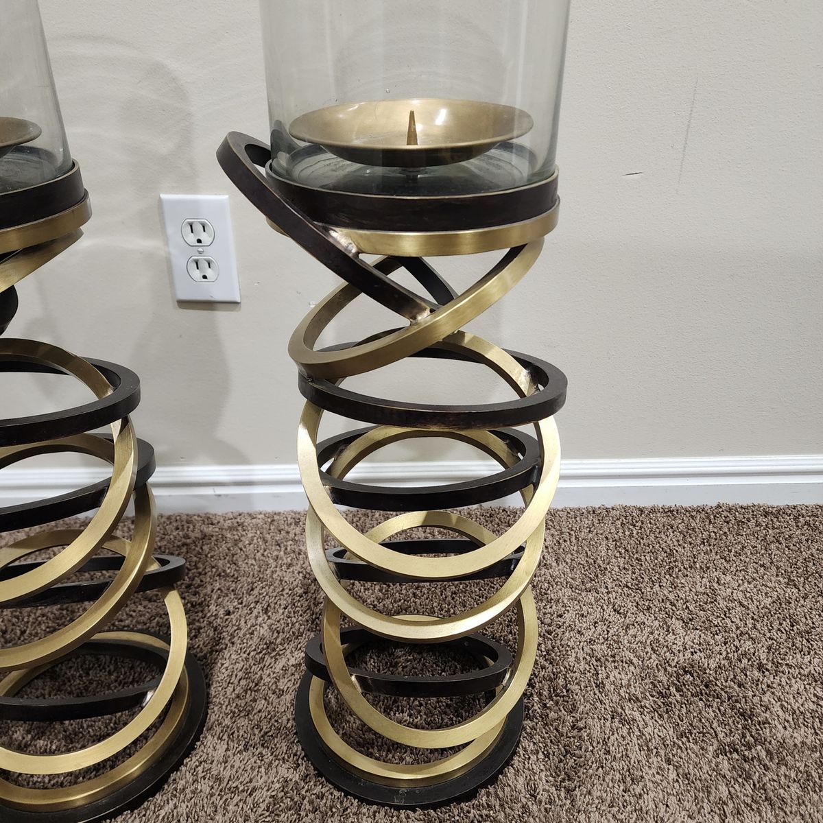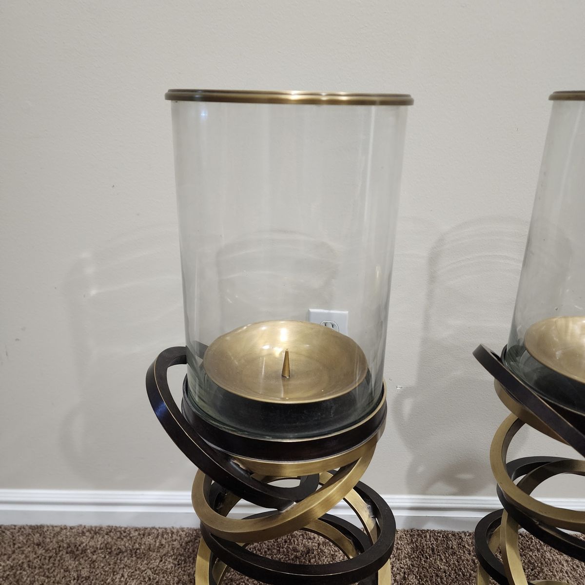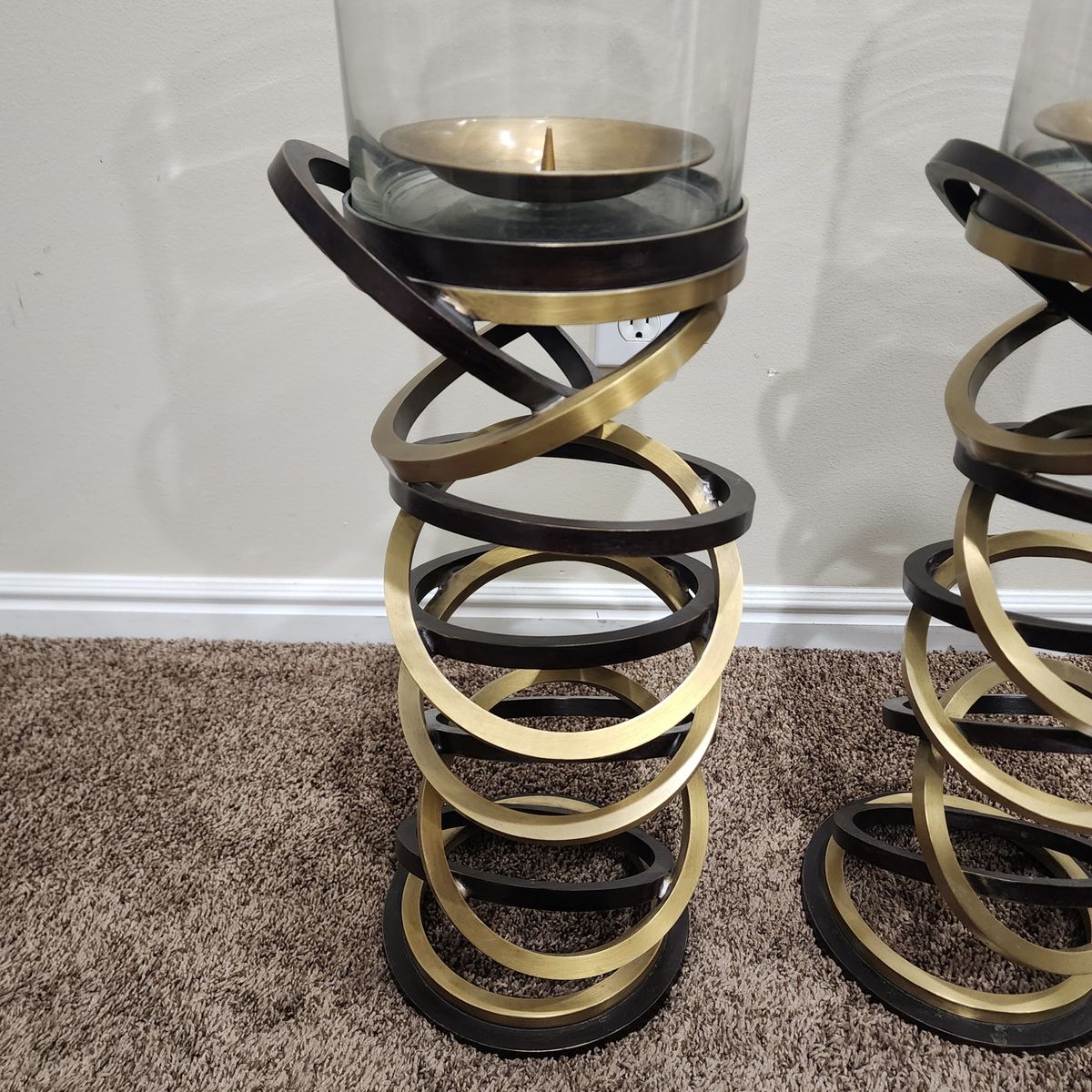 This is an excellent pair of vintage and signed Maitland Smith hurricane candle holders. They are very heavy duty, well made, the glass is thick, and is chip free/crack free. Each holder measures approximately: 39.5" tall and 8" wide. They would make accent pieces to any room, great for on top of a credenza, for your front porch, etc. The decorating with is endless! I am located in Herriman, I'm asking $100 for the pair and I accept cash/Venmo. NO HOLDS unless you are on your way, or have paid. Thanks!