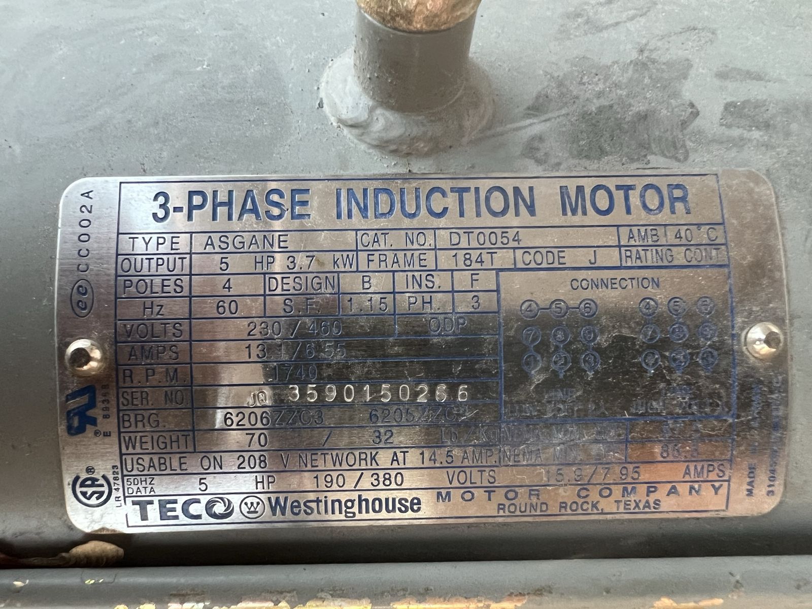 VenmoI took this off my compressor because I don’t have tree phase power. Good motor. Was used in a machine shop until the pump threw a rod. $300
