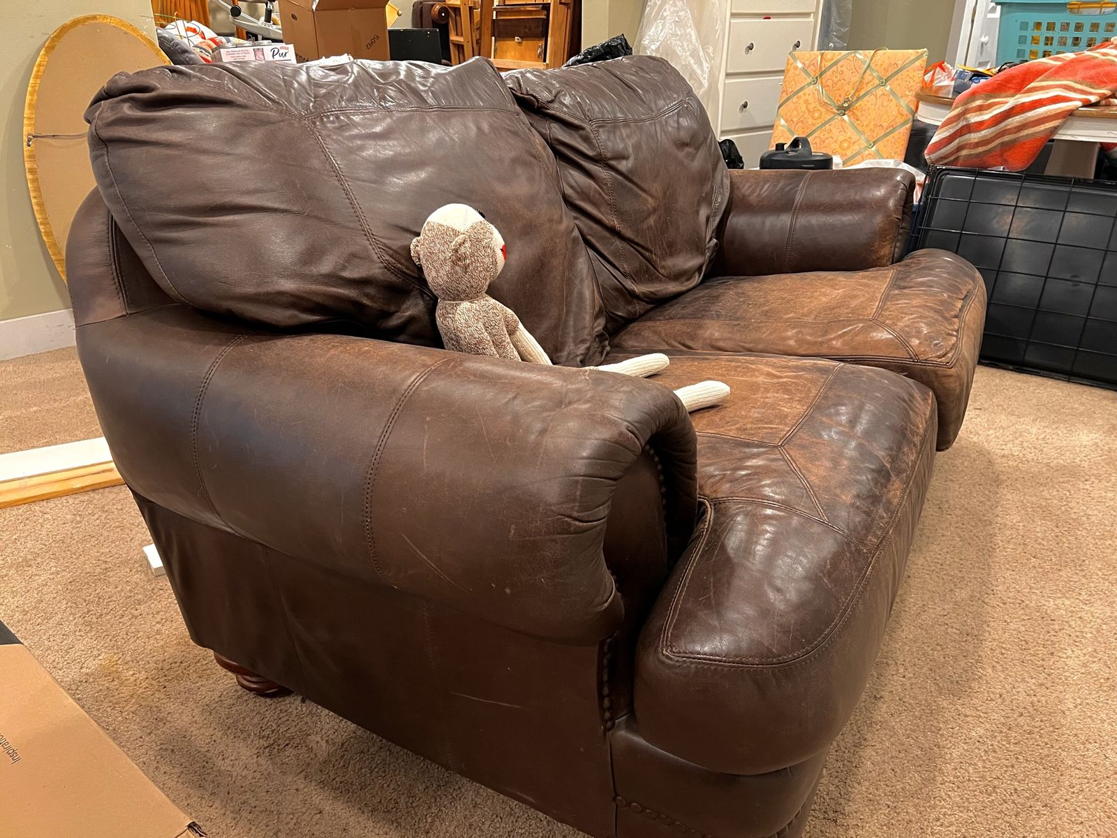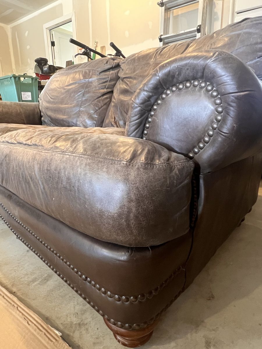 This is a rustic leather loveseat couch is average to good condition. No tares or damage in the leather.