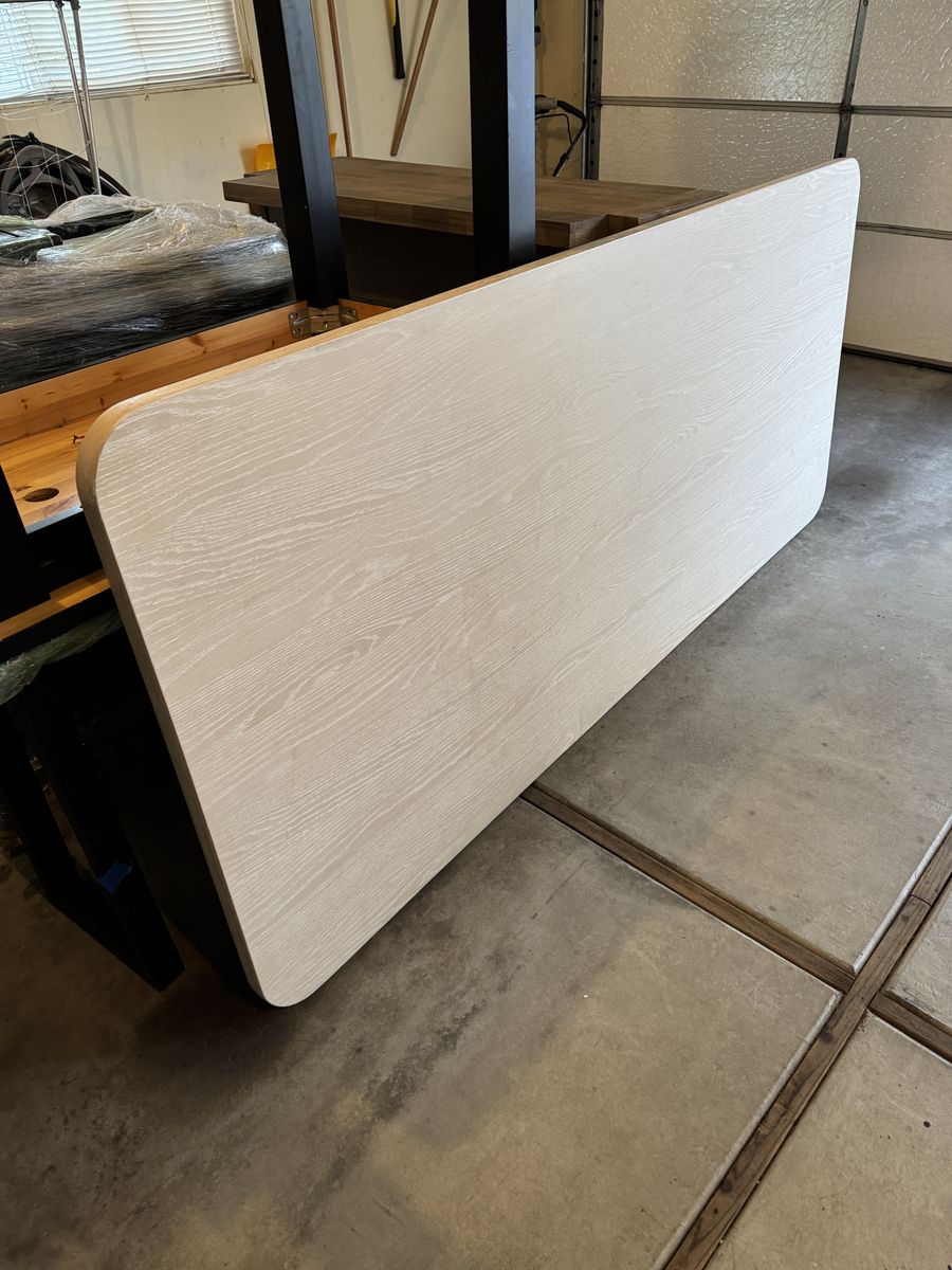 VenmoRounded corners. Sleek, modern finish. It may be a white oak or ash veneered tabletop.