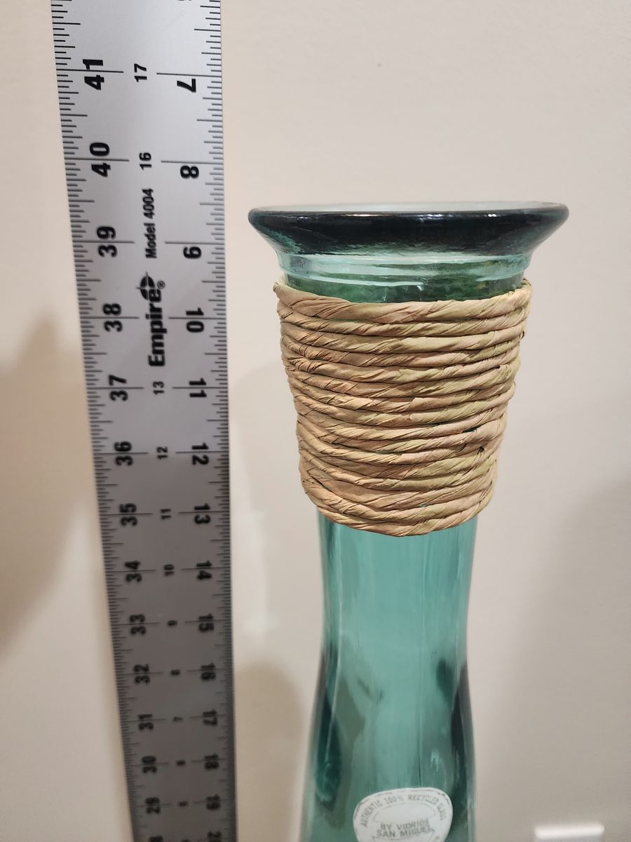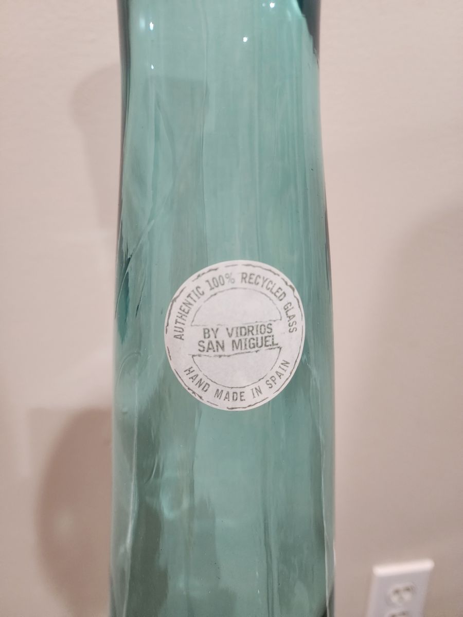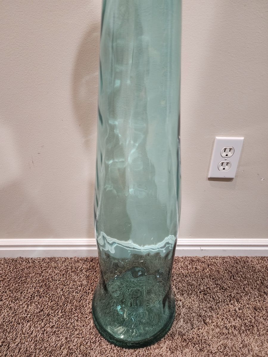 This is an excellent and vintage, mcm Vidrios San Miguel tall floor glass vase. It's a nice greenish/blue in color, it has the tag on it and it's well made. It measures approximately: 39.5" tall and 8" wide. The vase is a great accent piece, it can hold change, and it's a nice statement piece. I am located in Herriman, I'm asking $35 and I accept cash/Venmo. NO HOLDS unless you are on your way, or have paid. Thanks!