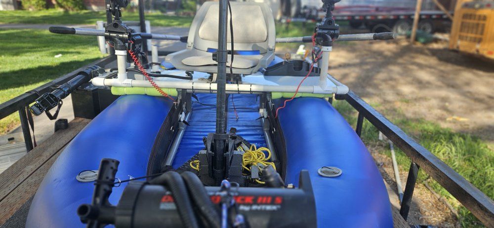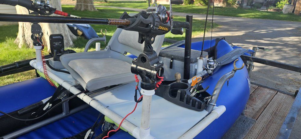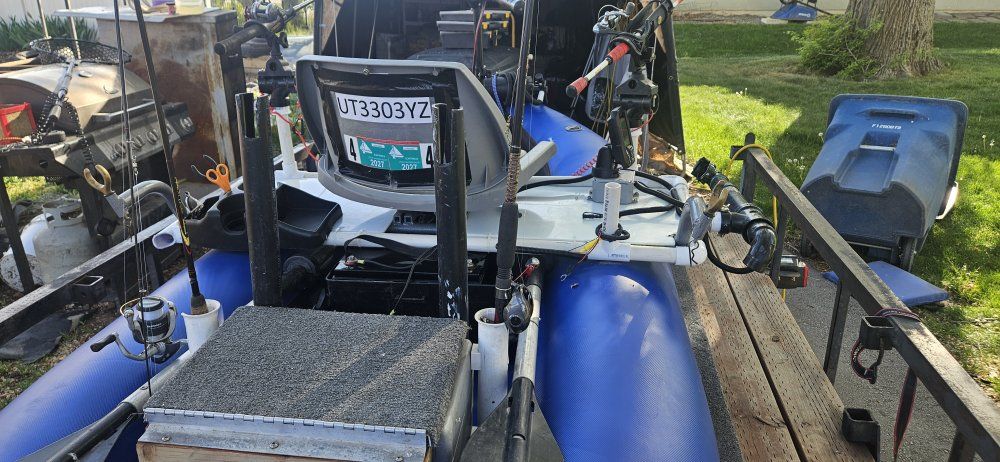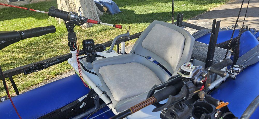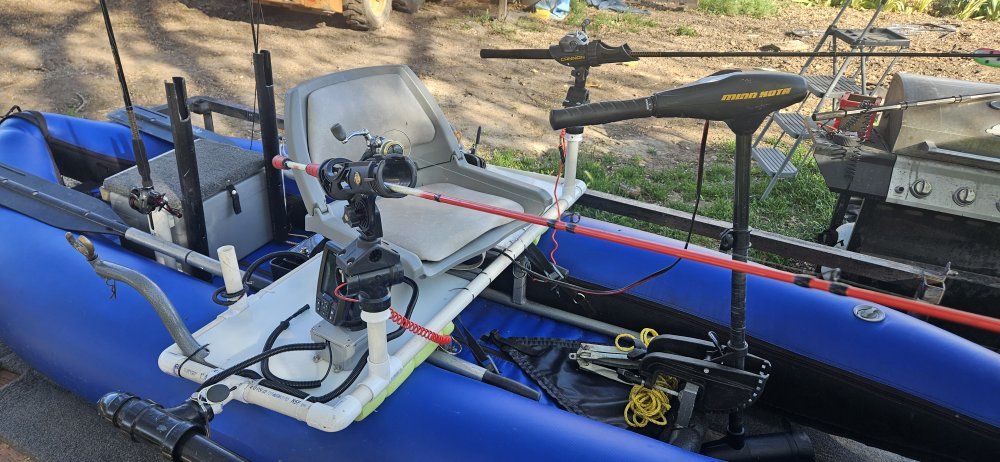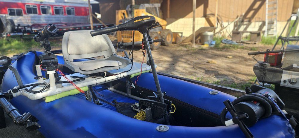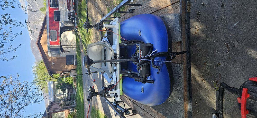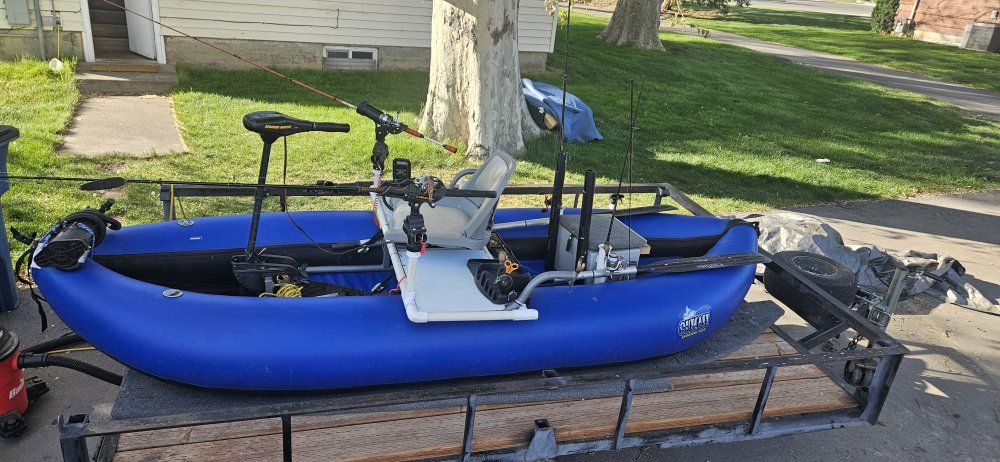 Venmooutcast fishing raft with internal frame and heavy duty closed cell floor you stay high and dry. top of the line materials will last forever, good for rivers lakes, Minn kota 30 lb thrust trolling motor two new lithium batteries 100 amp hours Garmin fish finder new, rod holders, anchor , ores air pump, I diy tricked it out.. outkast is a top of the line manufacturer of rafts and pontoon craft this boat new without all the add-ons is around $2, 500....please call me with questions don't text me as I don't get my text very often
