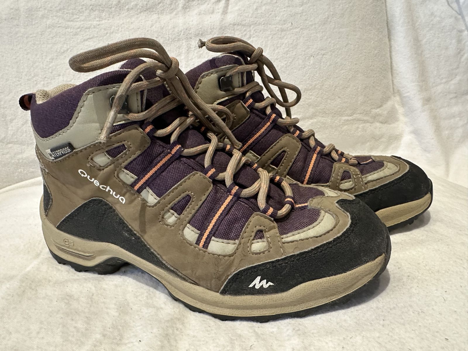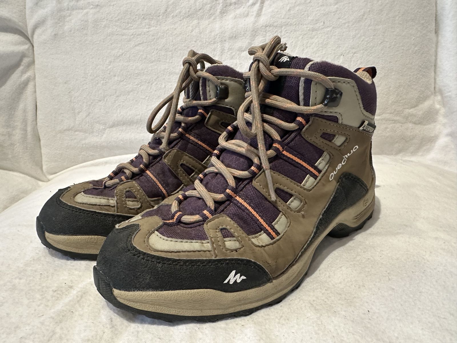 Quechua women women’s size 5.5 or EU 37 purple/beige with peach trim waterproof mid hiking boots. These are in good condition. See photos for details. I take cash or venmo but cash is preferred. Text is best. 801-201-4446.