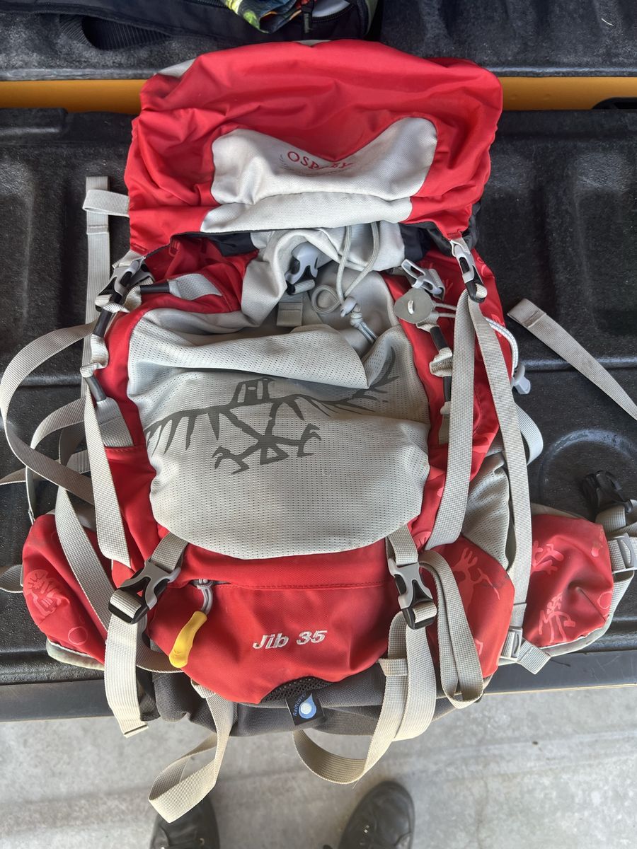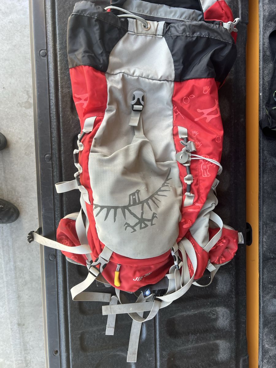 CashAppOsprey Jib 35 Airscape Youth Hiking Backpack Adjustable 13"- 19" Red/Gray