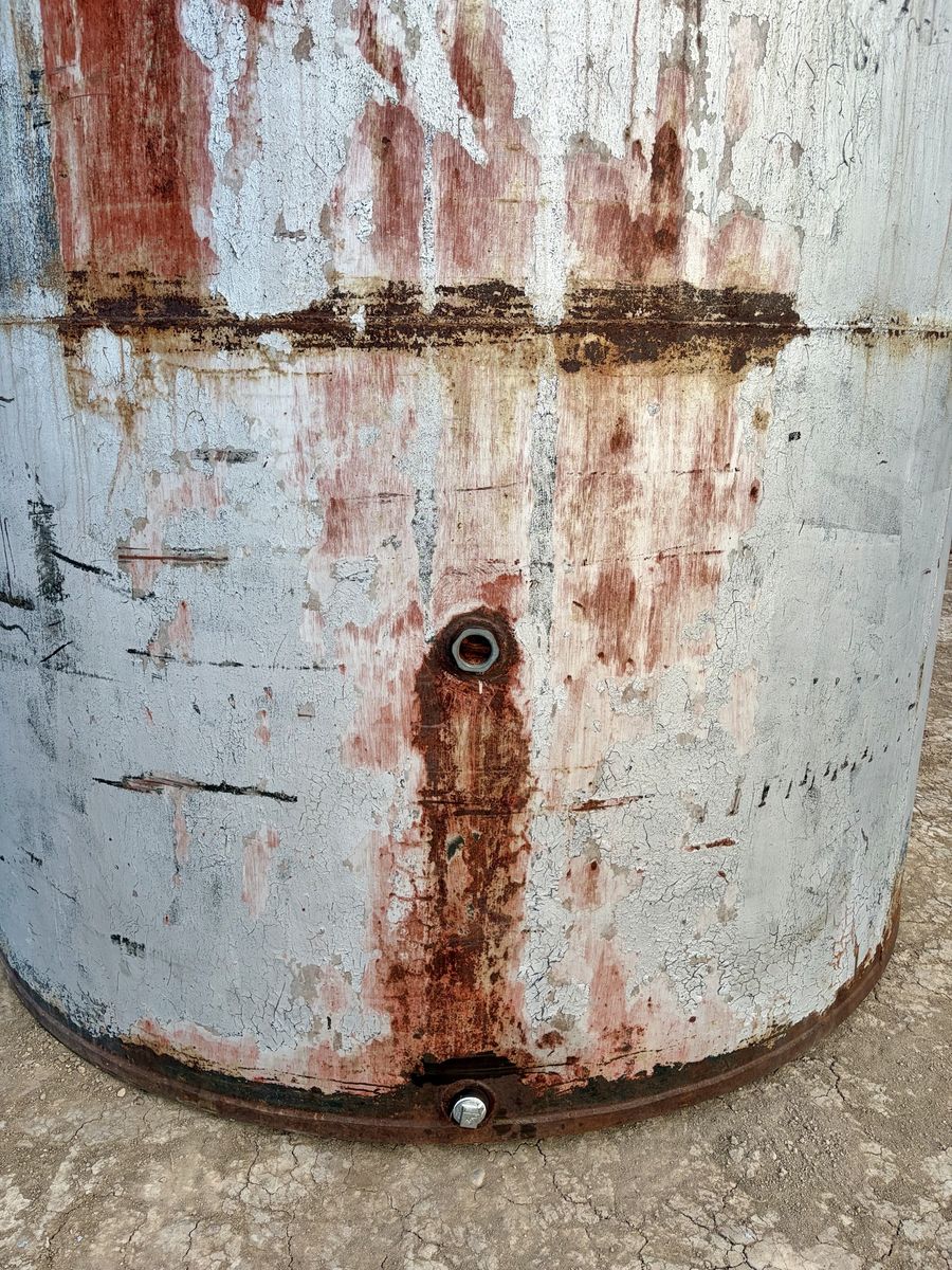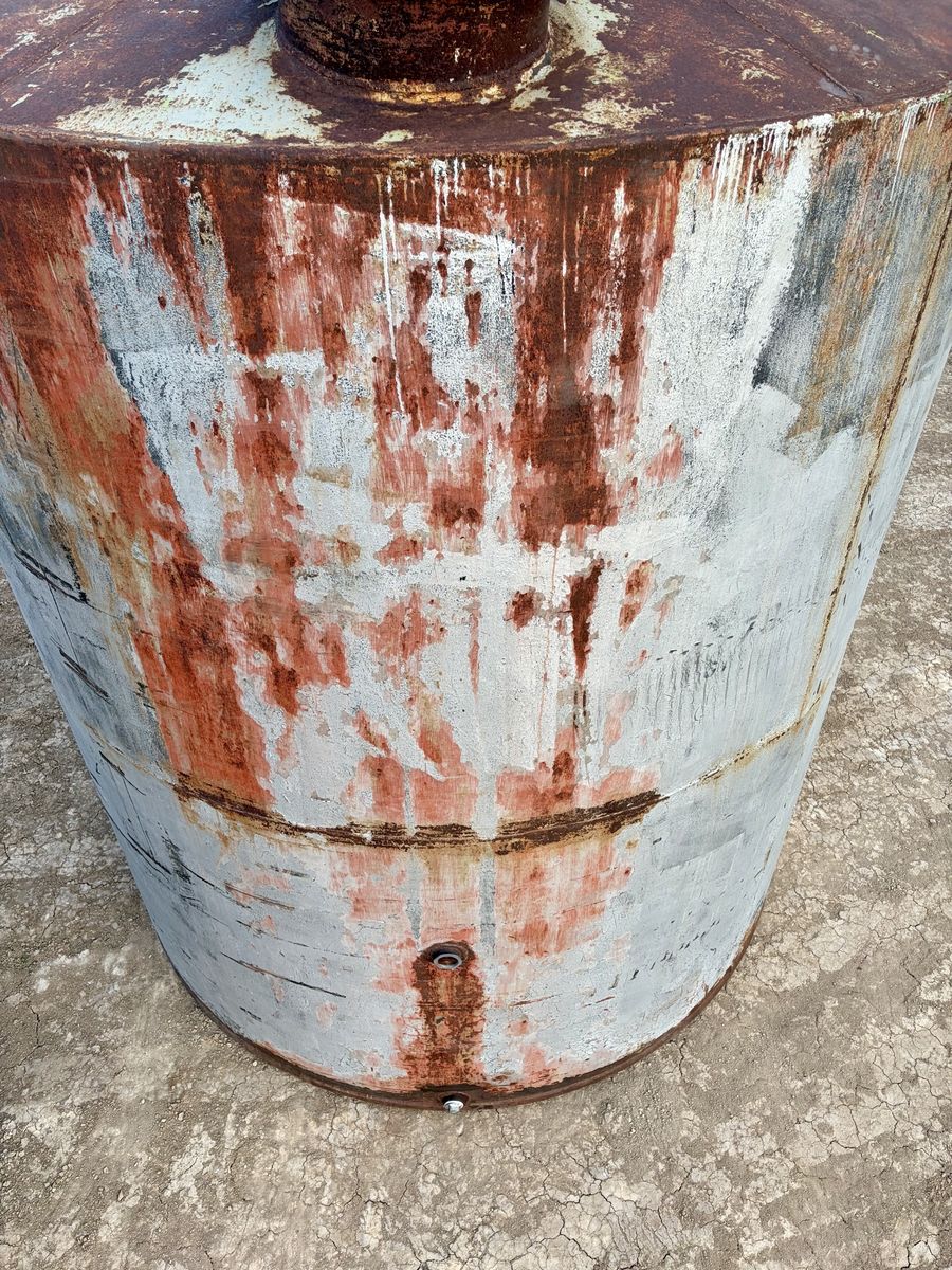 This is a solid tank! Constructed out of thick steel. Has multiple 2 inch threaded ports. Pretty clean on the inside might have some boogers. Stands just under 12 feet tall and is 9 foot in diameter. With a fill depth of 10 feet.