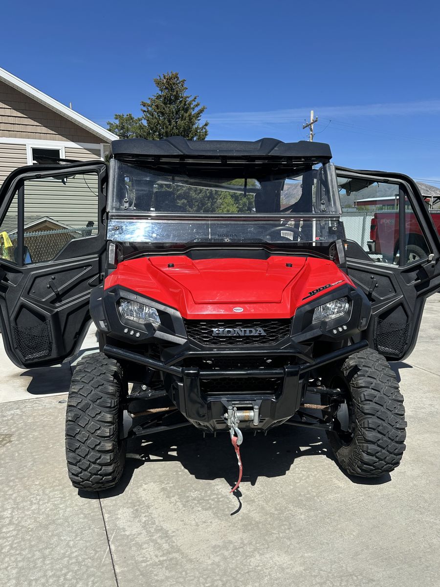 Venmo2018 Honda Pioneer for sale, 1266 original mile, hard enclosed front, soft rear enclosed, this machine has been very well taken care of, always garaged, has the original rubber on it, gun rack, heater, winch, hand held winch controller, comes with a snow plow and original doors, paddle shifters, no belts in the transmission, Honda direct drive, great machine, have clear title.