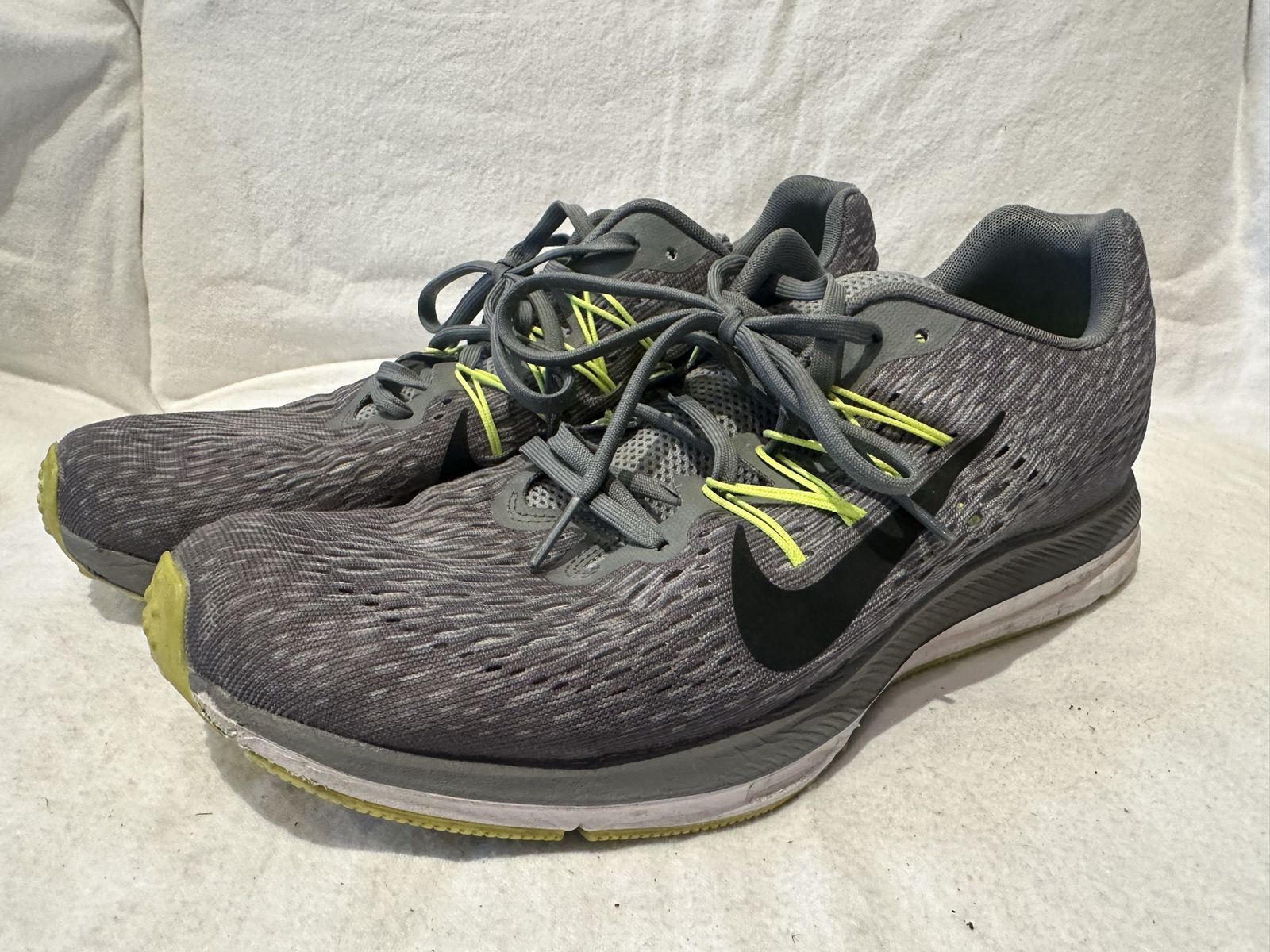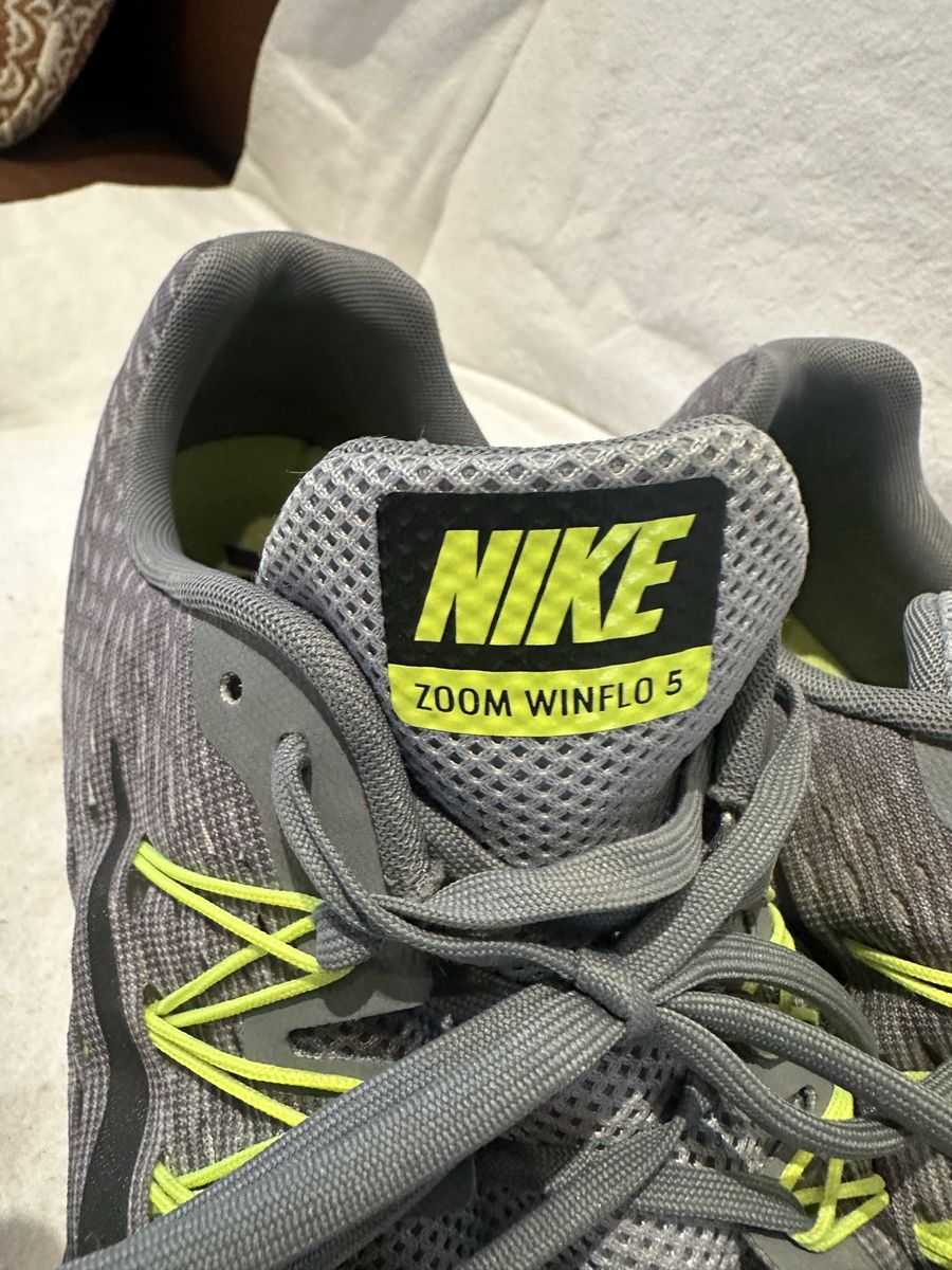 Nike Zoom Winflo 5 men’s size 10.5 gray mesh with lime trim lightly used running shoes. See photos for details. I take cash or Venmo, but cash is preferred. Text is best. 801-201-4446. Check out my other ads for additional sizes and styles.