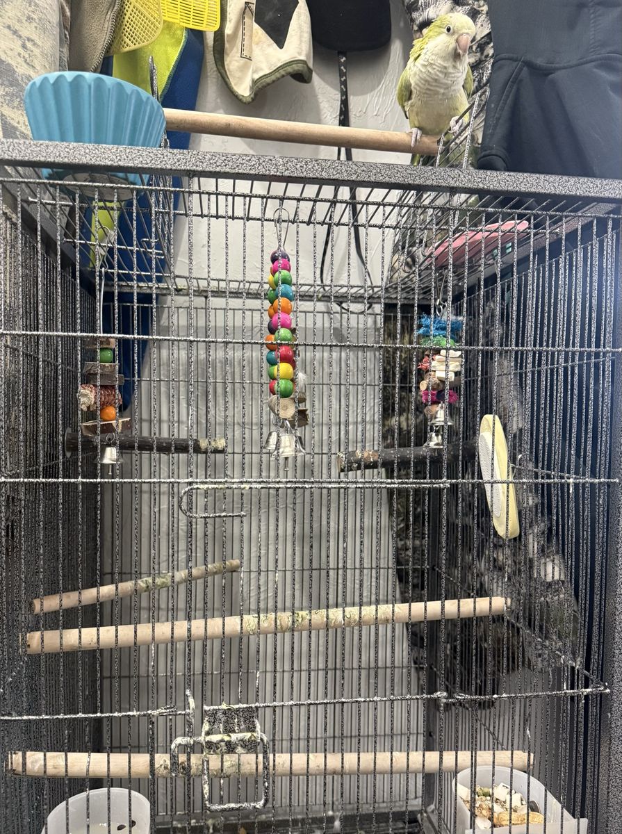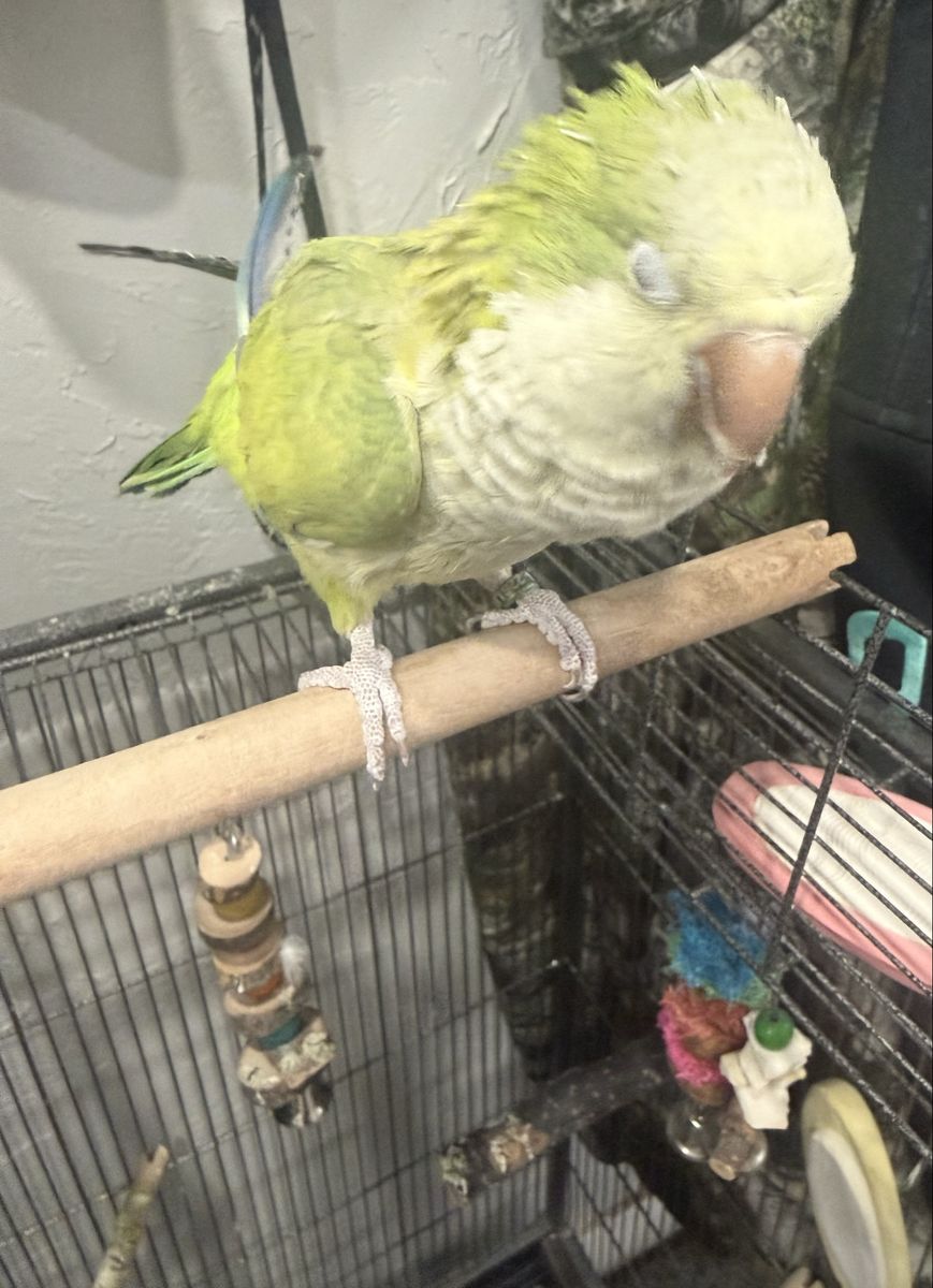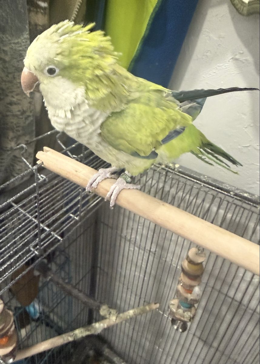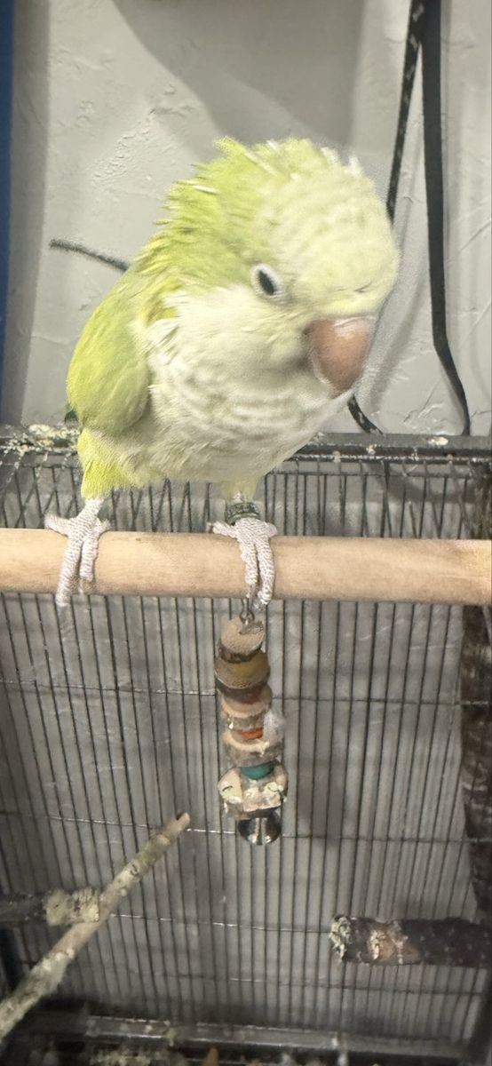 ApplePayI was told she is female we call her hei hei. She is a little over a year. She needs way more attention than I can offer. She would do great with other birds but has never had any others around. She will fly off her cage for attention. She takes a little time to warm up and then is a sweetheart. She will need your love and patience. I hate seeing her go and want her to go somewhere she is loved and cared for. She comes with a large cage with a stand on top, her food and treats. She loves to be where ever you are. Texts or messages are best!