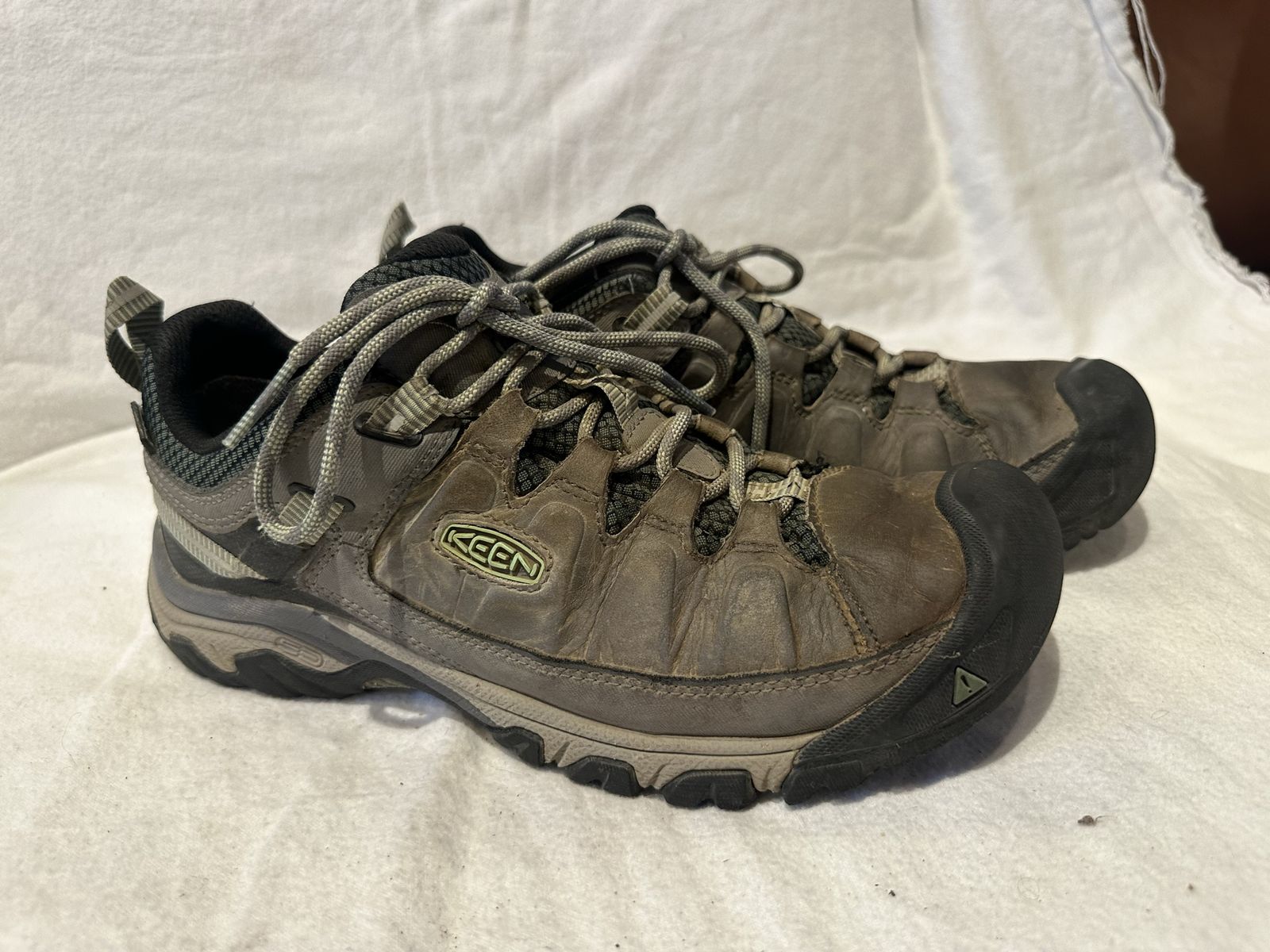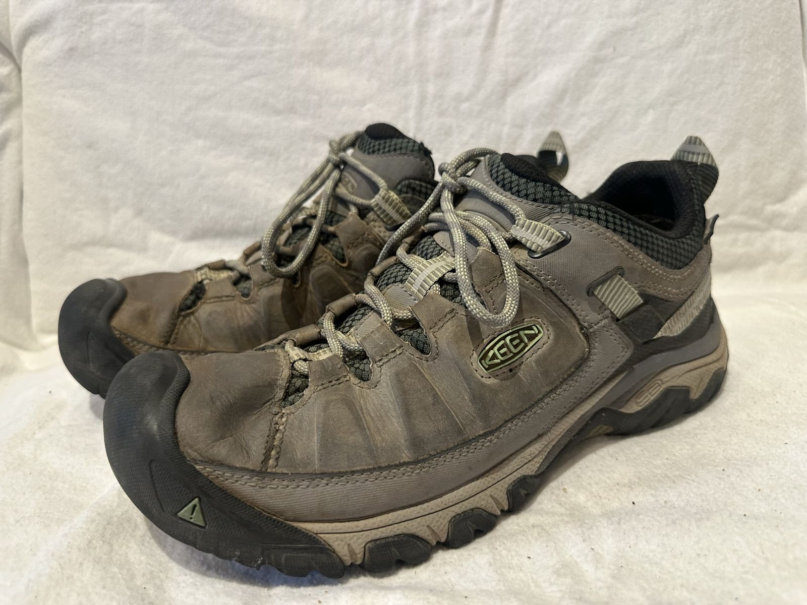 Keen men’s size 10 brown with sage green trim, waterproof hiking shoes. These are in good condition, see photos for details. I take cash or Venmo, but cash is preferred. Text is best. 801-201-4446. Check out my other ads for additional sizes and styles.