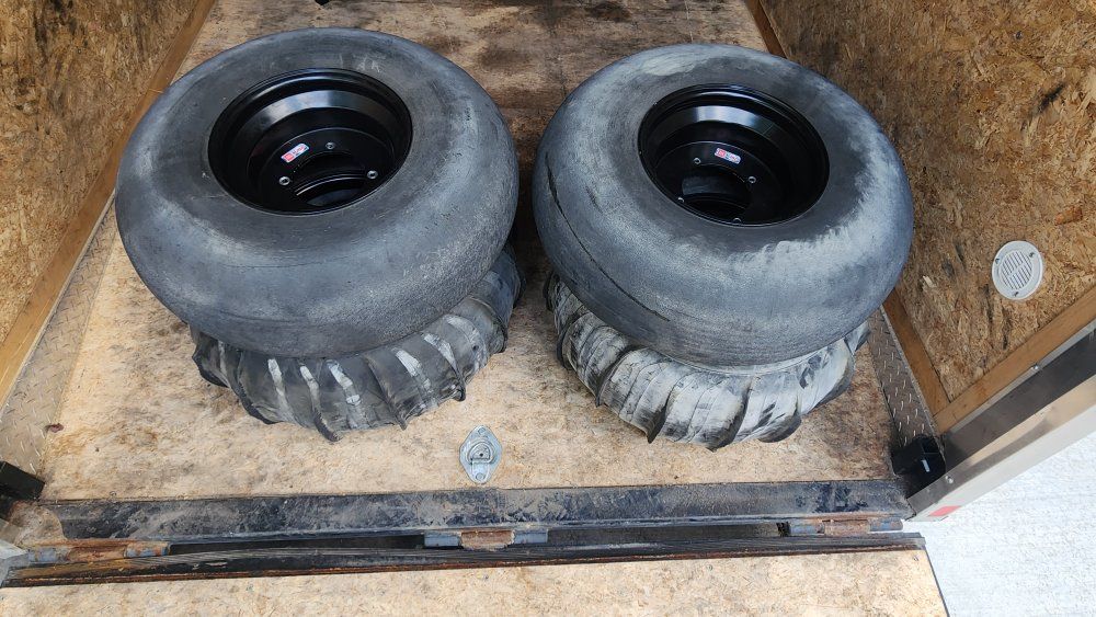 These Sand Blaster sand tires have some wear, but are in pretty good condition. They were on a RZR 900 XP. They are 26-12 Sand Blaster Pro tires. They do have a few chunks missing from a few of the paddles, and for that I have discounted the whole set to $275.