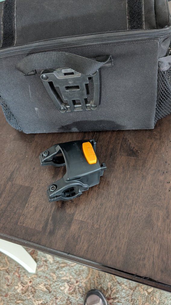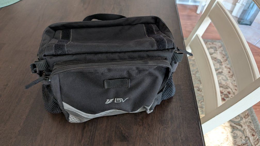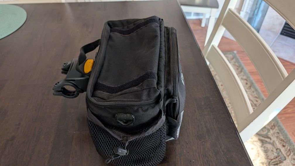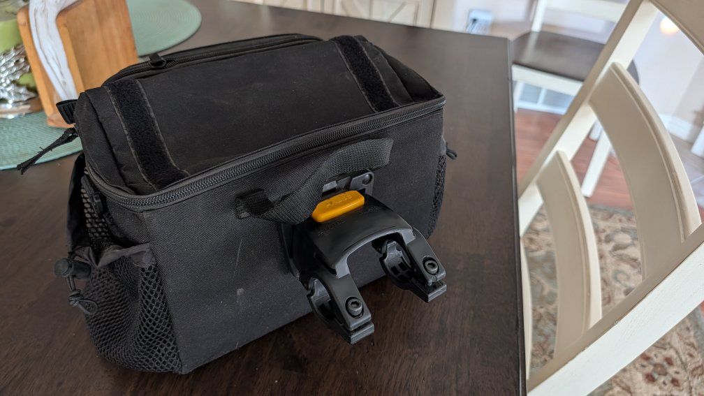 VenmoThis is a great for handlebar storage bag with easy access. The bracket mounts to your handlebars and you can take the bag on and off when you park your bike easily. it has a shoulder strap and a waterproof cover for your maps or information to mount on top of the actual bag.