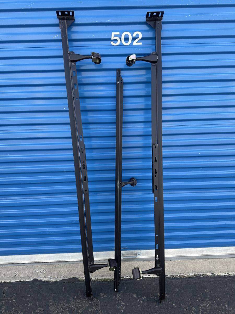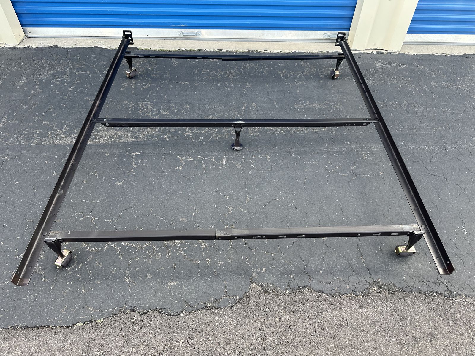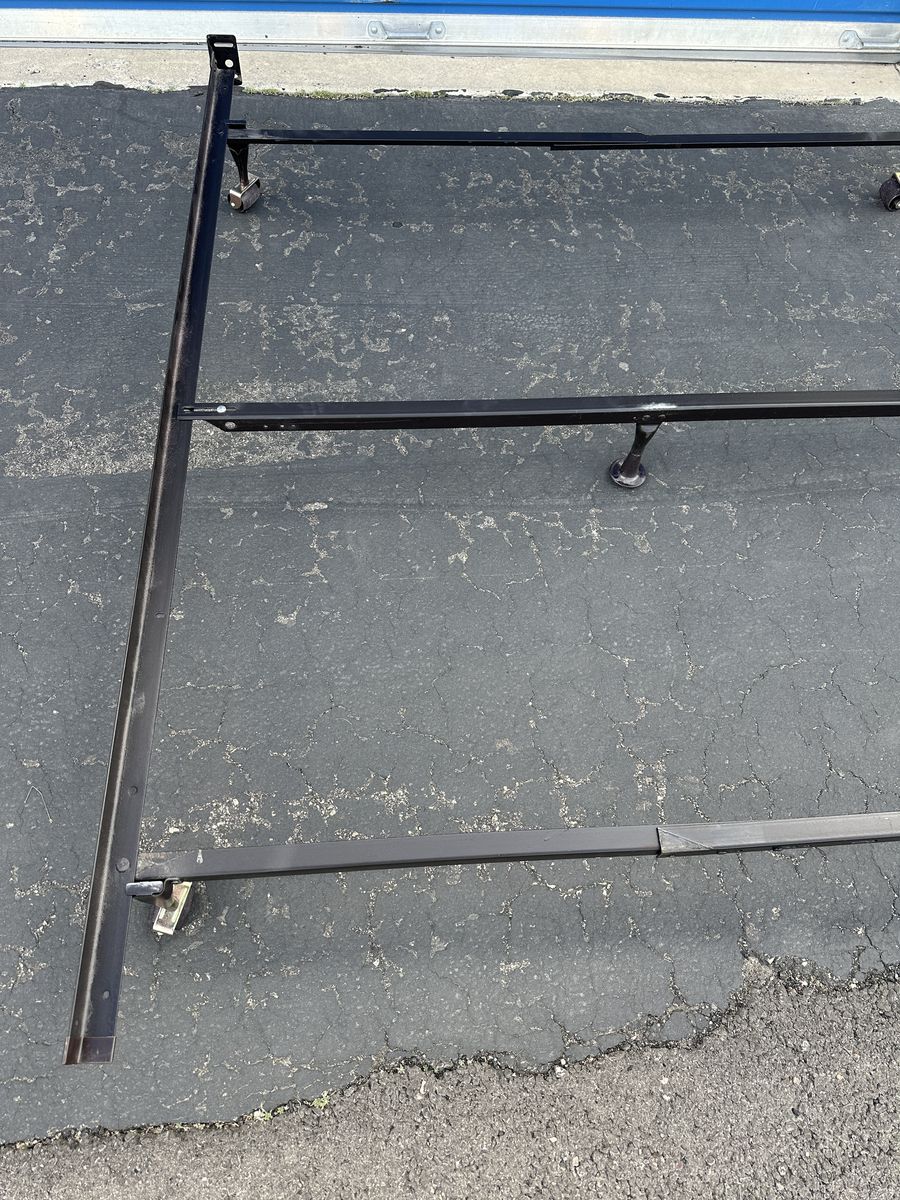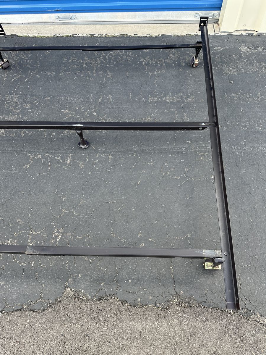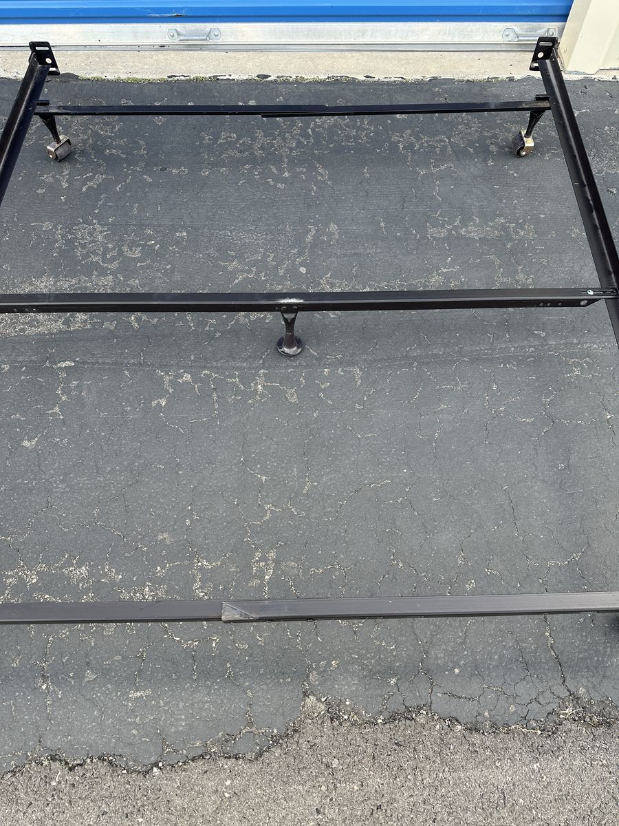 Check out this queen metal bed frame. Overall, it is in good condition. There might be some imperfections from moving, a few scratches and signs of use, some surface rust on the frame, signs of use, etc.