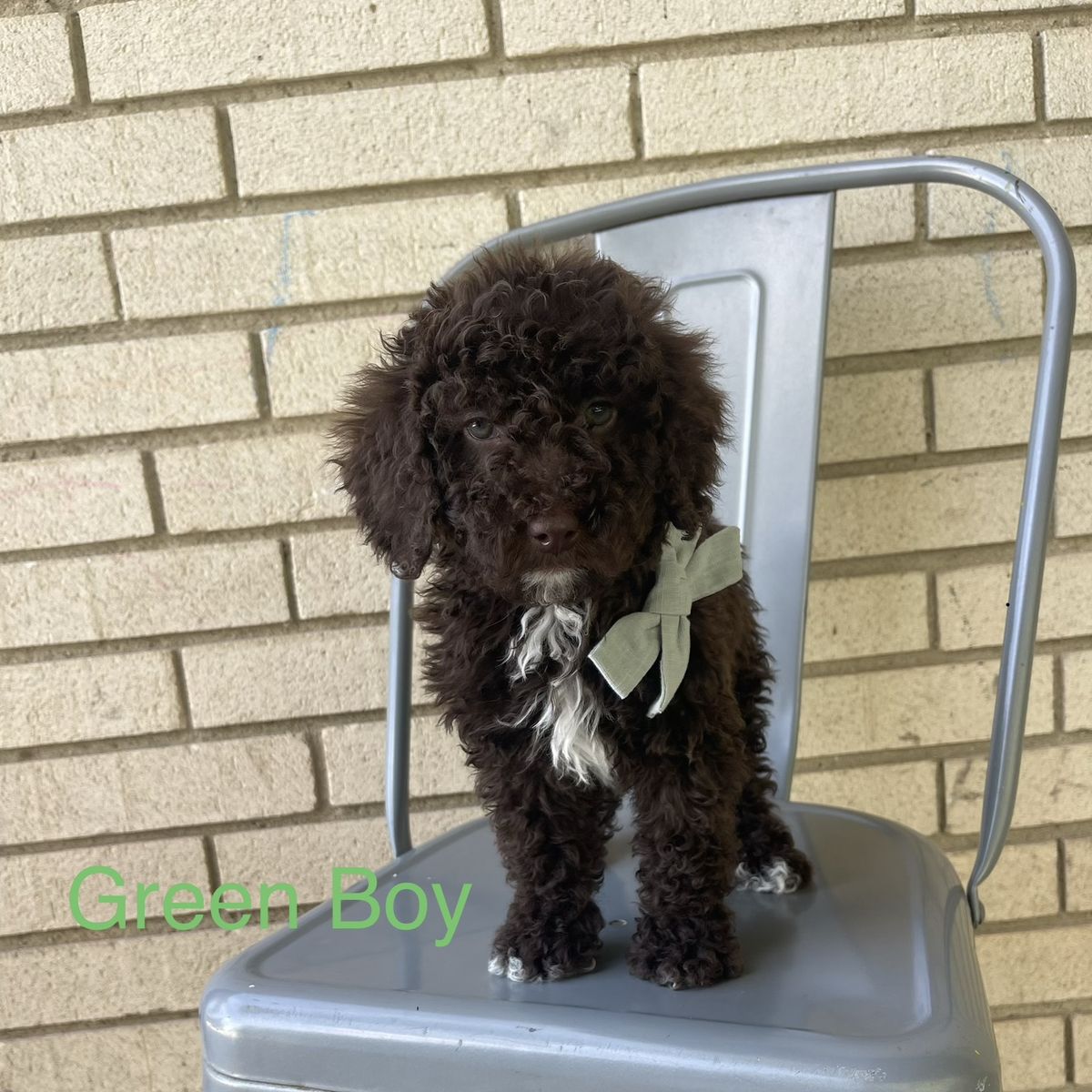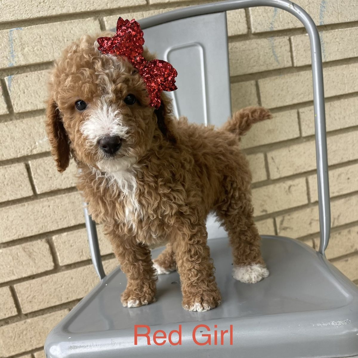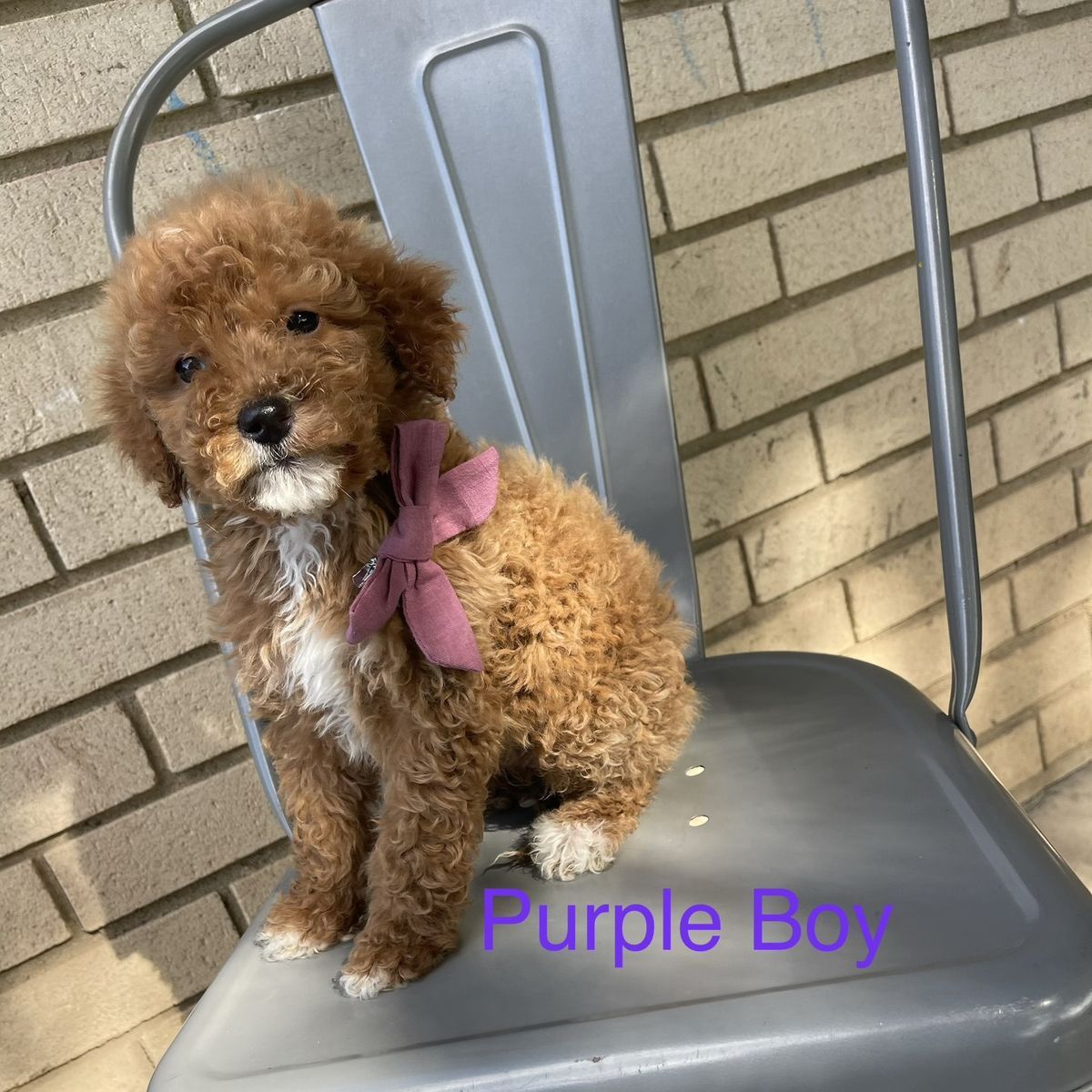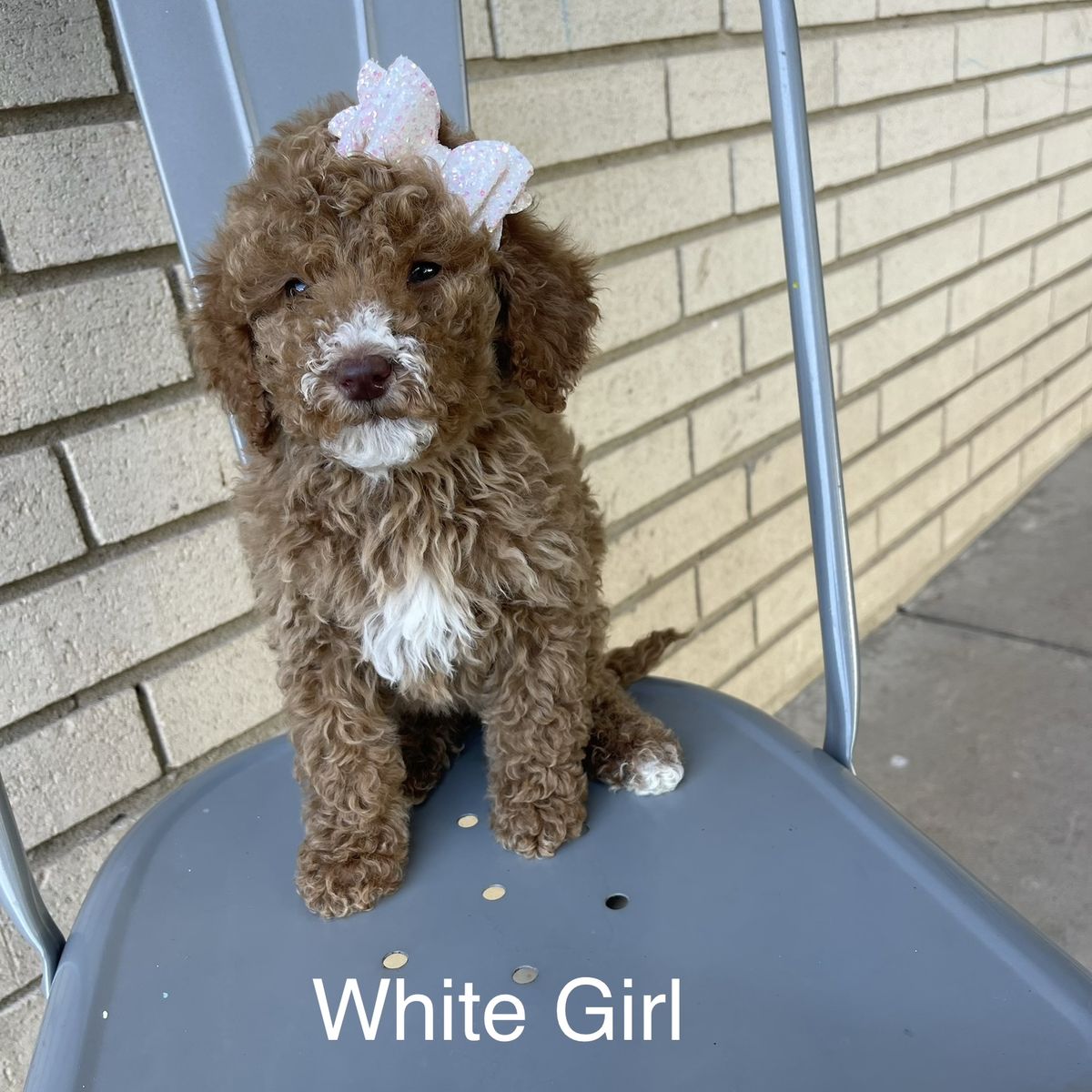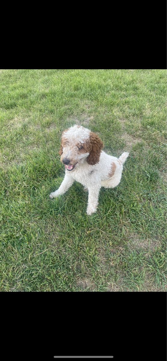 Dad is our akc registered mini parti poodle he spends his days chasing my kids around and being all up in their business he’s smart and the fun haver of the family!!