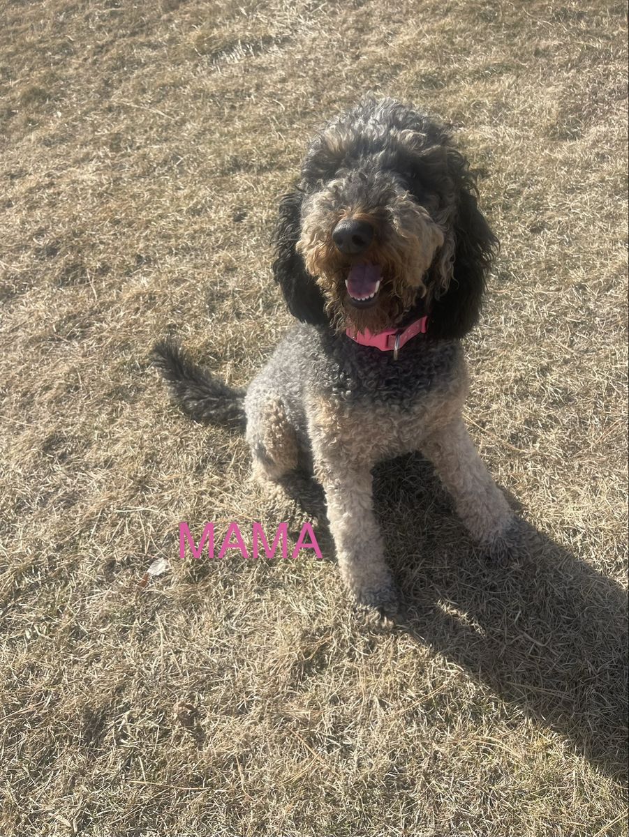 Mama is our purebred phantom standard poodle I’d say she’s definitely on the smaller side of standards she’s a mama bear to her babies as well as mine she’s my bestie girl always aware and alert making sure my kids are very well taken care of and extremely smart!