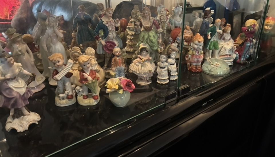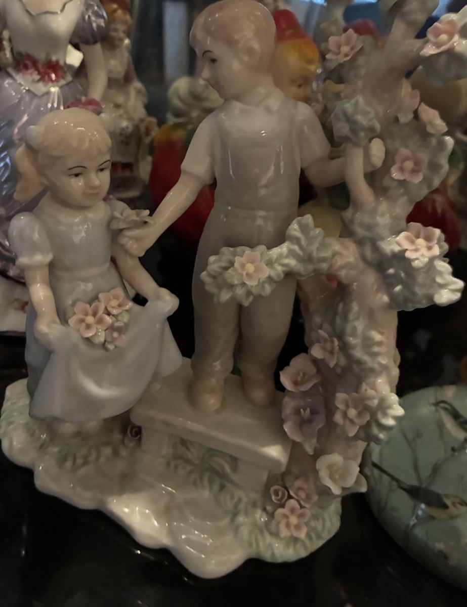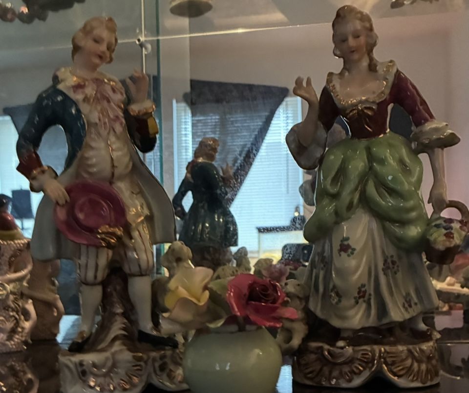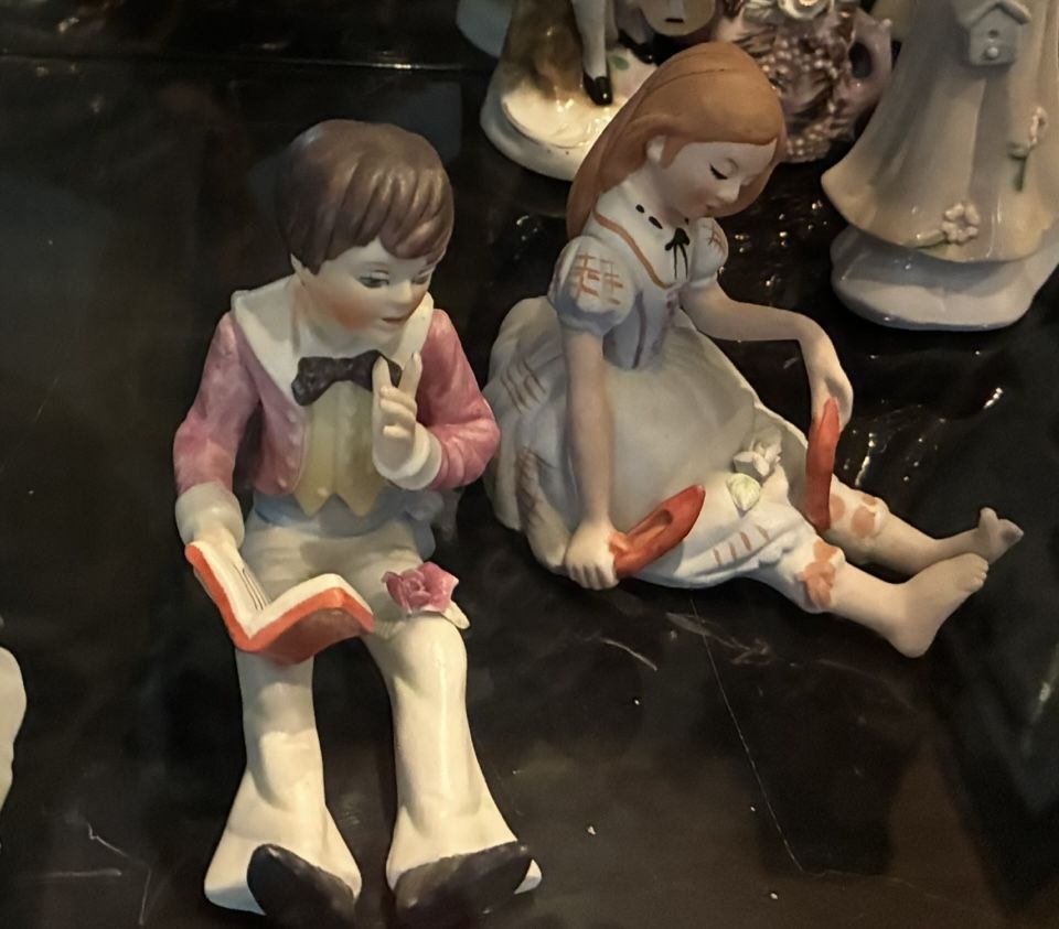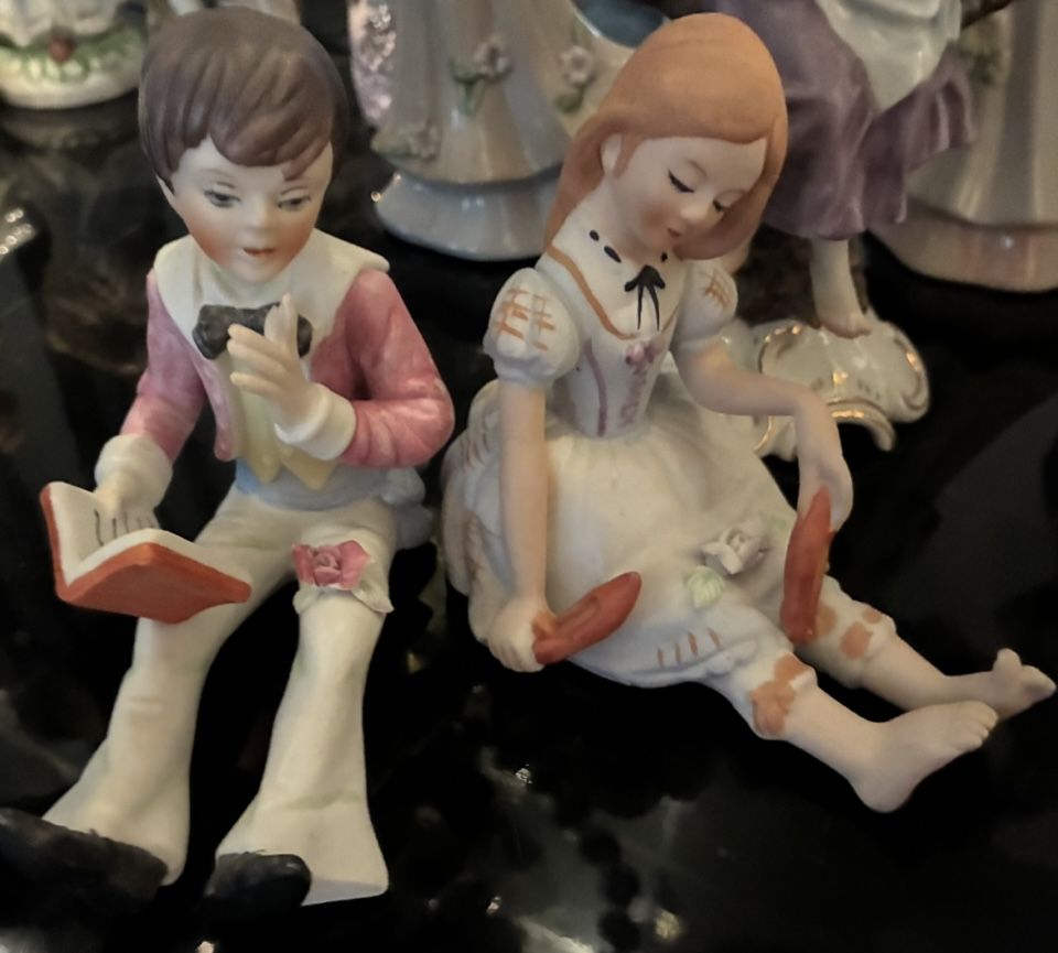 Make offer for entire lot of antique china cabinet figure/sets! Entire full Shelf! 801-604-8416