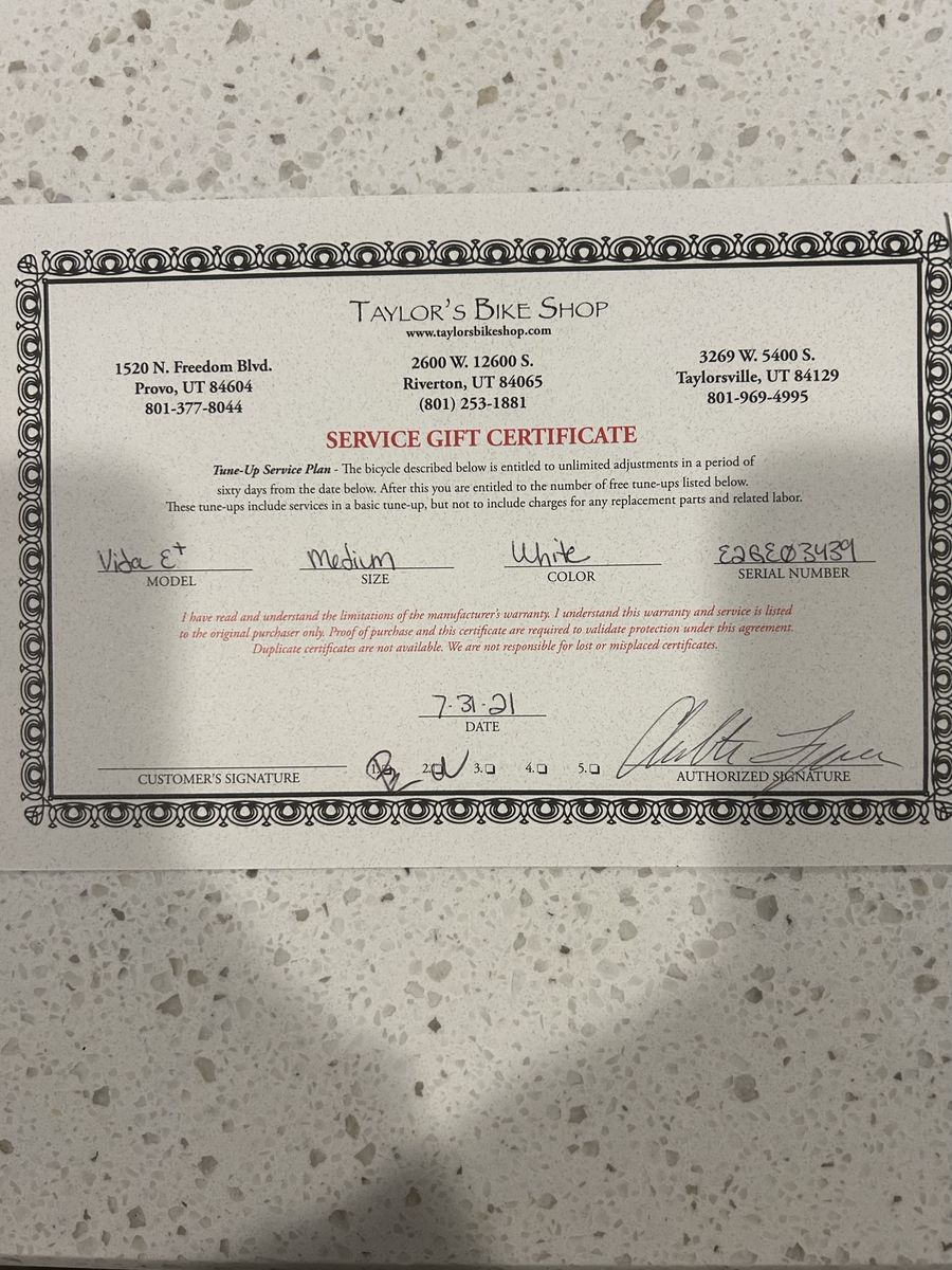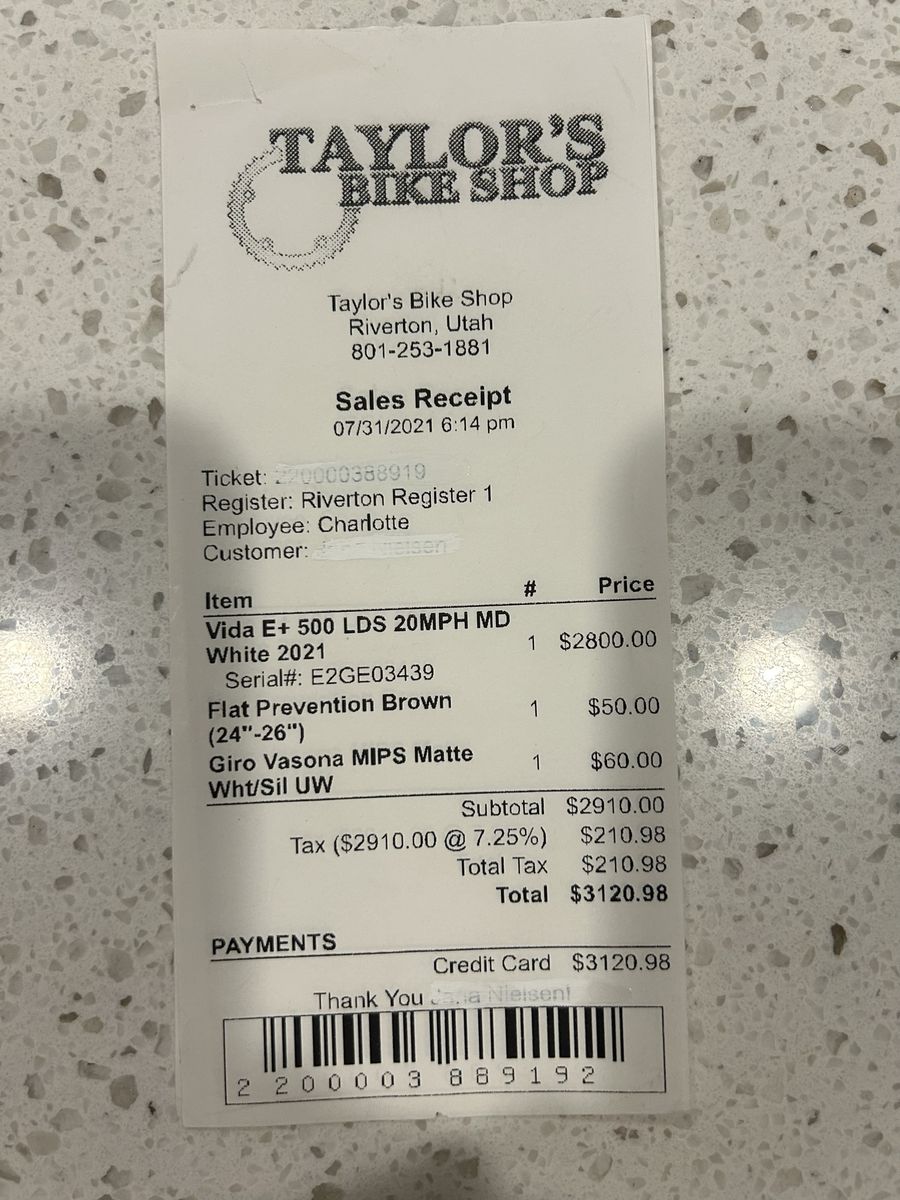 VenmoWhite Momentum Vita E+ electric bike in pristine condition. Bought at Taylor’s bikes in Riverton. Charger, manuals and a service gift card for 3 more free tune ups. Paid $3,120.00