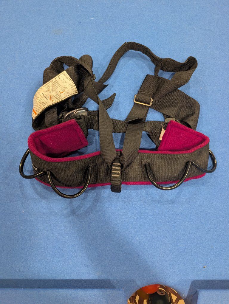 Uses 3 strands of low-profile webbing in the fixed leg loops and waist to distribute load evenly and minimize pressure points Women-specific rise and fit sits higher on your torso than a man's harness would 4 pressure-molded gear loops Adjustable
