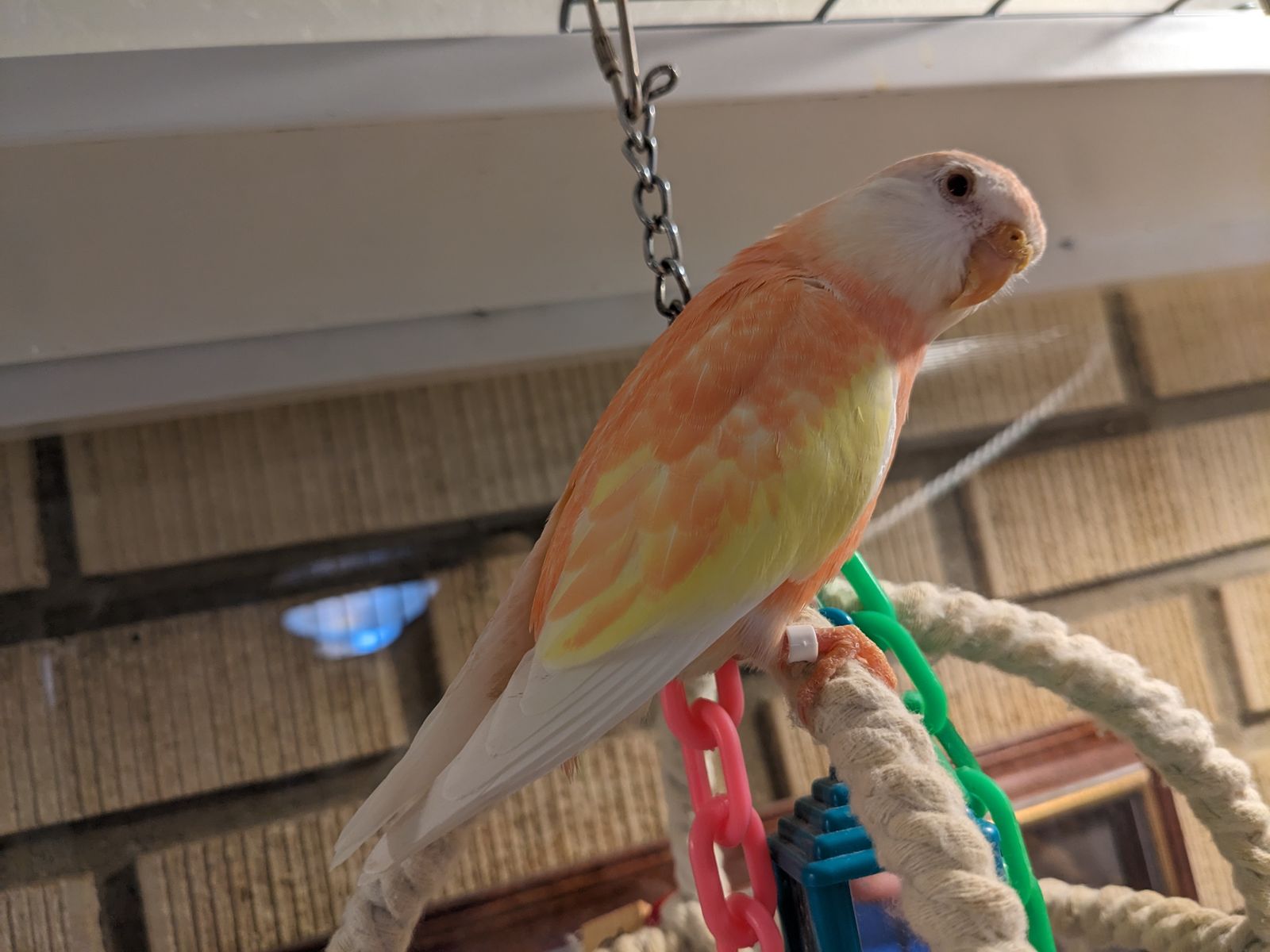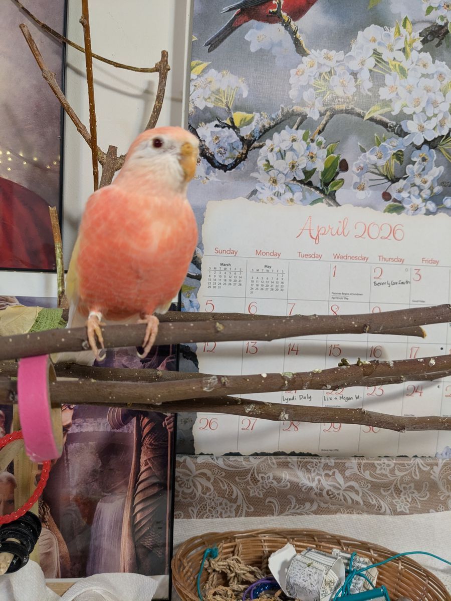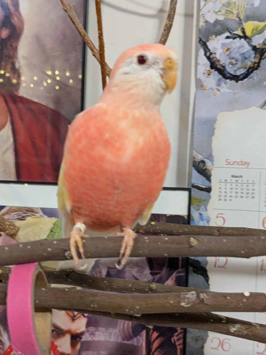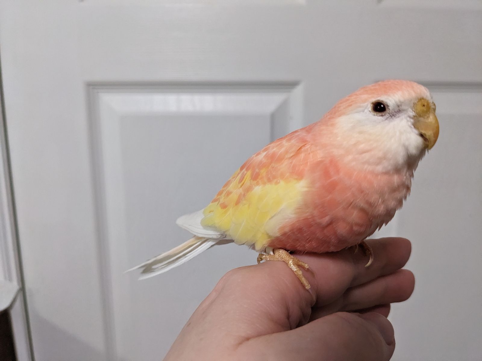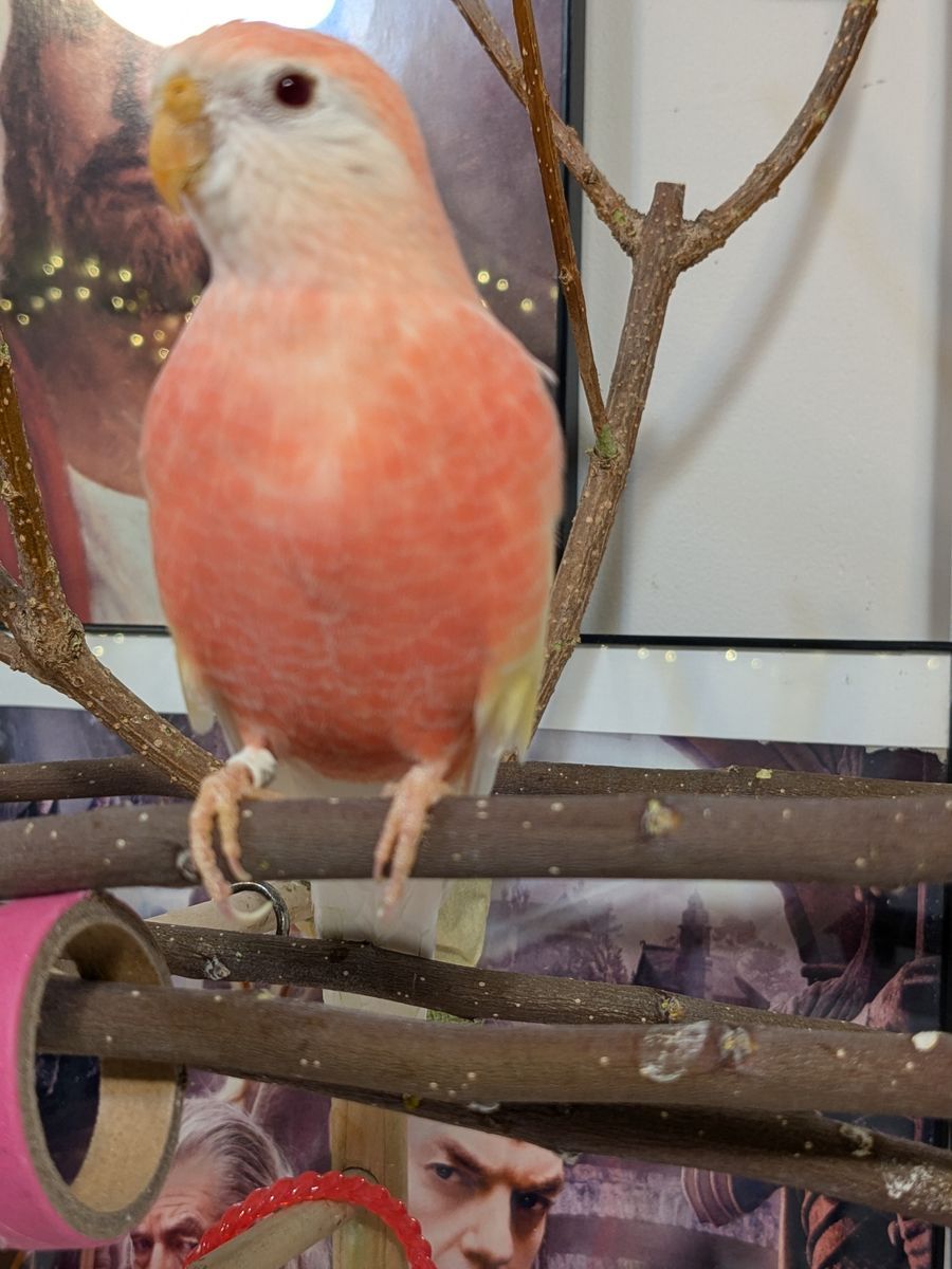 She requires a home with a room sized aviary or bird room. She needs to live with less skittish Rosy Bourkes.