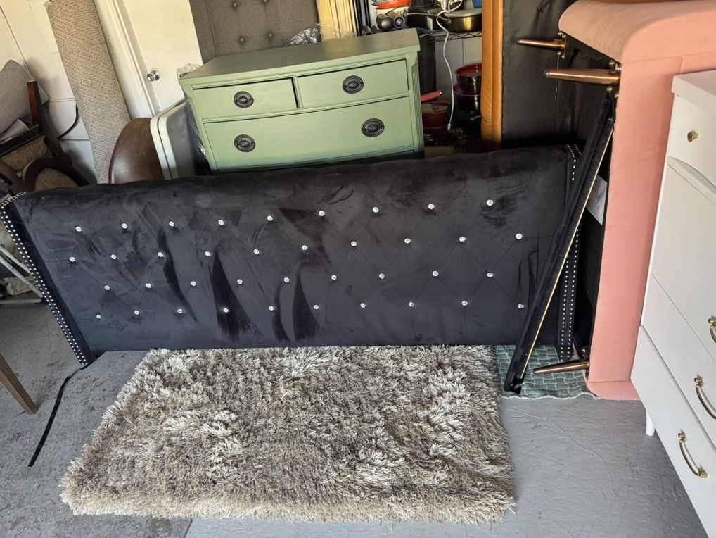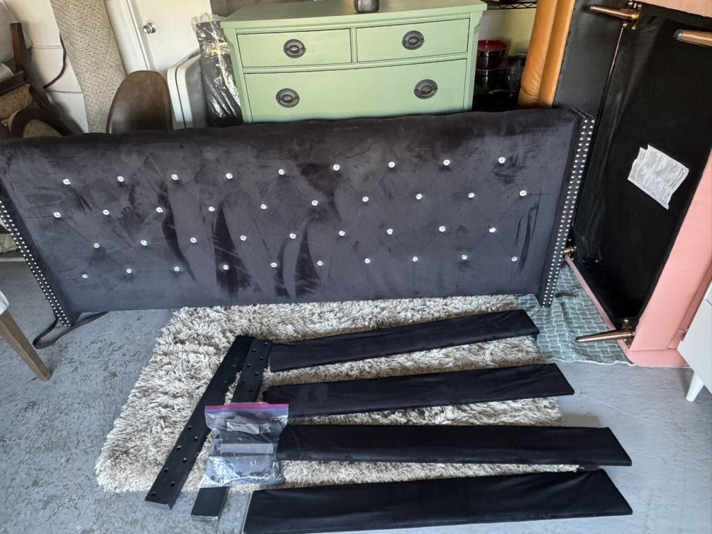 Home Design Homer California king Diamond Tufted and Nailhead Trim Velvet Wingback Platform Bed Frame for Adult, Black, Easy Assembly