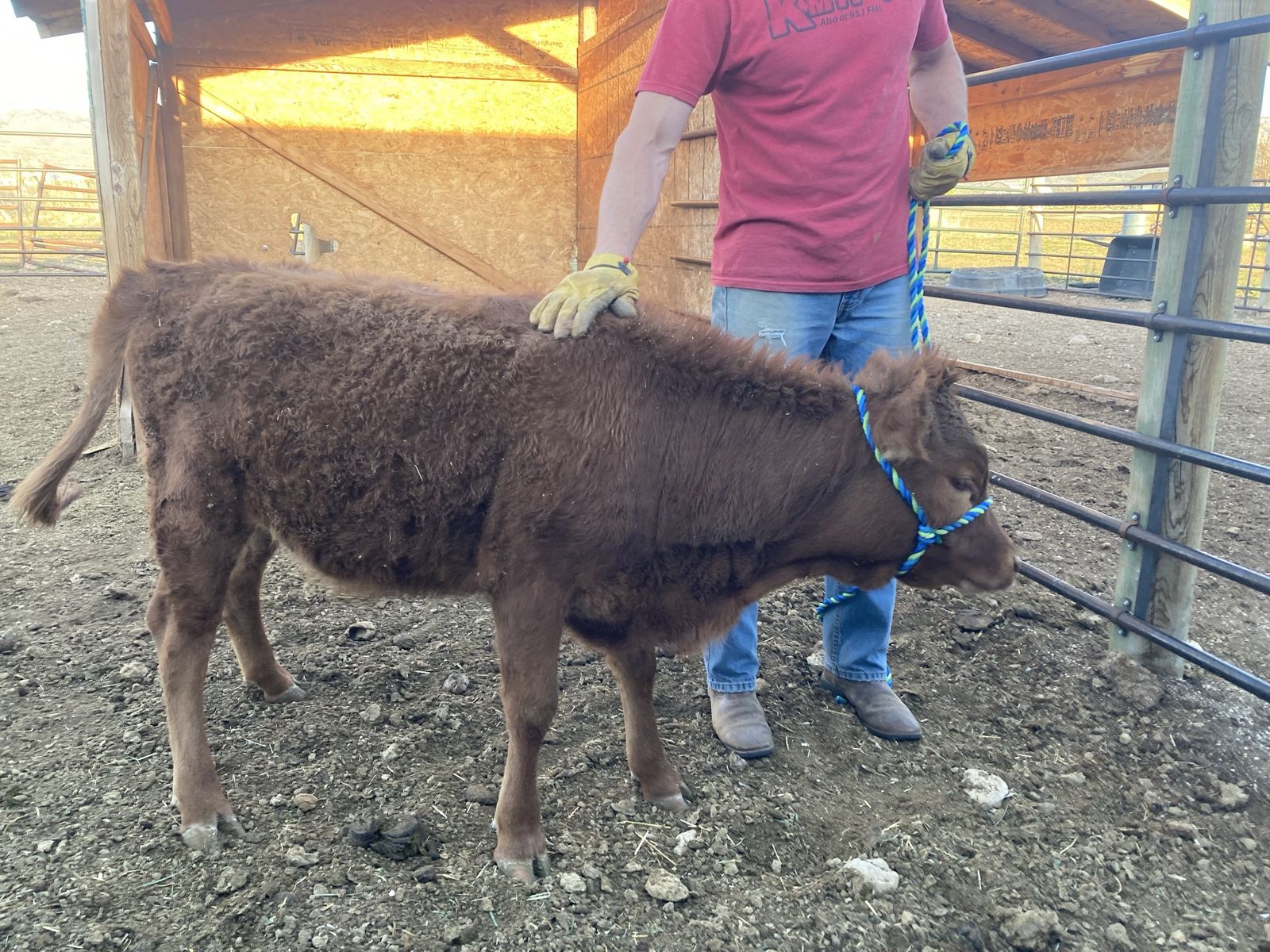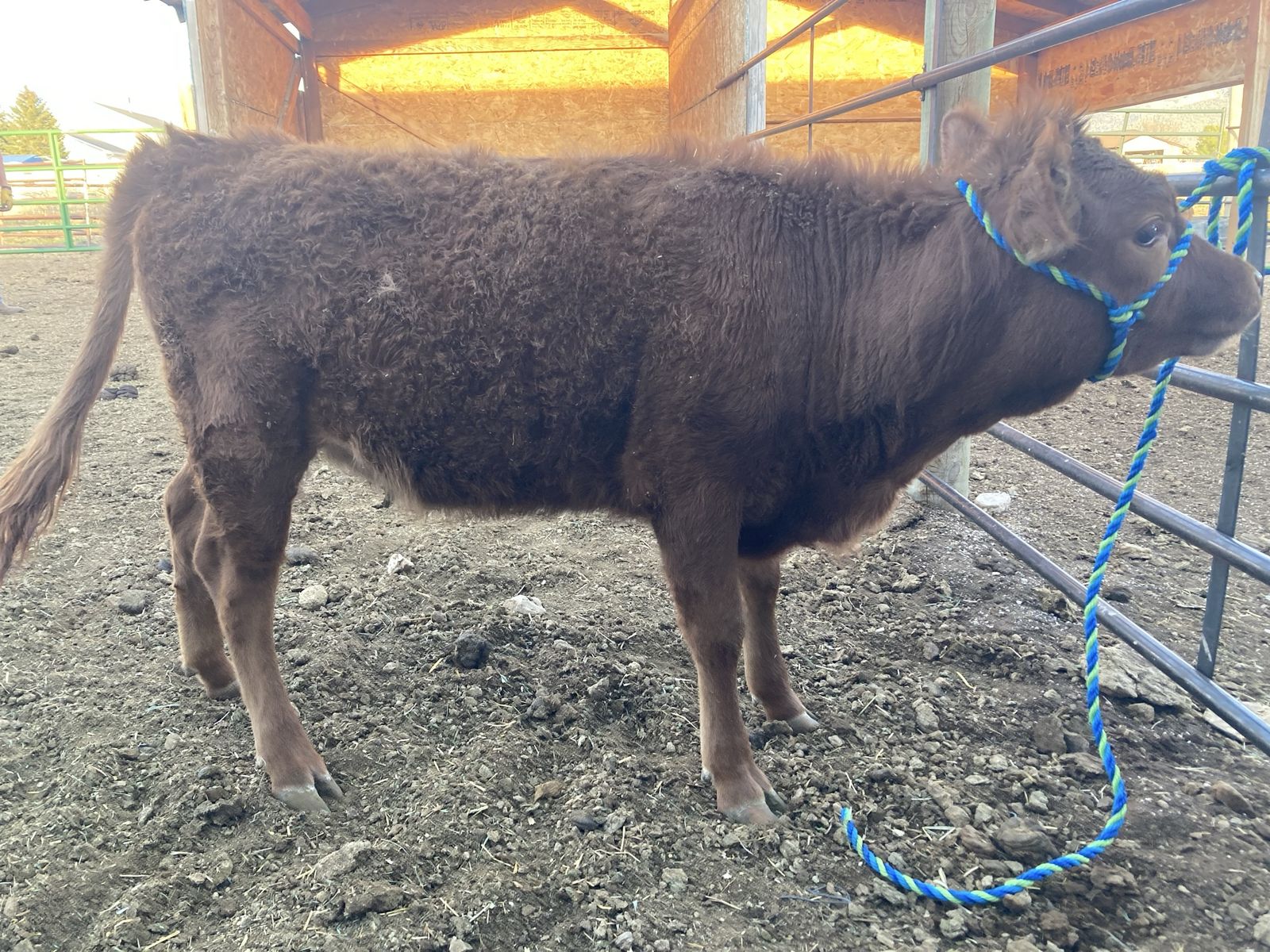 7 month old registered ADCA dexter heifer. Dehorned, started halter training, has been handled since birth. Her mom is one of our main milkers giving over a gallon a milking, great udder and easy to milk teats. This little girl has the potential to make a great family milk cow, nice calves and beef for the table. Her mom and dad are pictured at the end.