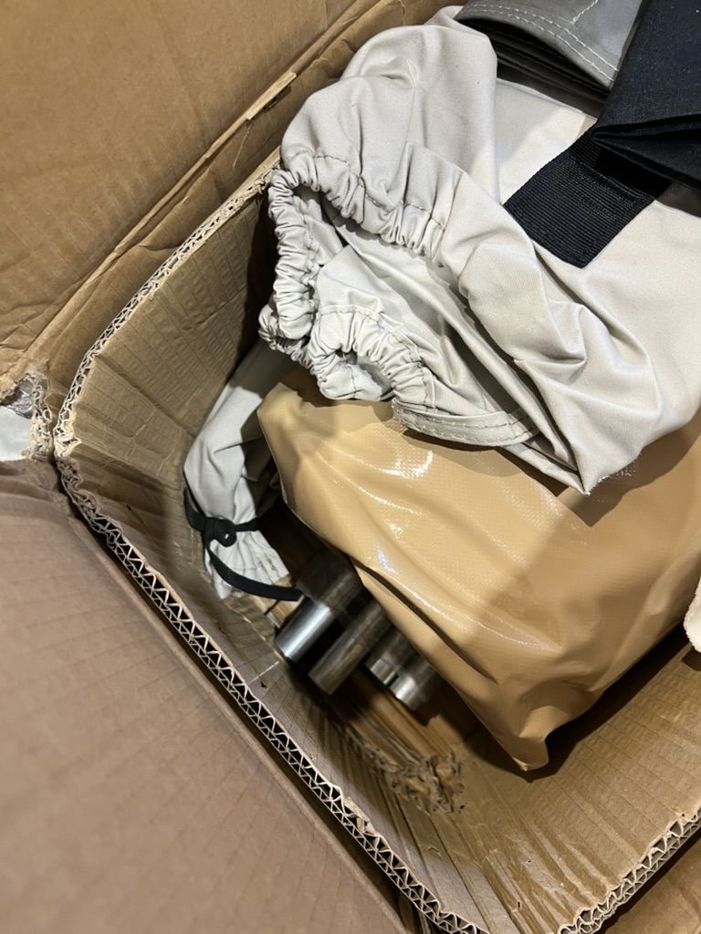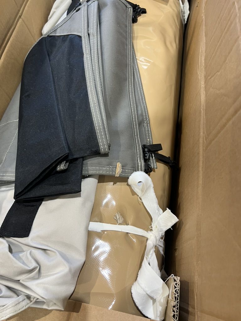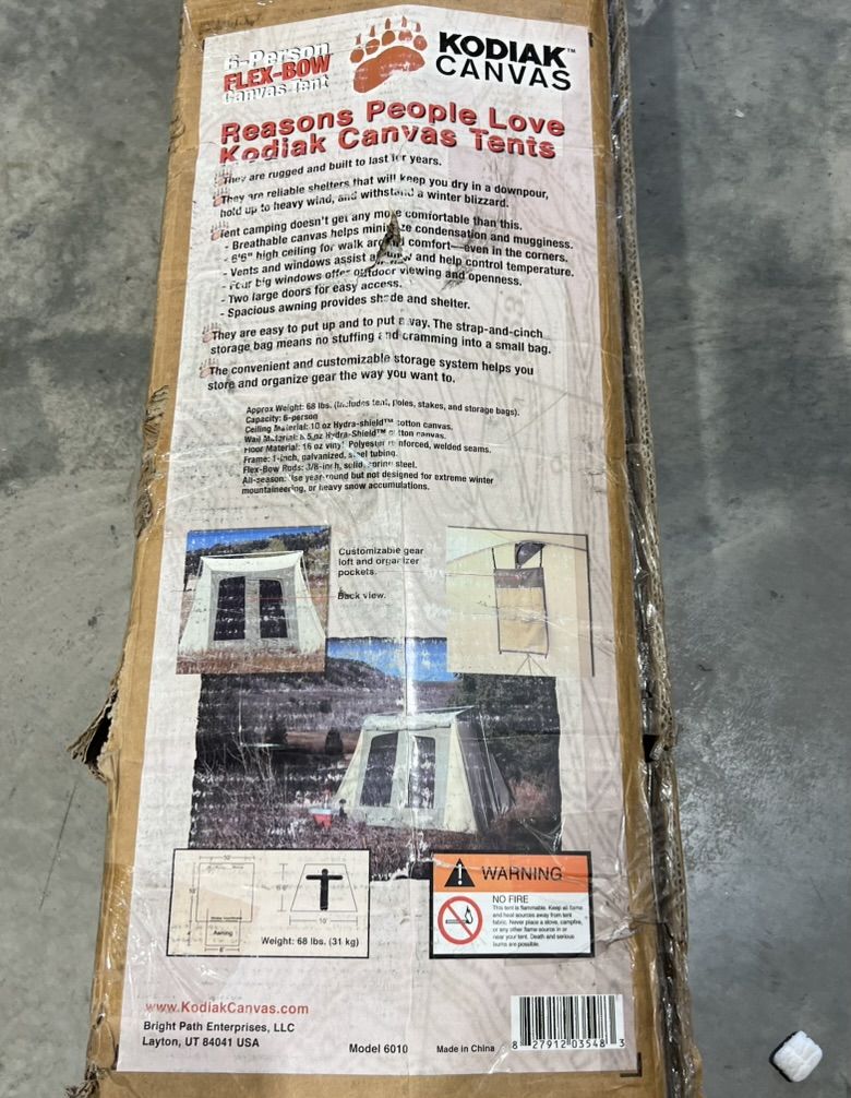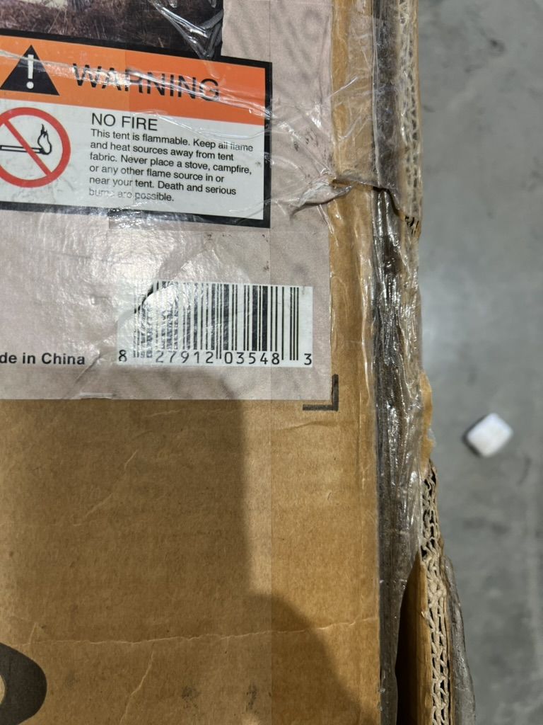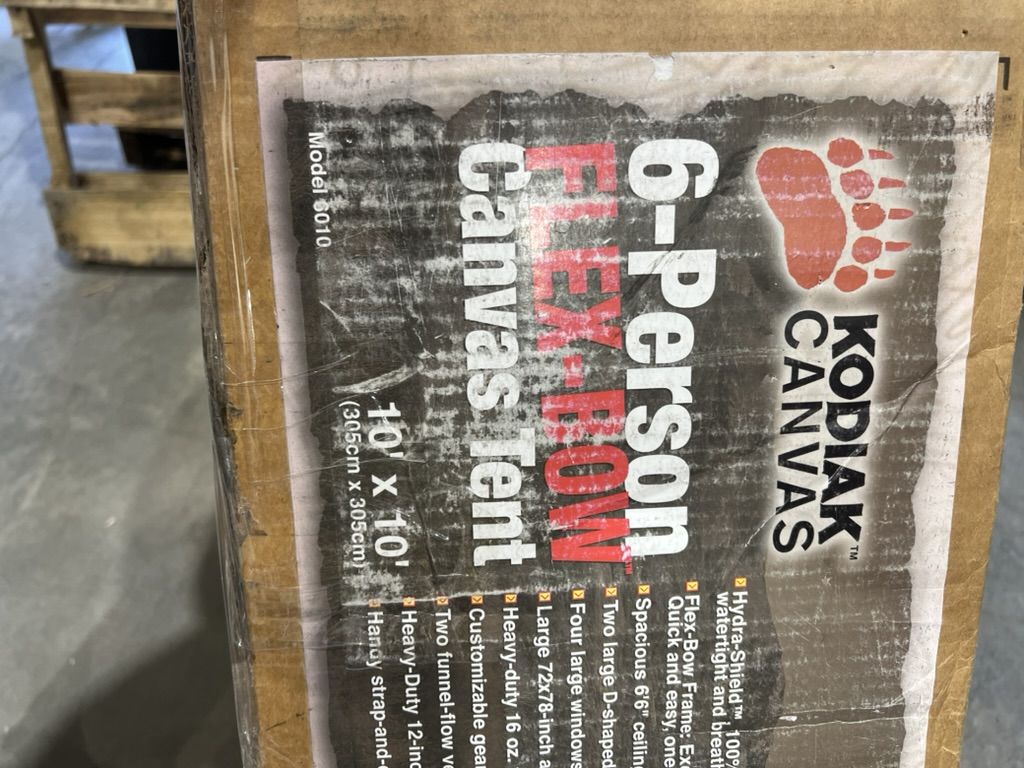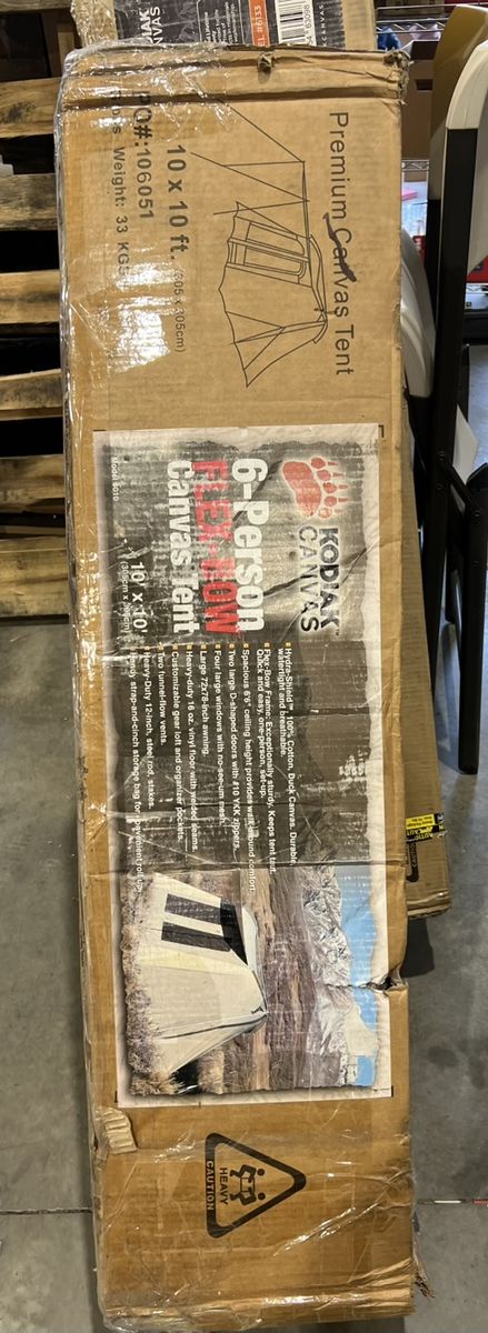 Box shows wear, but the tent itself appears unused. Dimensions: 10' x 10'.