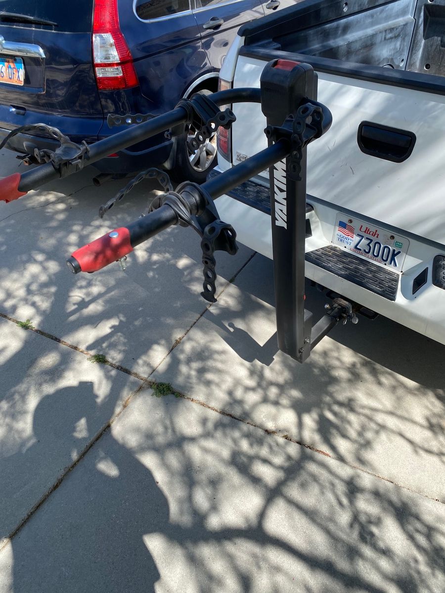 VenmoYakima Hitch Mounted Bike Rack for three bikes, It has a intigrated lock cable, I have all keys, fits a 1.25 receiver or a 2" receiver, new never used, have lots of spare parts so you won't need to buy anything when bands break, Asking $150 OBO