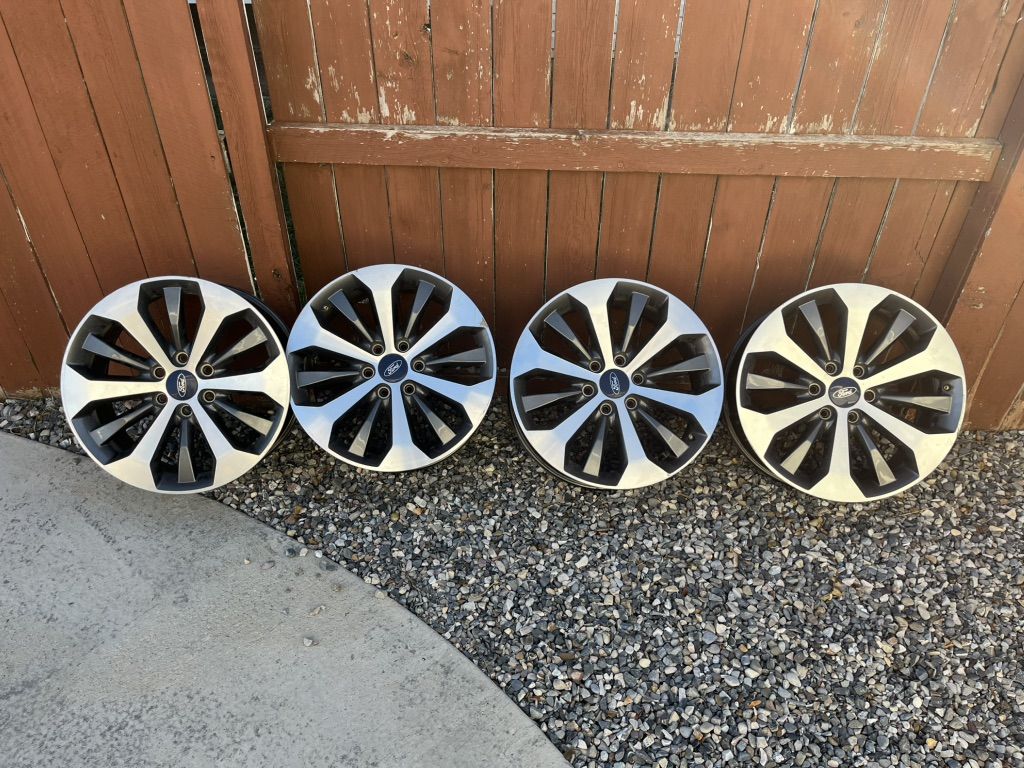These are 20” by 8.5” wheels off of a 2019 Ford F-150. 6x135 bolt pattern. I got new wheels a while back and took these off of my truck. None of them are bent, and they drove wonderfully when they were on my truck. Nice OEM wheels.