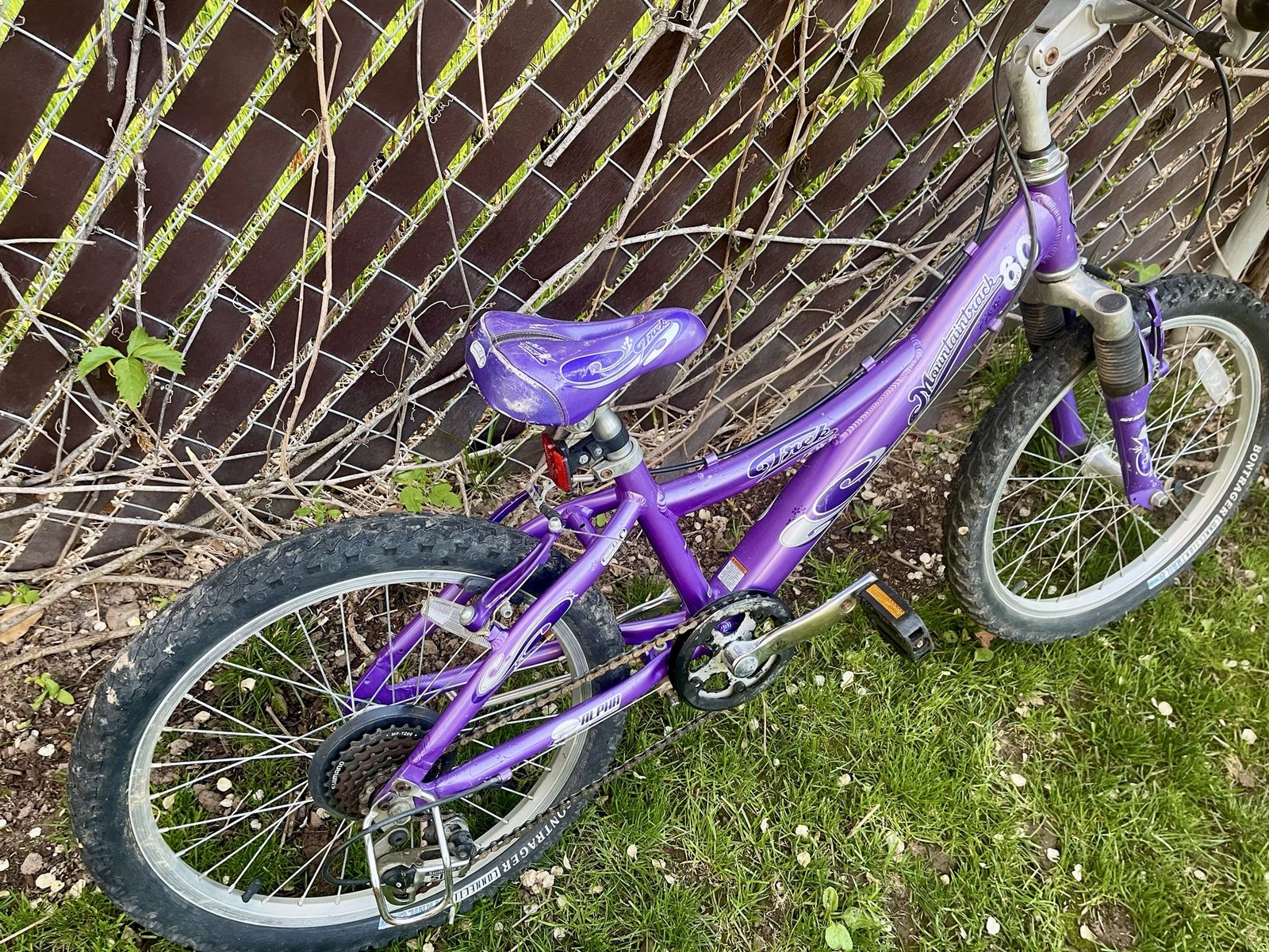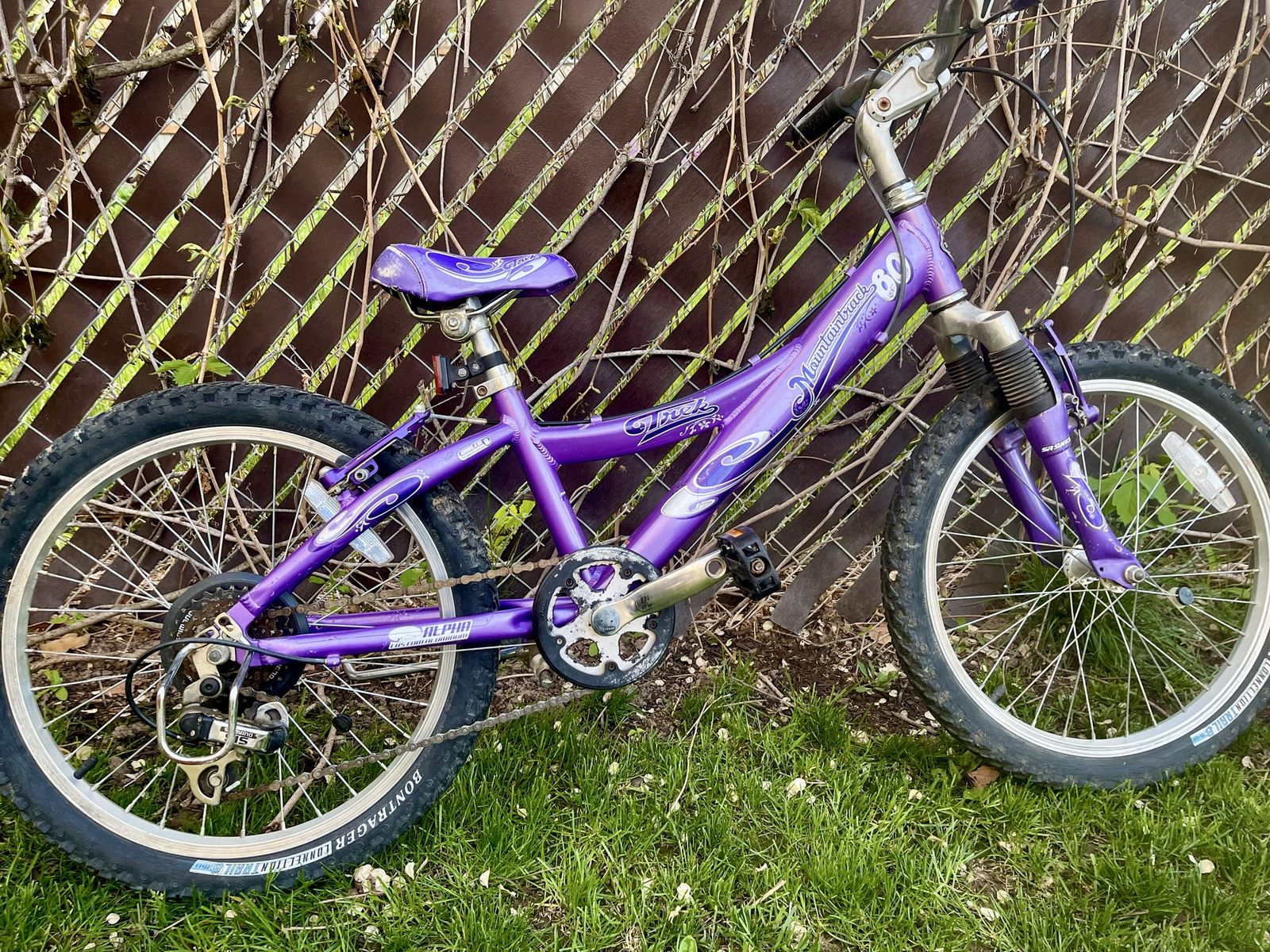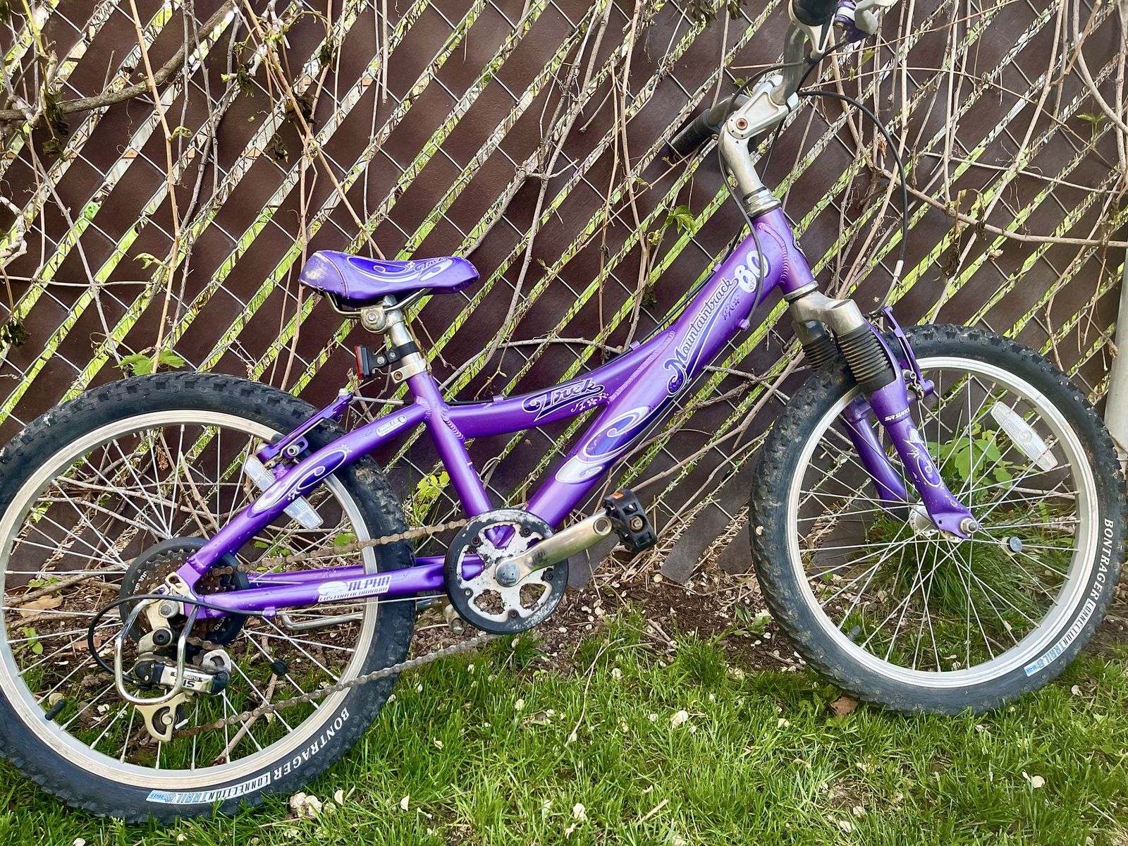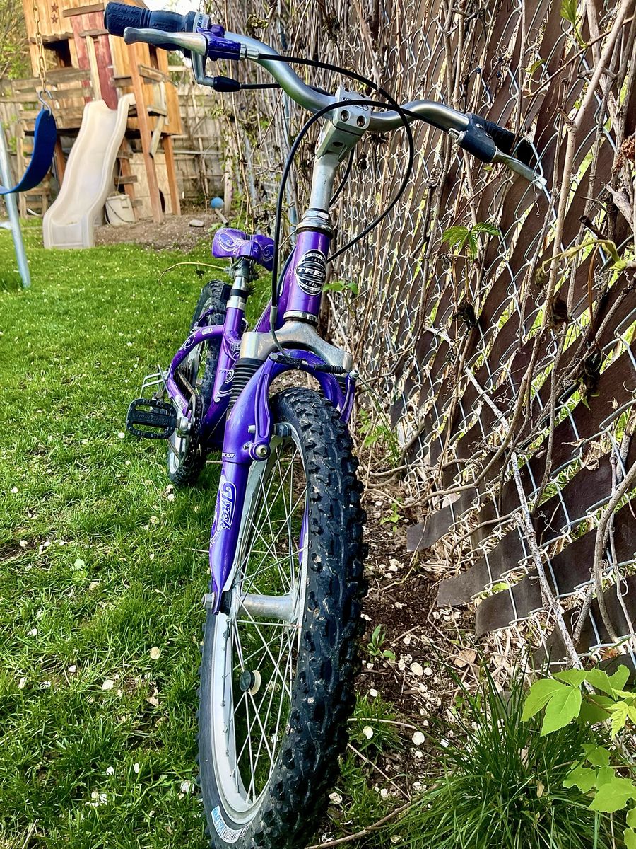 VenmoPurple bike with 20” wheels and front suspension