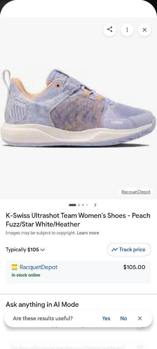 VenmoThese are K-Swiss Ultrashot Team women's tennis shoes in the Peach Fuzz colorway, size 9 US.