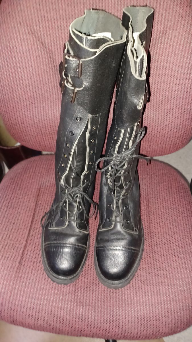 Mens tall lace up leather boots. Rubber sole. Size 8. Made in England.