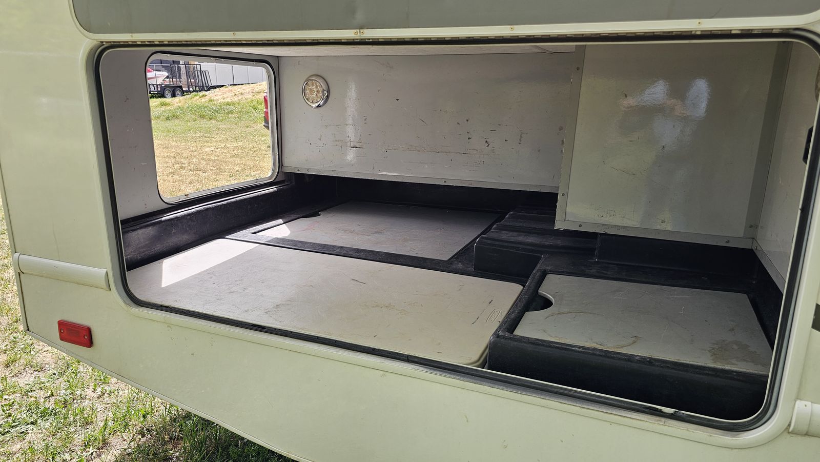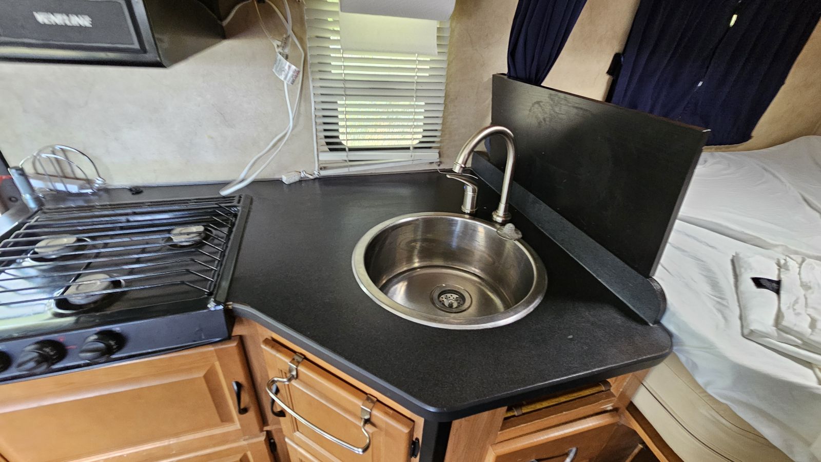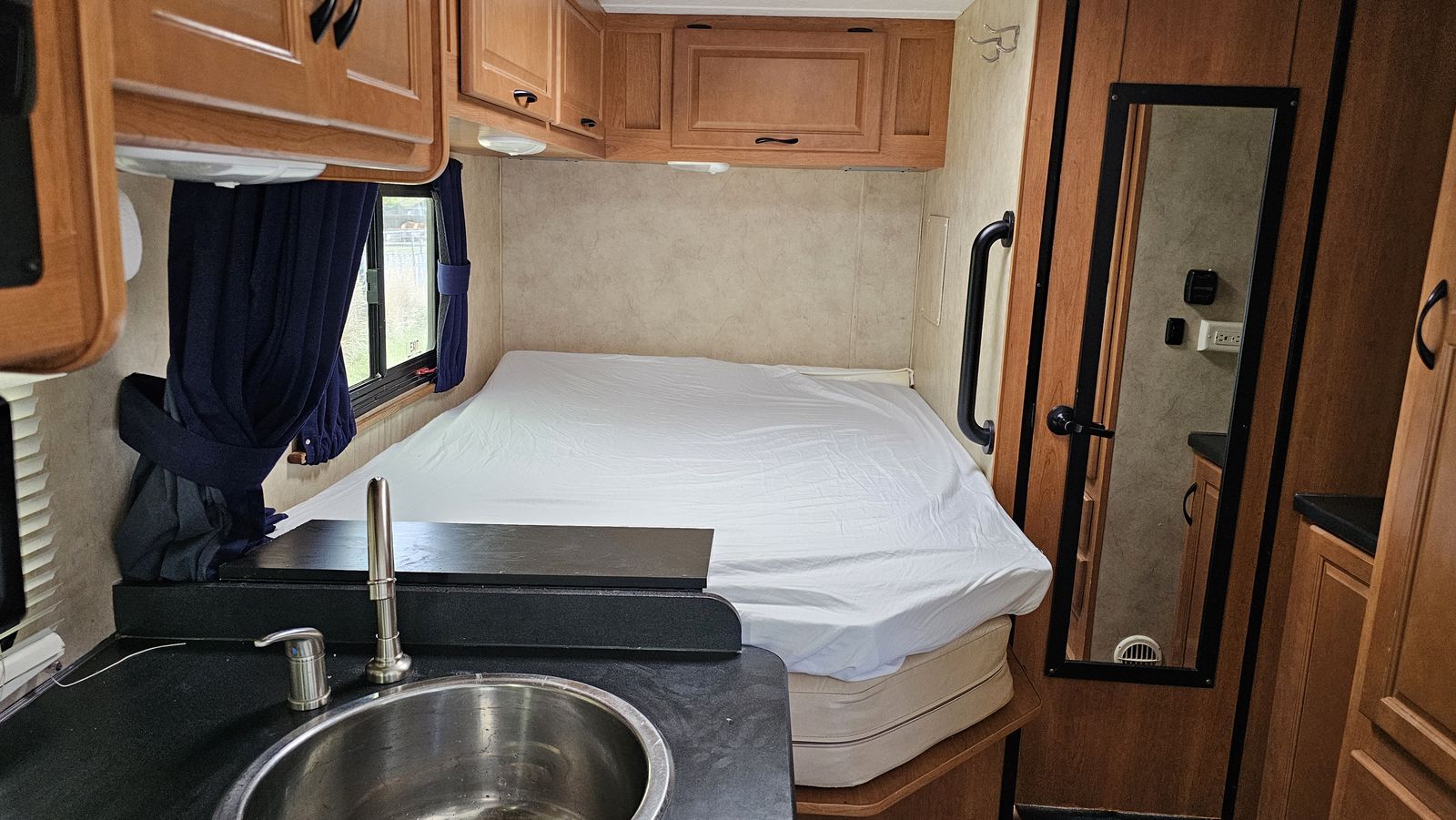 We bought this for a month-long Church history tour this summer, and added several of the amenities that are listed. But we took it camping on a family trip to Moab, and found that the bed doesn't work for us at our age. We need a walk-around main bed, so we're selling this unit, and have purchased one with a walk-around bed to use on our summer trip. This RV was originally a Cruise America rental, hence the high miles. But it runs and drives flawlessly.