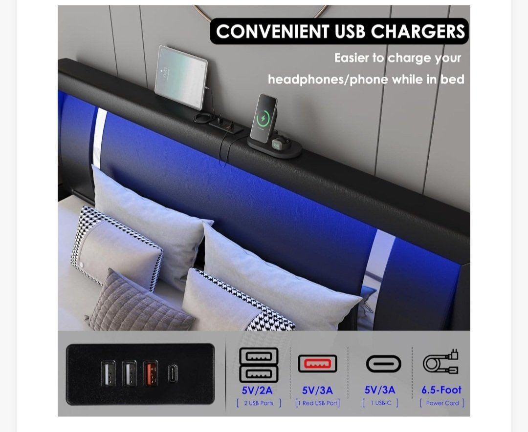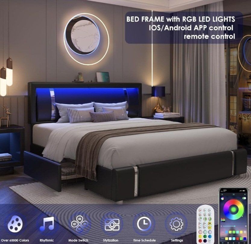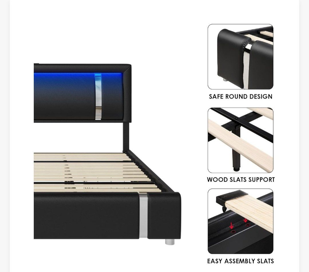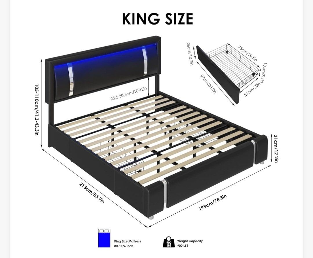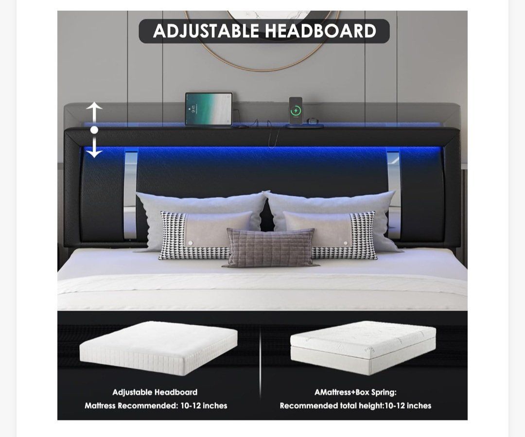 VenmoBrand New King Platform Bed With Headboard Led Lights