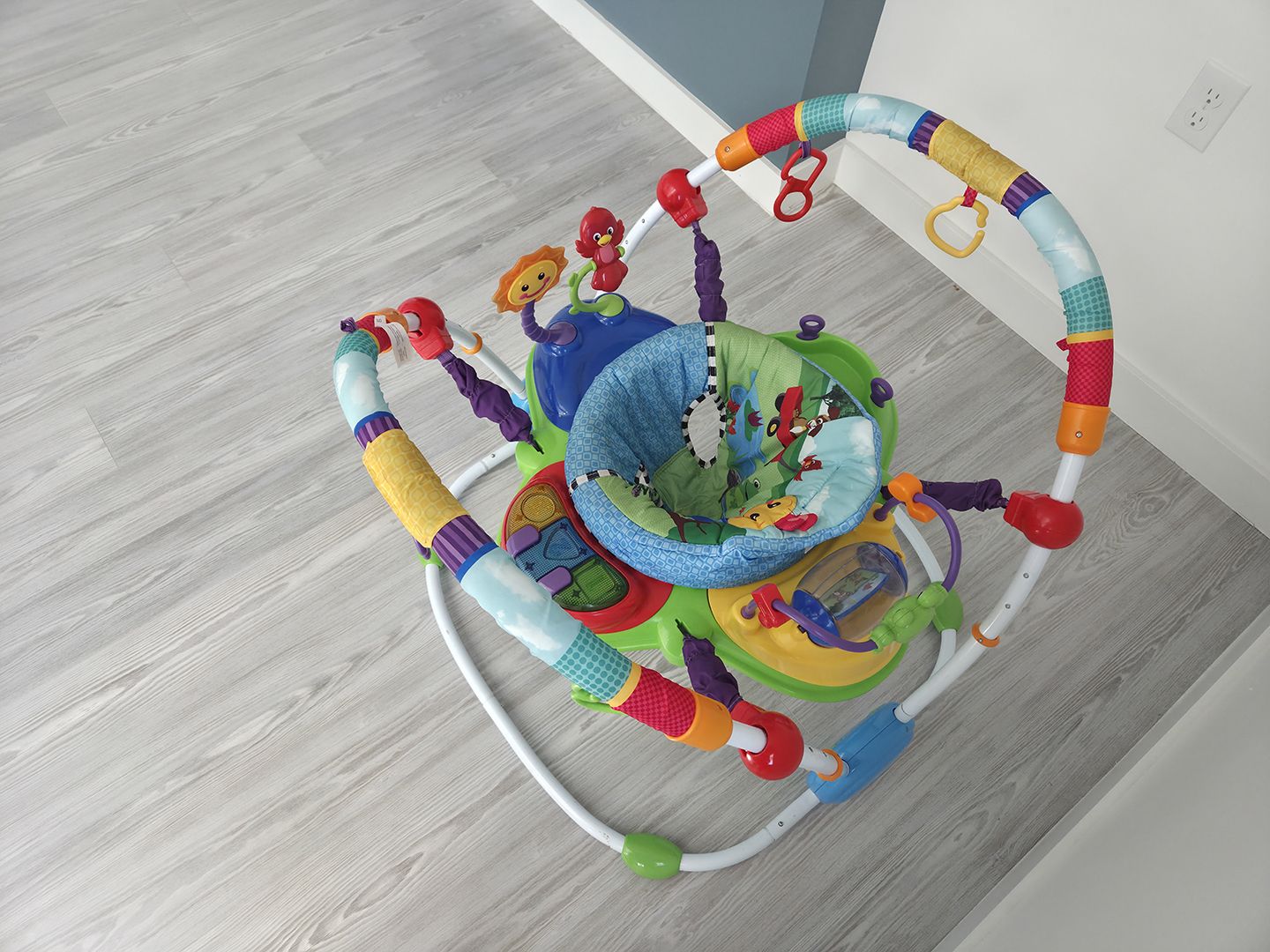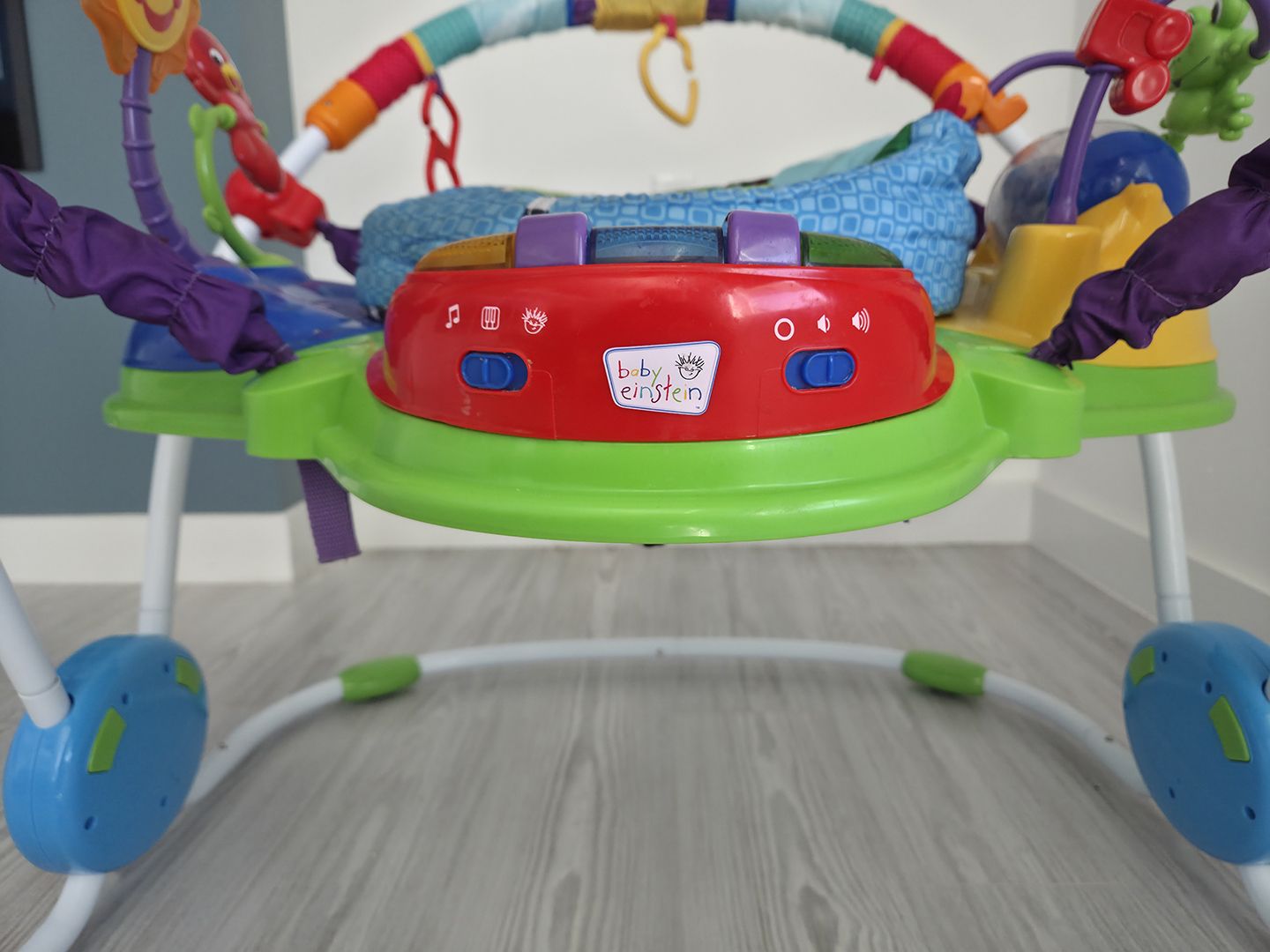 VenmoSelling our Baby Einstein Activity Jumper, looks and operates like new, all the flashing lights, sounds, and interactive buttons work like new and all the paint, and fabric look new, no tears, dents or scratches. Product description, the Baby Einstein Activity Jumper will captivate your baby like no other activity jumper can. With 360 degrees of multi-sensory activities, your baby can swivel and play every which way. The activity center features 3 play stations and more than 12 activities to explore. The light-up piano lets your baby compose their first musical masterpiece, while the spinning frog bead chaser encourages hand-eye coordination. With extra link loops, you can add your baby's favorite toys or swap out new playful friends so entertainment is always in reach. The baby bounce chair allows your little one to jump and dance, which helps strengthen their developing leg muscles. With no doorways required, you can watch your baby safely play and grow wherever you need to be. From music appreciation to language introduction, this award-winning Baby Einstein Unisex jumper turns the idea of a baby bouncer into an imaginative world of discovery.