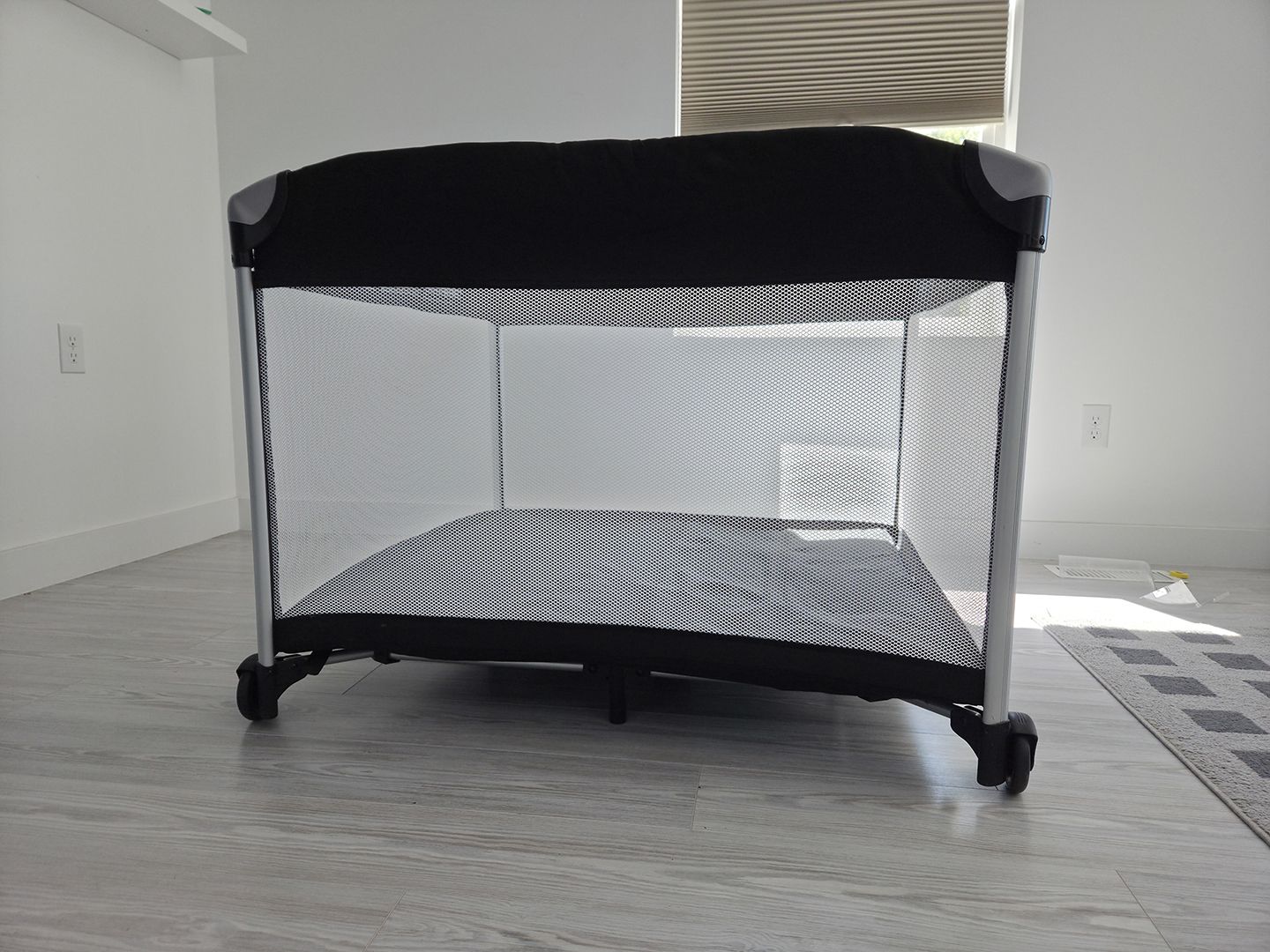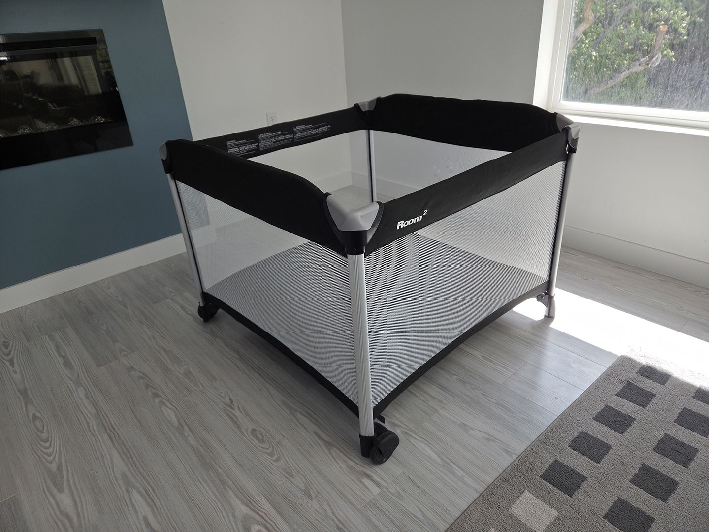 VenmoSelling our Joovy Room 2 playpen, no tears, dents, or dings, looks and operates like new. Product description, Joovy is an American company that makes vibrant, high-quality gear for your family. All their products, from high chairs to double strollers, have been designed to be useful, dependable, and just plain FUN. Say goodbye to ugly patterns and throwaway construction: you can use Joovy's products until they've been run ragged by the memories you make as a family. Joovy's Room 2 is an unobtrusive baby playpen that provides a safe place for your baby while you take care of the essential tasks of life. The Room 2 is made from heavy-duty fabric and mesh, and features 360 degree windows and a waterproof sheet, to contain even the most rambunctious toddler or two in complete comfort. It offers an area of nearly 10 square feet, yet it folds up in compact form, so you can enjoy your vacation in comfort or just tidy up your family space. The Room 2's low center of gravity makes it secure and solid, and it will serve your little ones reliably from when you first bring them home until they can climb out on their own. It can be expanded with Joovy's Twin Nursery Center, which adds a changing table and a bassinet with two separate napping areas. It comes in black and charcoal, and, when fully open, it measures 39.75" W x 39.75" L x 31" H.