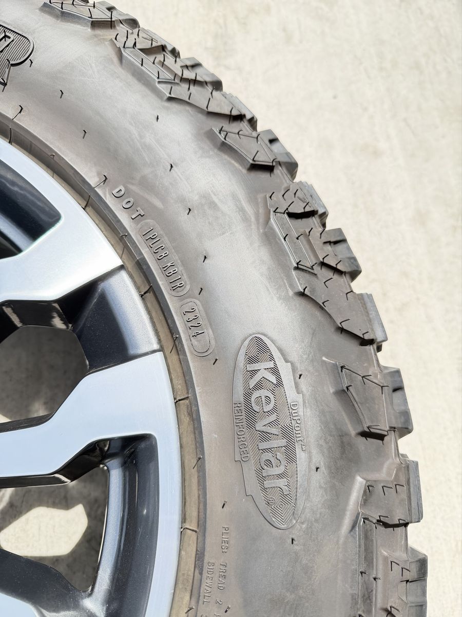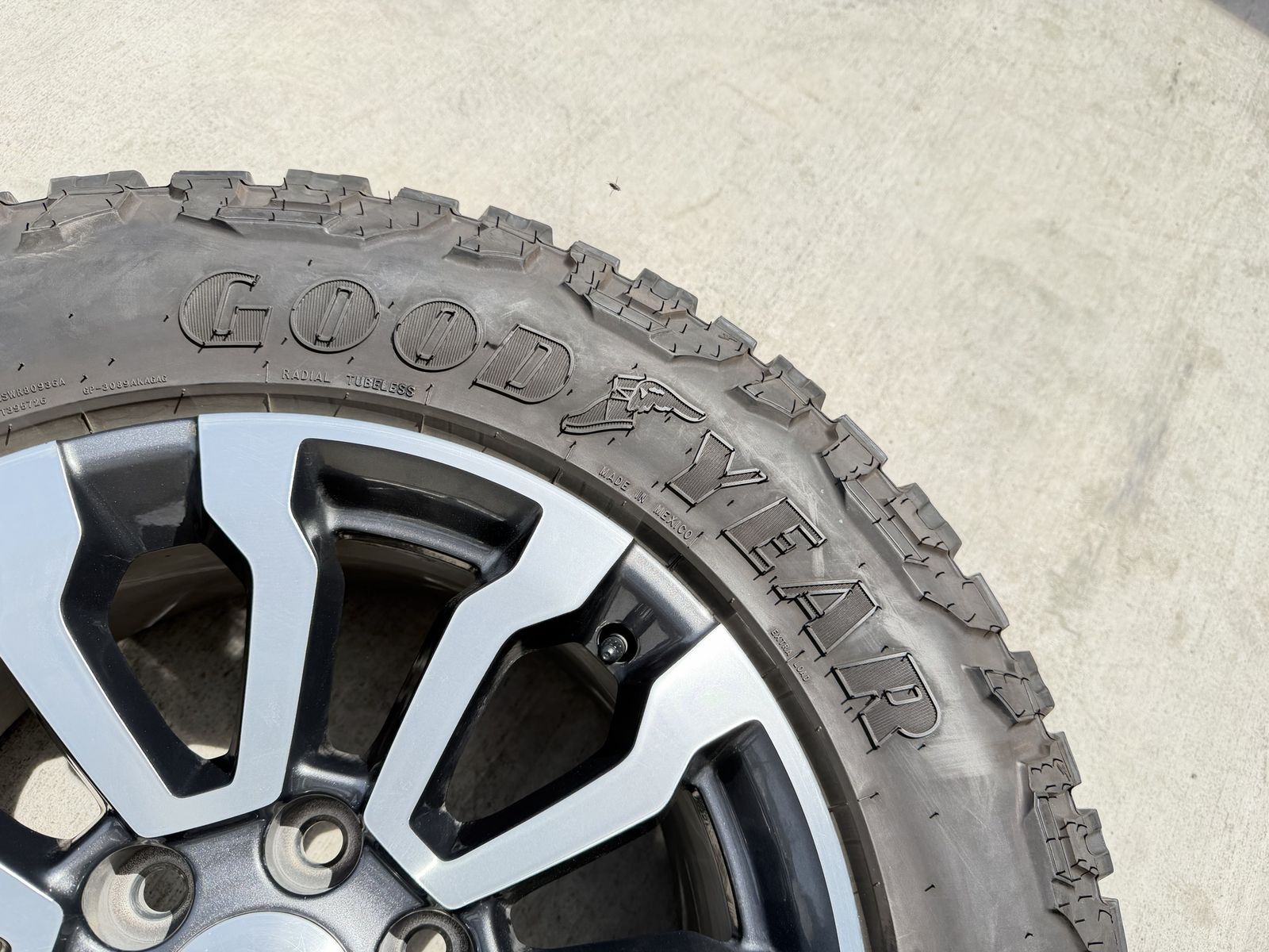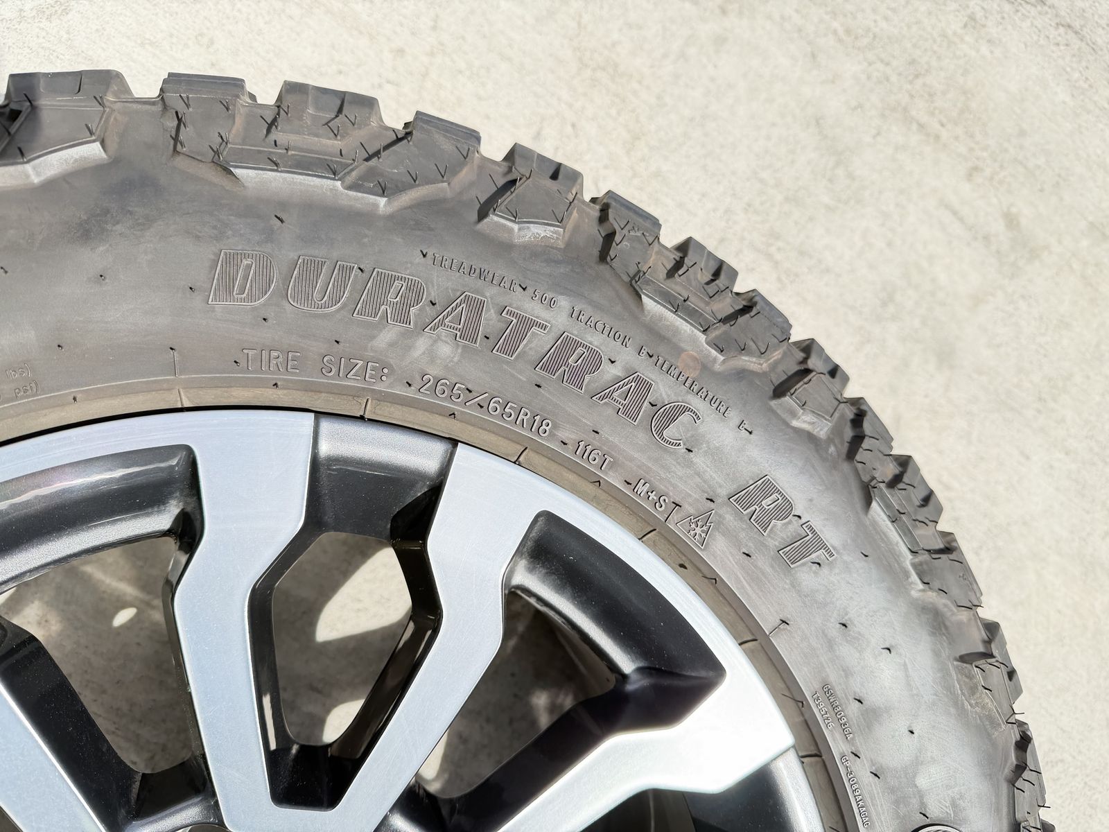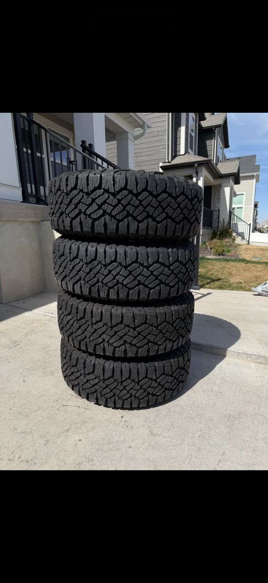ApplePaySet of 4-Chevy Silverado 1500 Tahoe Suburban Rims and Tires 265/65R18 Goodyear Wrangler Duratrac Almost New only 500 miles on them,asking $1800 obo Comes with lug nuts and sensors Bolt pattern 6-5.5/6-139.7