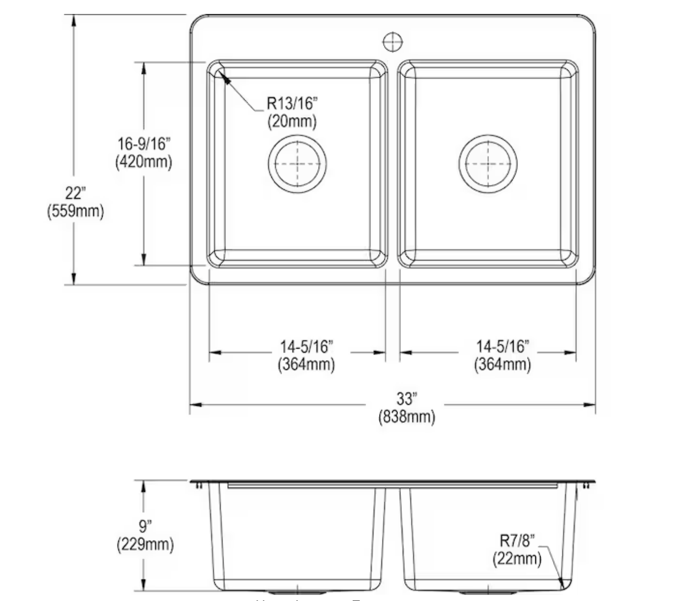 33 in. x 22 in. x 9 in.