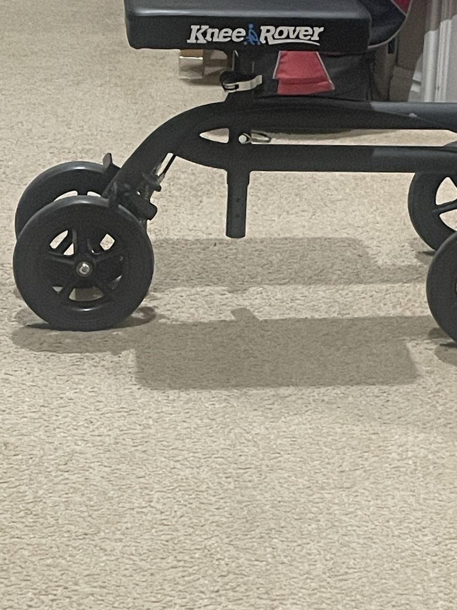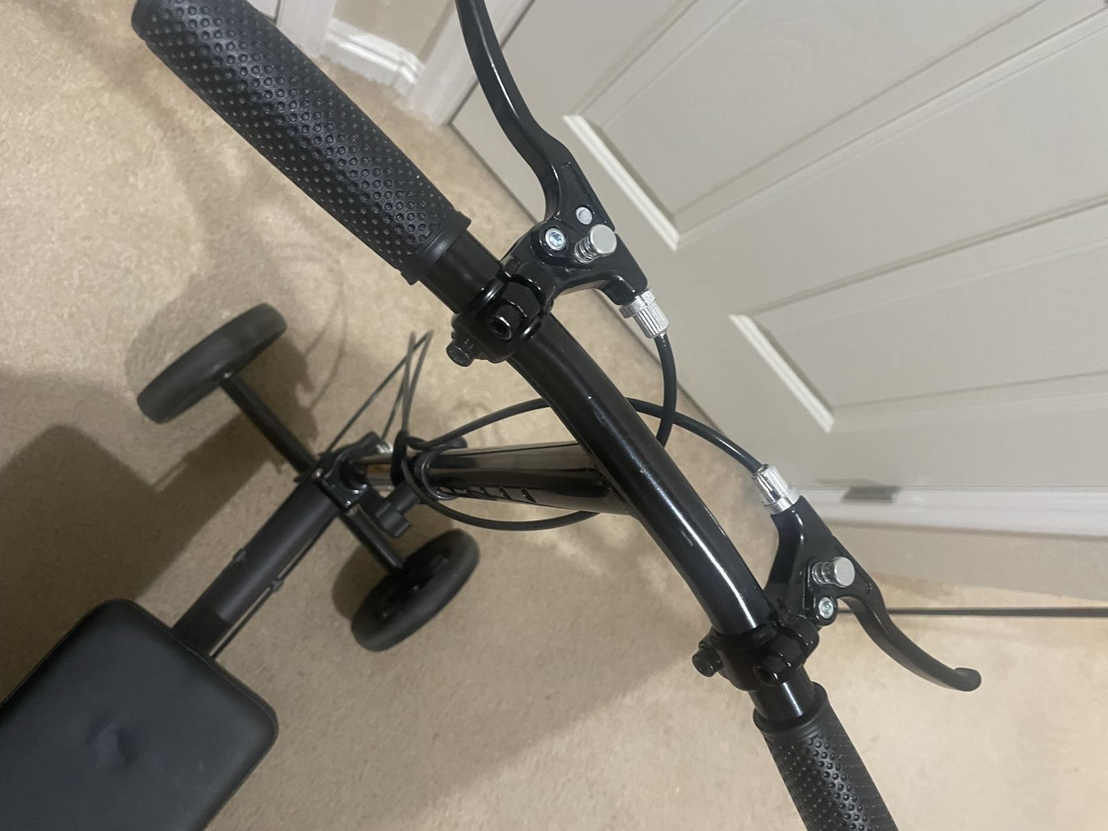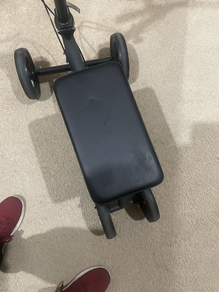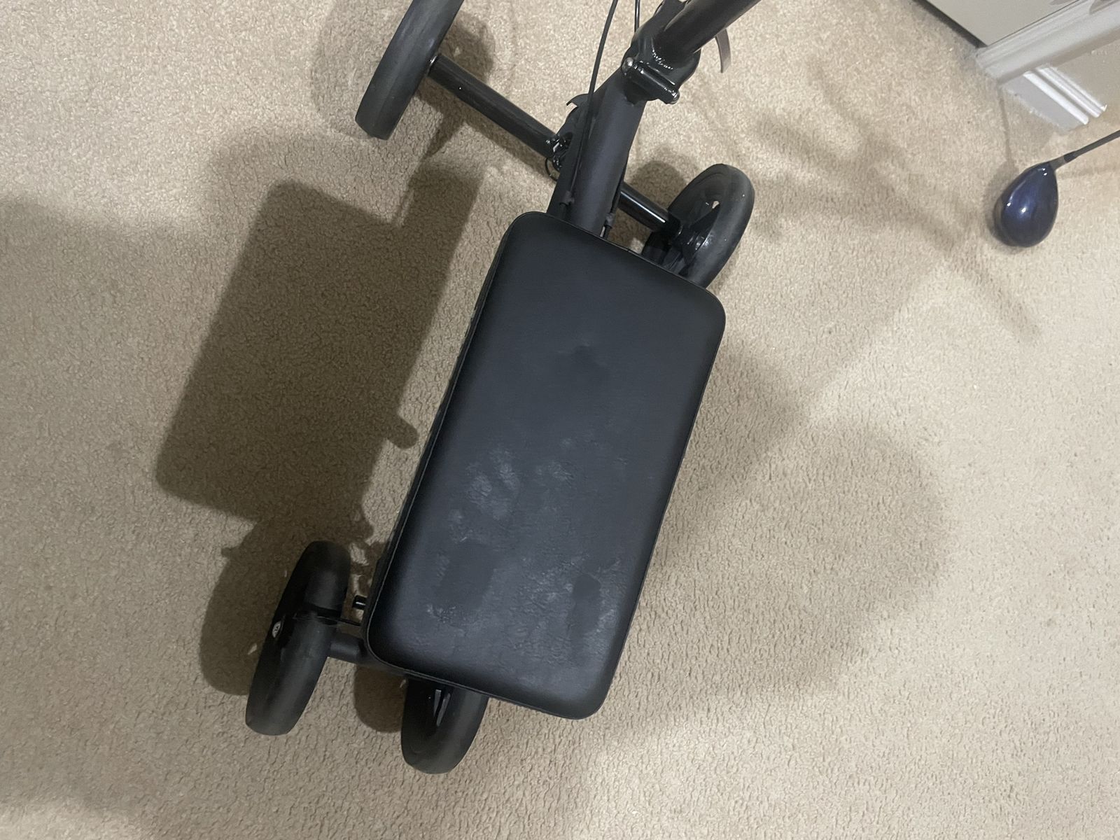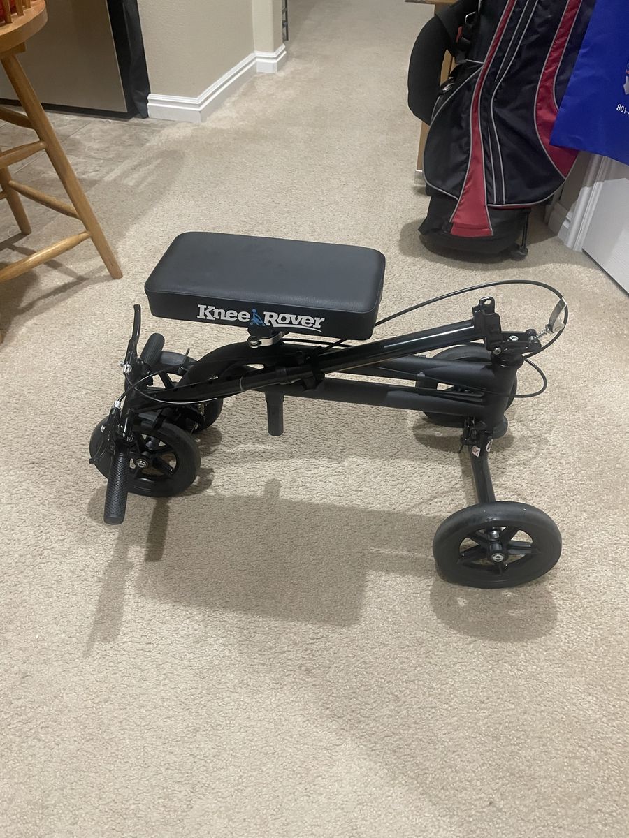 VenmoKnee Rover brand knee scooter. Lightly used. Adjustable seat and handlebar. Locking brake. Foldable for easy handling.