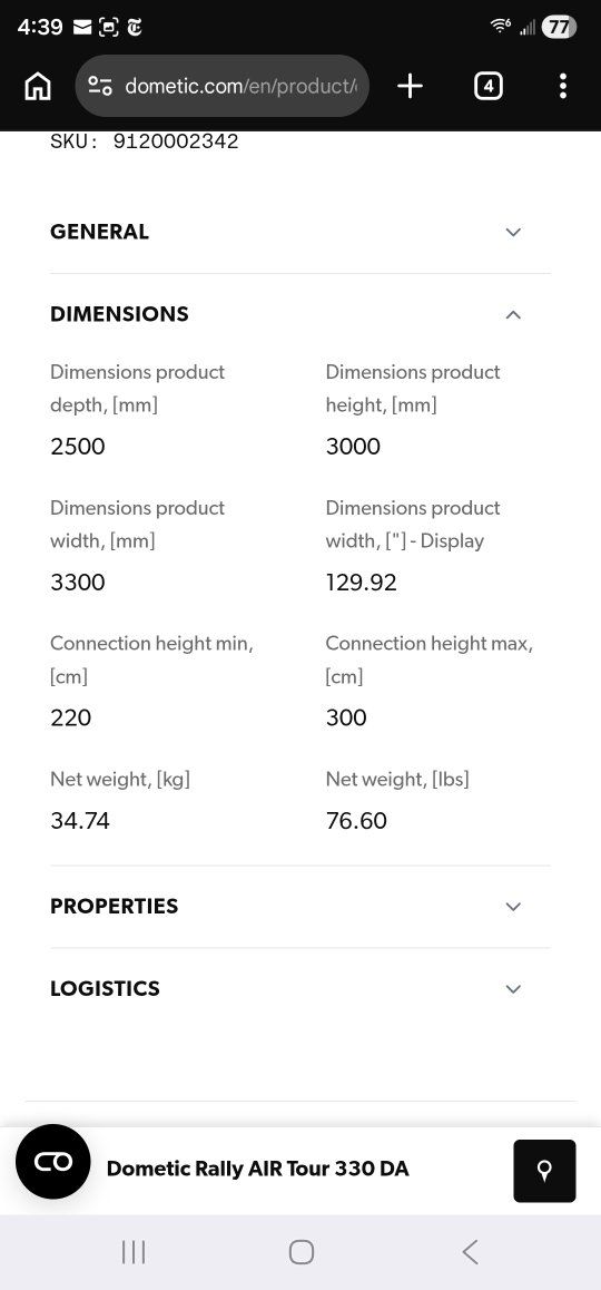 The Dometic Rally AIR Pro 330 DA Inflatable Drive-Away Camper Van Awning provides instant shade and weather protection at the campsite, trailhead, or tailgate with a quick-deploying design.