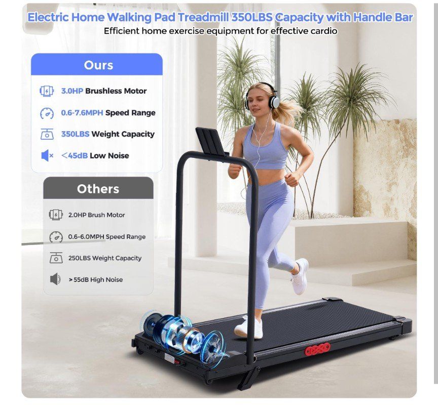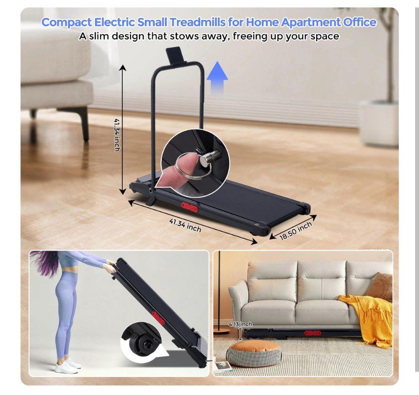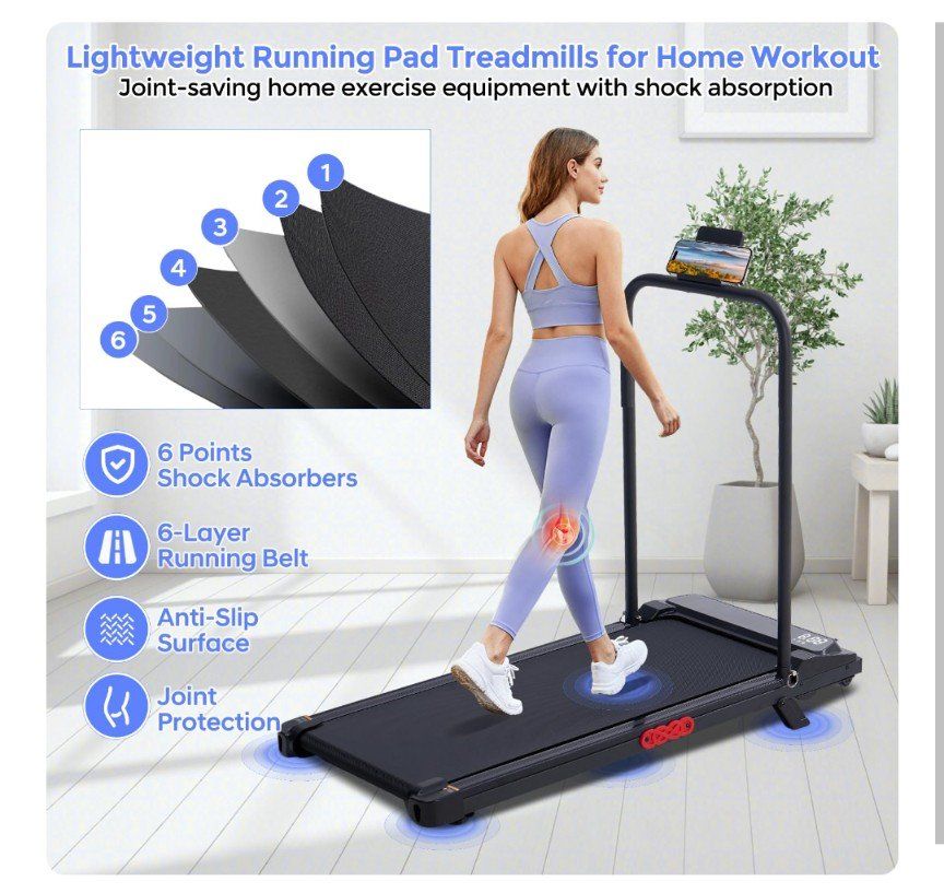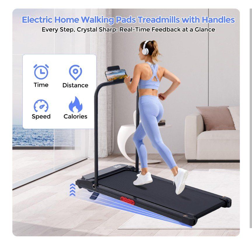 Compact Running Treadmill with Handle Bar for Small Spaces: Designed with a slim and space-saving frame, this compact treadmill for apartments, condos, and home gyms easily fits under a desk or in a corner. Use it as an under desk walking treadmill for office or as a portable treadmill with handles for safer running. The built-in phone holder makes it a versatile treadmill for office and home use, allowing you to enjoy entertainment or calls while exercising.