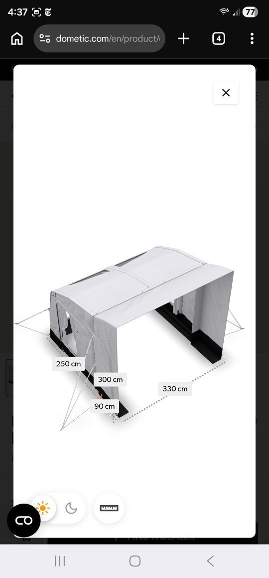 The Dometic Rally AIR Pro 330 DA Inflatable Drive-Away Camper Van Awning provides instant shade and weather protection at the campsite, trailhead, or tailgate with a quick-deploying design.