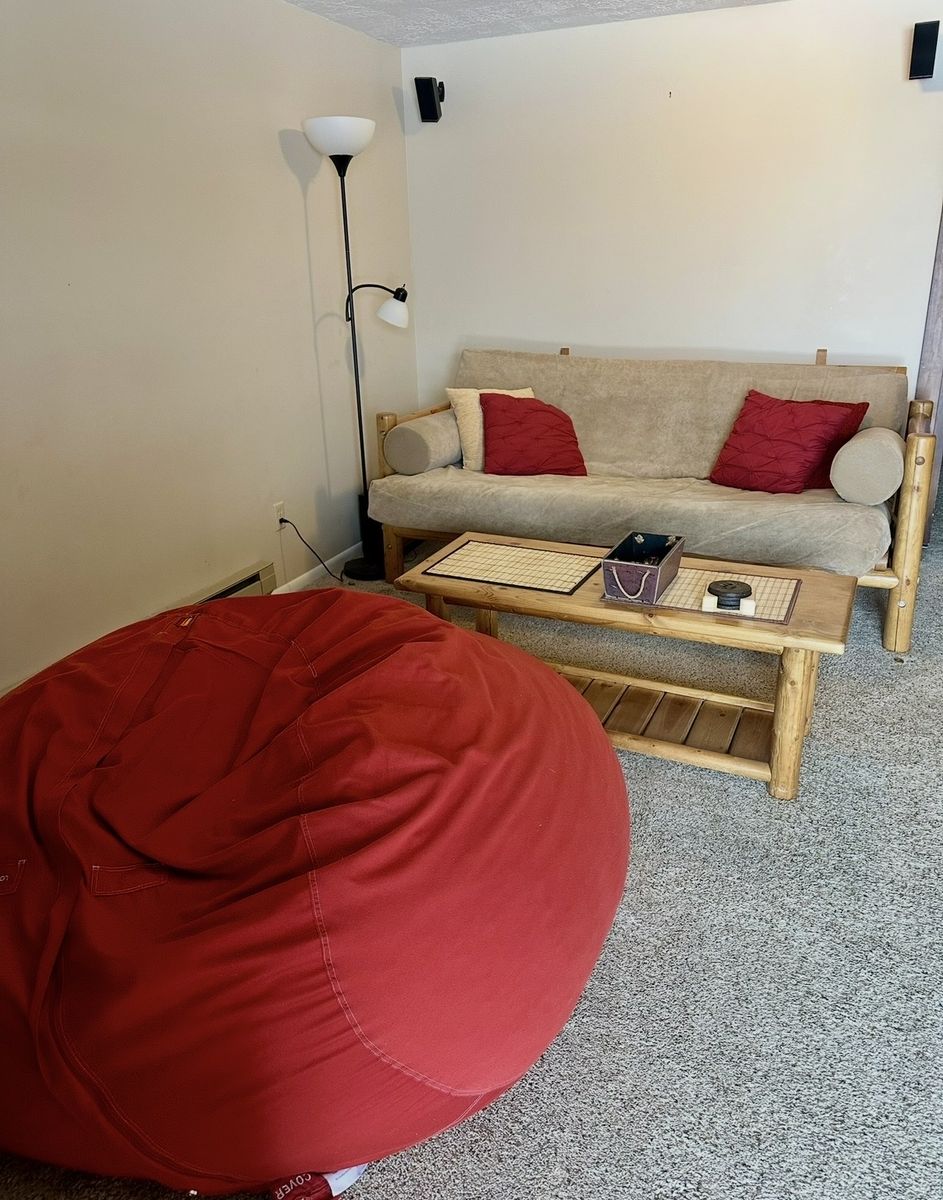 Large Red LoveSac brand beanbag Measures 44” around x 30” high Willing to meet in the middle for delivery
