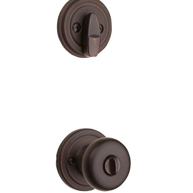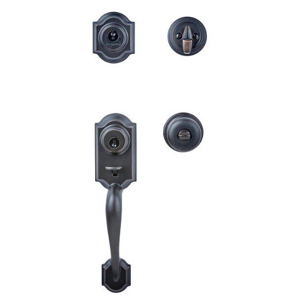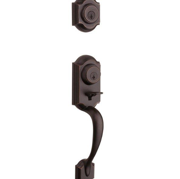 VenmoStep up to designer styles and superior security with Kwikset Signature Series products. Enjoy increased security and easy fit with the Montara handleset. 2 points of locking, on the deadbolt and the handleset, provide double the security. And the adjustable through bolt at the bottom of the handleset allows for easy installation and provides you peace of mind knowing that it will adjust to fit the bottom hole in your door. With the arched design, the Montara handleset will add both security and style to your front door. The latch bolt is operated by the thumb piece on the outside and the grip on the inside. The deadbolt is operated by a key on the outside and a thumb turn on the inside. The Venetian Bronze finish is hand-rubbed to reveal unique bronze highlights and provides a rich and warm complement to the product's style.