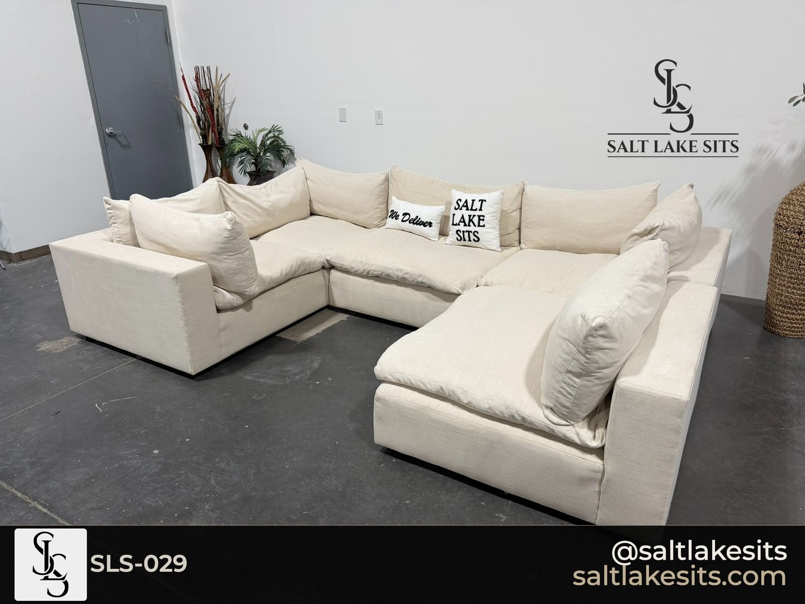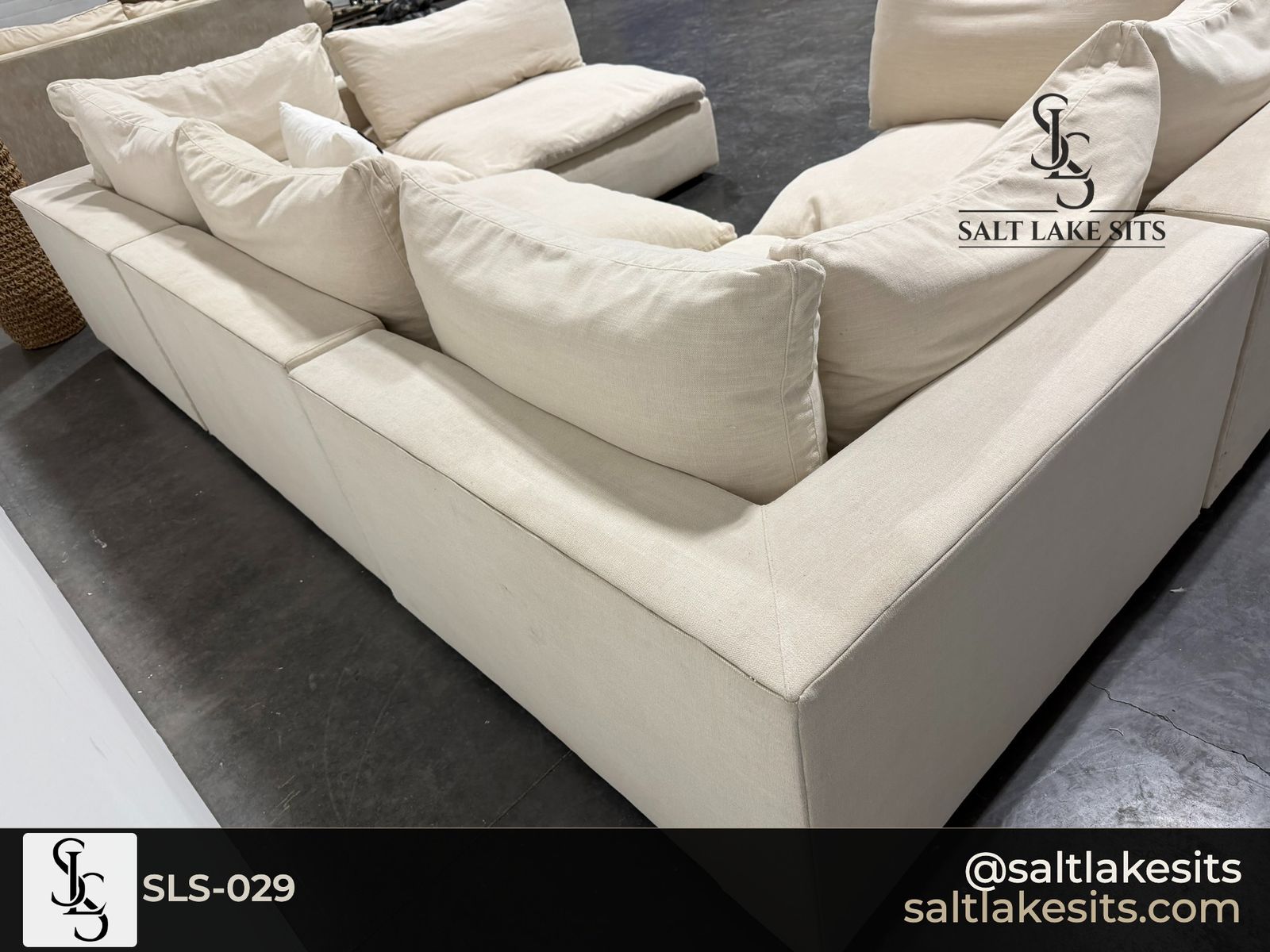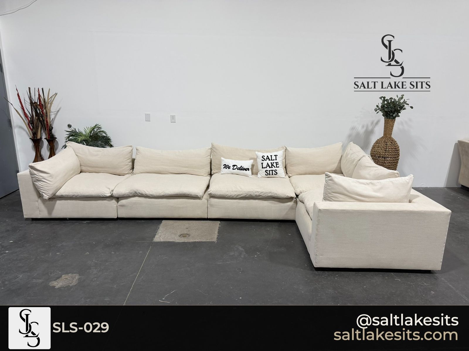 Huntington House Sectional — Fine hand-crafted American made upholstery. This is a serious investment piece available at a fraction of what it costs new. Deep cloud cushions, warm cream linen, generous L-shape that fills a room beautifully. Professionally cleaned. Dimensions in photos.