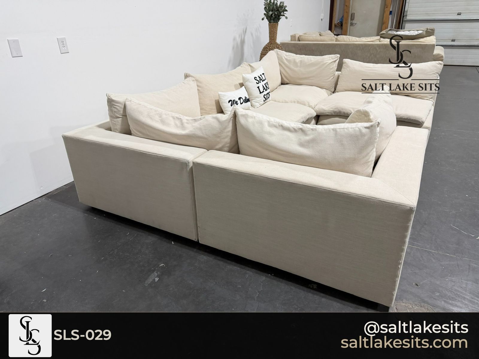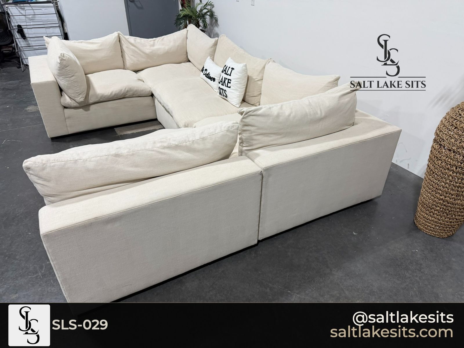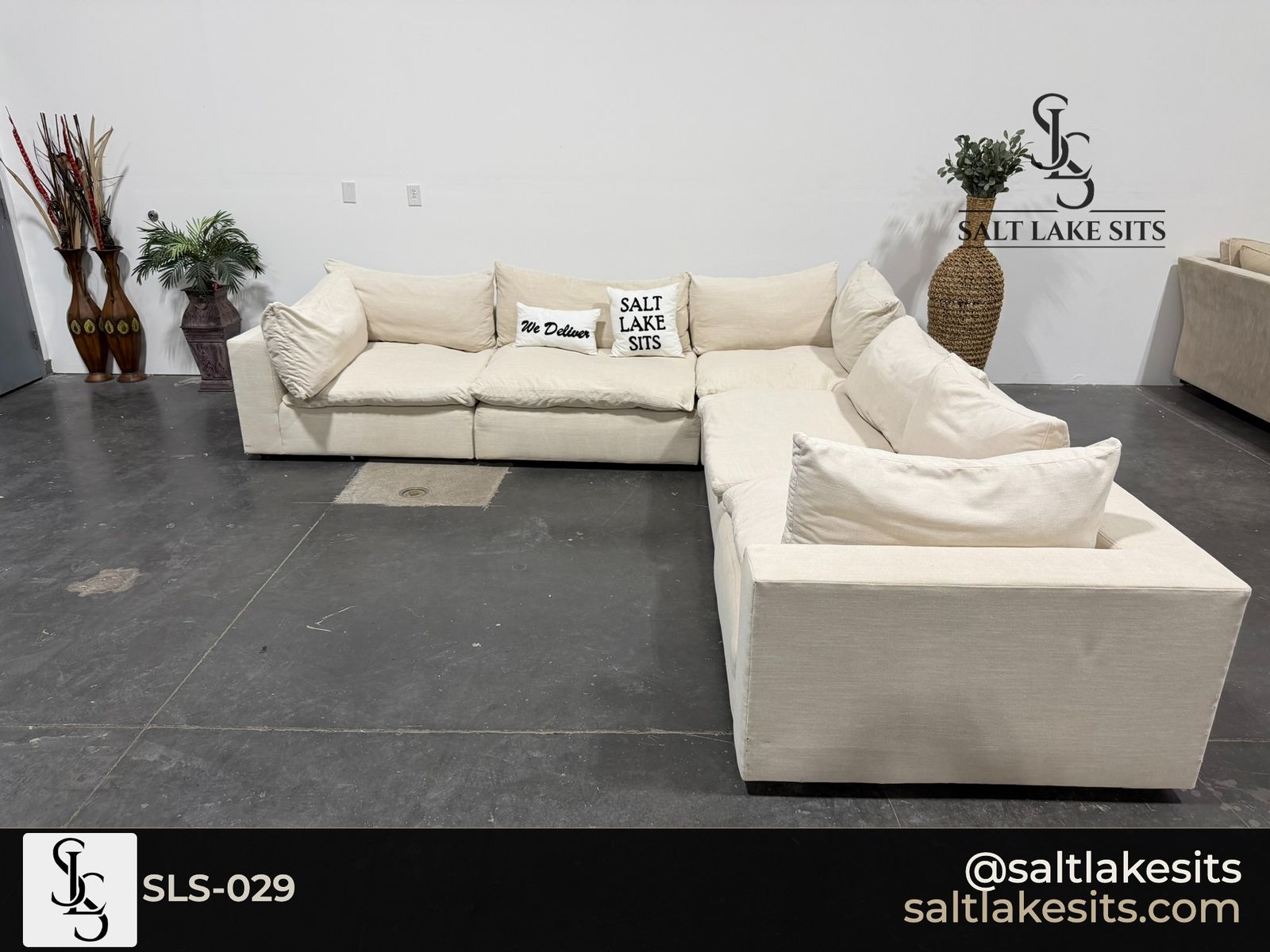 Huntington House Sectional — Fine hand-crafted American made upholstery. This is a serious investment piece available at a fraction of what it costs new. Deep cloud cushions, warm cream linen, generous L-shape that fills a room beautifully. Professionally cleaned. Dimensions in photos.