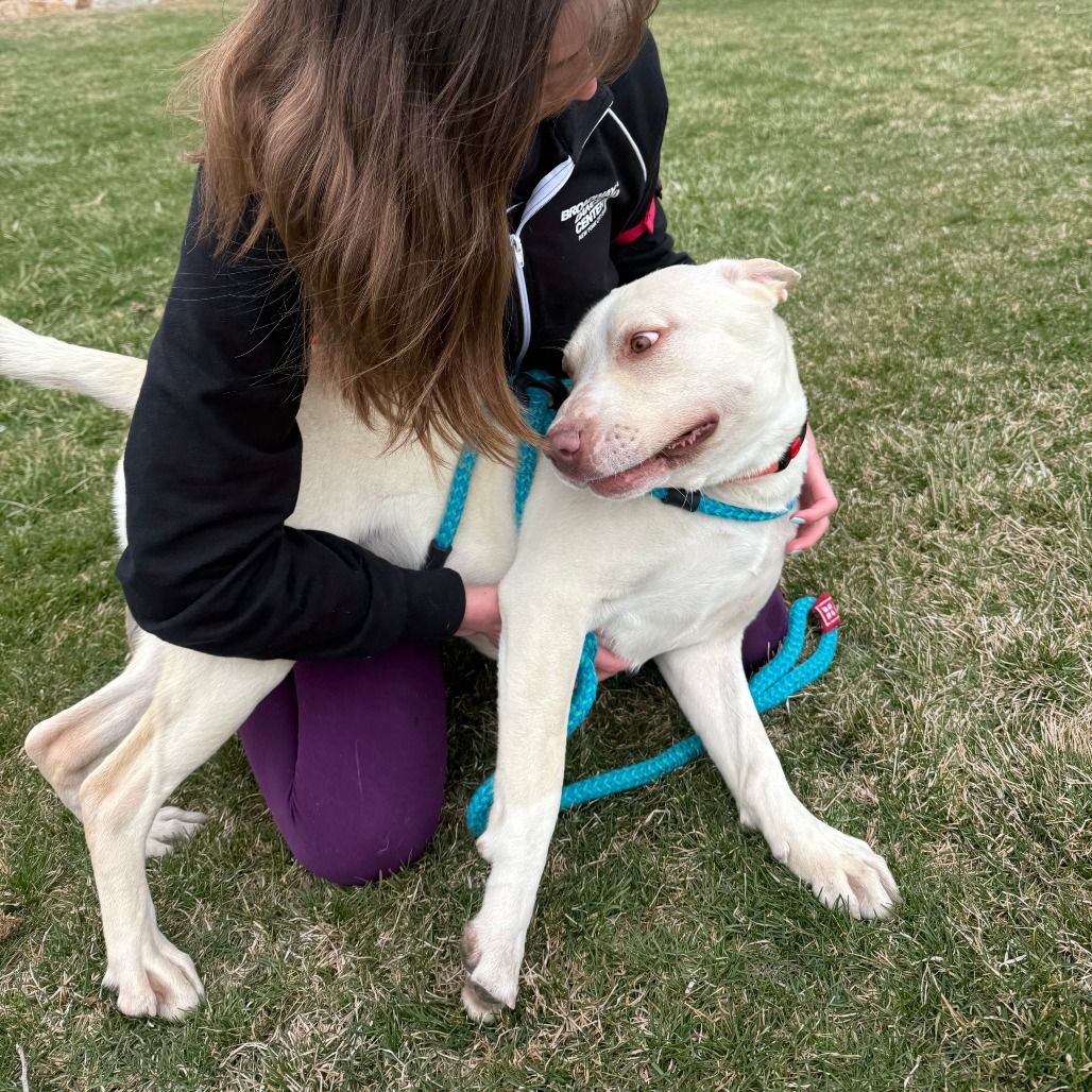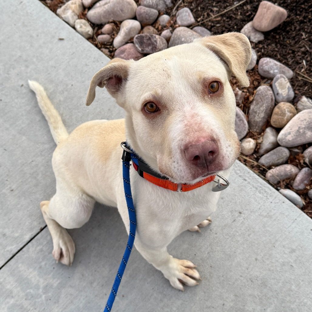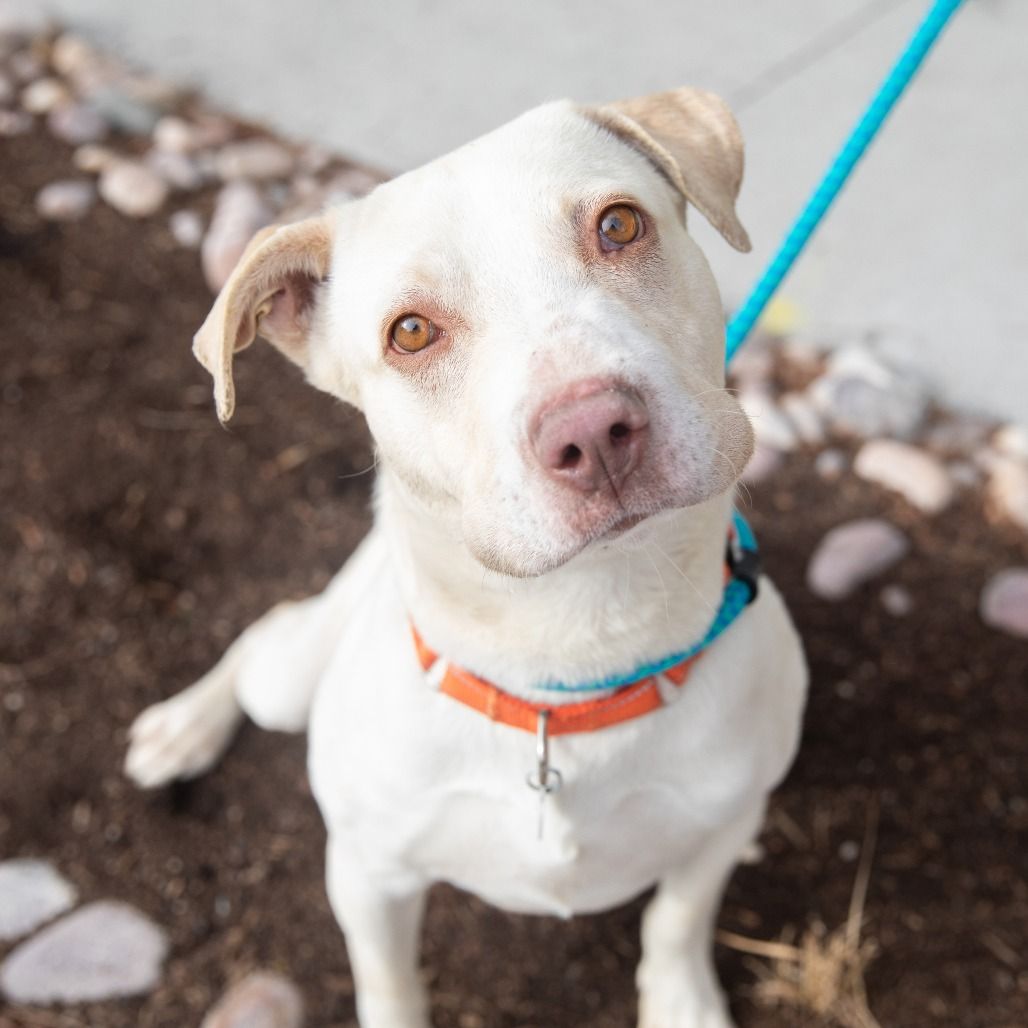 Daryl is a handsome 2-year-old white Lab mix boy, he's house trained loving and affectionate with people. He prefers being around 13 year-old children or older as he needs to get acquainted with them. He's a playful young dog that will be your faithful companion on walks and new adventures. If you're the type of person and/or family who likes activities to do together and teach Daryl tricks, then Daryl is your kind of dog. If you would like more information about Daryl, please text/call our adoptions team at 385-405-5145, or e-mail us at utahadoptions@bestfriends.org.