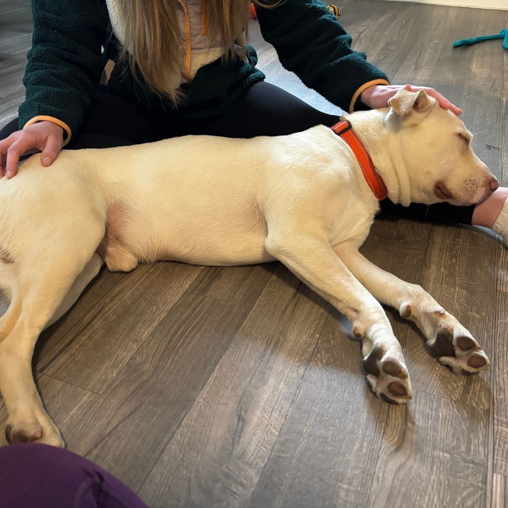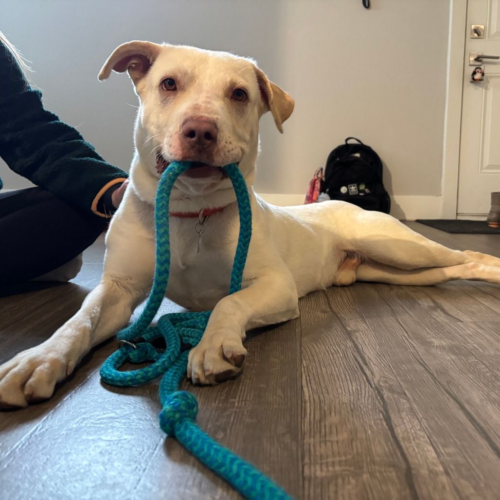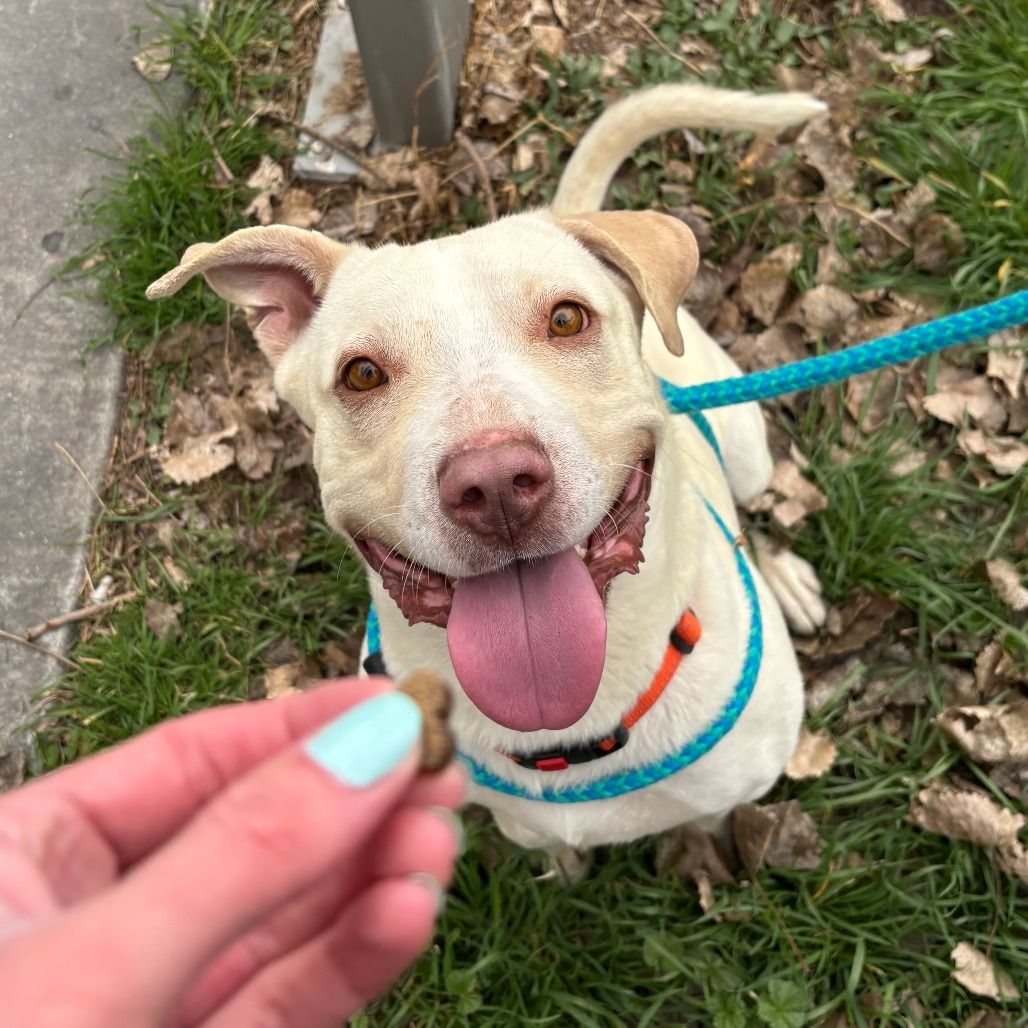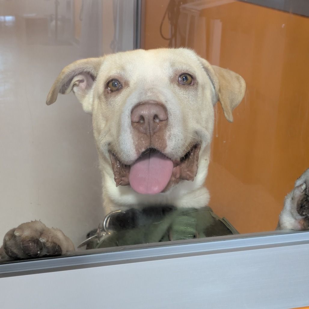 Daryl is a handsome 2-year-old white Lab mix boy, he's house trained loving and affectionate with people. He prefers being around 13 year-old children or older as he needs to get acquainted with them. He's a playful young dog that will be your faithful companion on walks and new adventures. If you're the type of person and/or family who likes activities to do together and teach Daryl tricks, then Daryl is your kind of dog. If you would like more information about Daryl, please text/call our adoptions team at 385-405-5145, or e-mail us at utahadoptions@bestfriends.org.