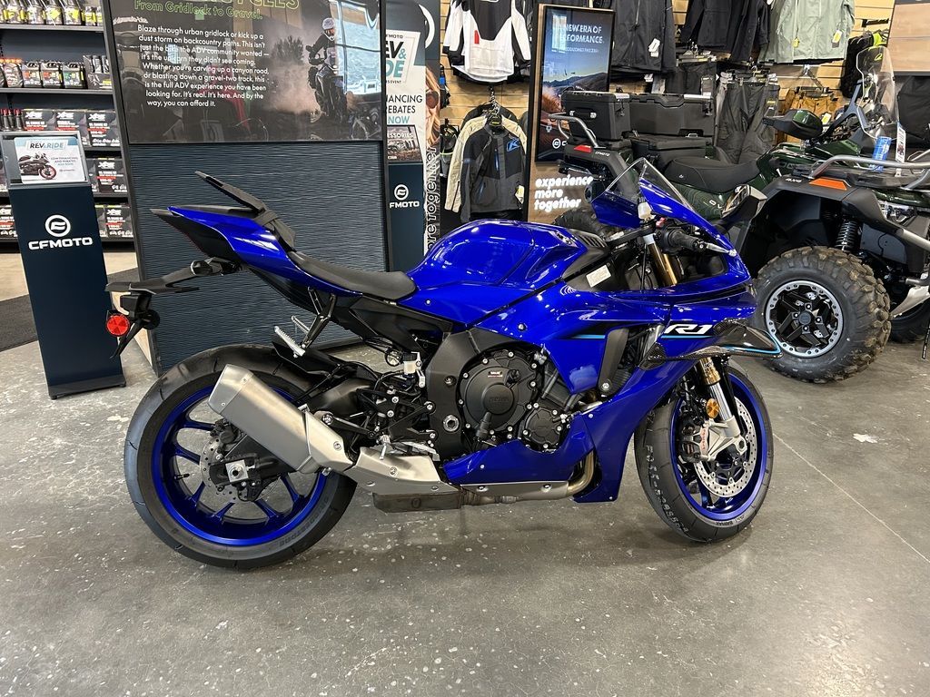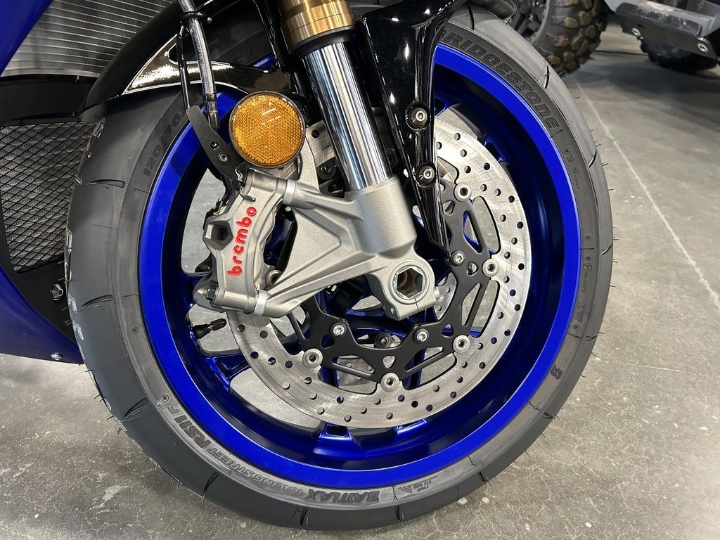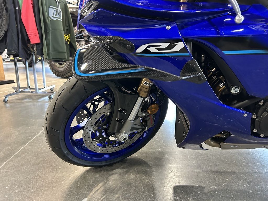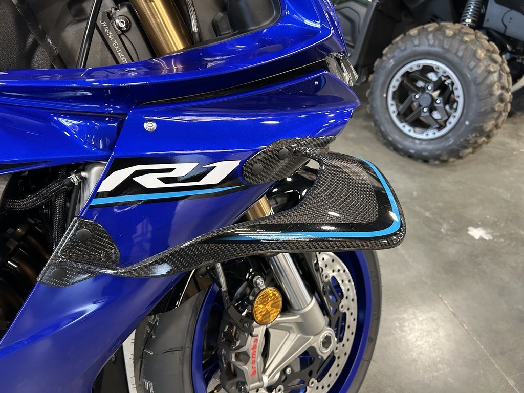 2026 Yamaha YZF-R1SUPERBIKE ICONStacked with cutting-edge technology gleaned directly from MotoGP and Superbike competition, the YZF-R1 features a powerful 998cc crossplane CP4 engine, refined Deltabox frame, MotoGP®-inspired carbon fiber winglets and a comprehensive electronics package for the ultimate in performance and control. Premium Brembo® front brakes and a highly refined KYB® suspension further enhance its track-focused capability. It all comes wrapped in sleek, distinctive R-series styling for an aggressive look to match its advanced performance.Features may include:MotoGP®-Inspired WingletsDeveloped through extensive simulator and on-track testing, MotoGP®-inspired carbon fiber winglets create additional downforce for exceptional chassis stability and added front-end feel when braking or cornering.Premium Brembo® BrakesPremium Brembo® Stylema monobloc front brake calipers are paired with a Brembo® master cylinder to offer outstanding braking power and exceptional feel.High-Spec KYB® Front SuspensionThe exceptional KYB® front fork is designed to offer excellent response, road feel and chassis stability. Individual adjusters on the right and left fork tubes offer a full range of adjustability including preload, high- and low-speed compression and rebound adjustments for precise damping control.MotoGP®-Derived Crossplane Crankshaft EngineThe YZF-R1's 998cc inline-four-cylinder engine features Yamaha's exclusive crossplane crankshaft technology derived from the YZR-M1 MotoGP® race bike. By equalizing inertial forces at the crankshaft, the CP4 motor delivers a direct feeling of linear torque, giving the rider the ultimate connection between throttle grip and the rear wheel.Digital Superbike TechnologyThe YZF-R1 features a cableless ride-by-wire Yamaha Chip Controlled Throttle (YCC-T) system that transforms the rider's inputs into motion, with a full suite of IMU-powered electronic rider aids that bring new meaning to the term "rider confidence."
